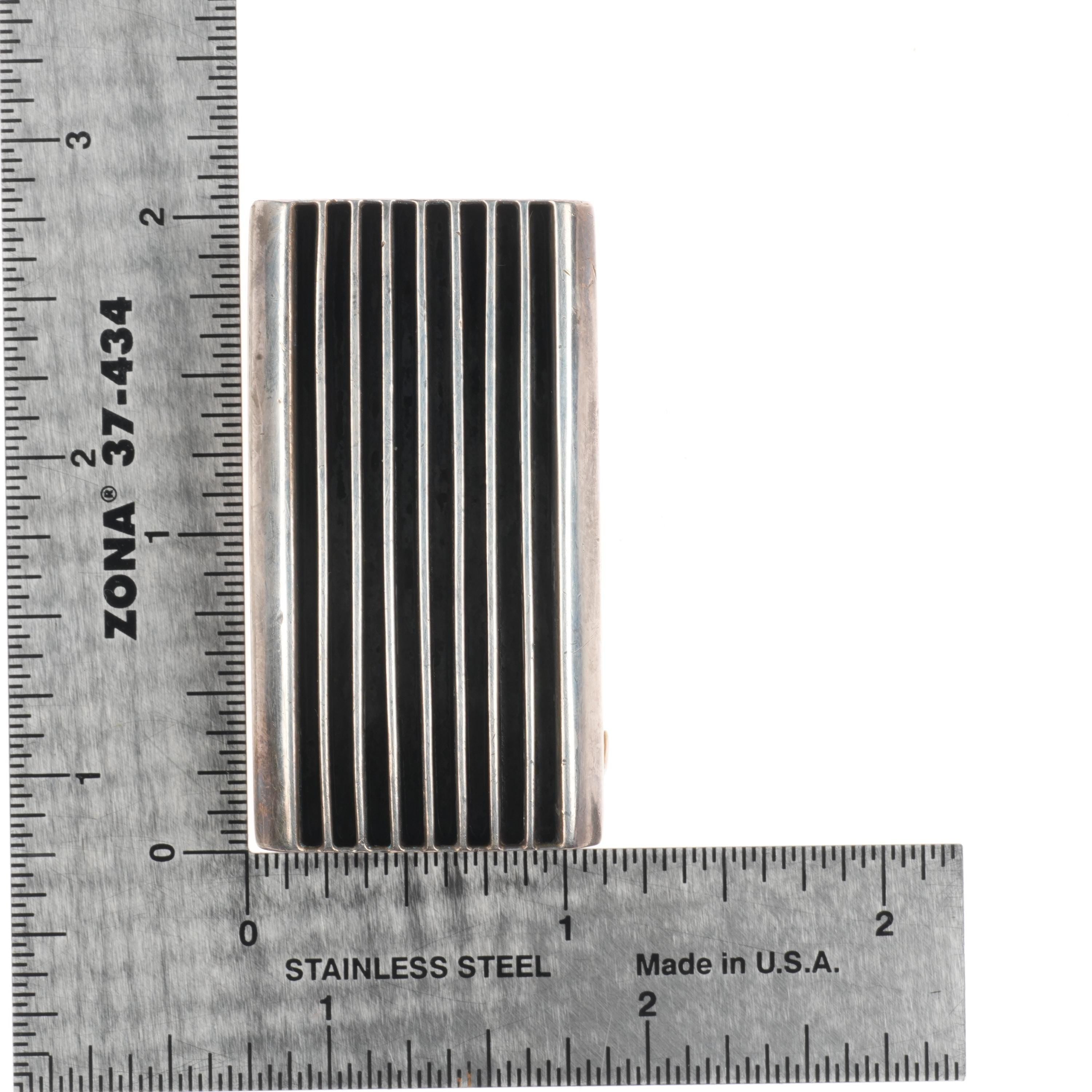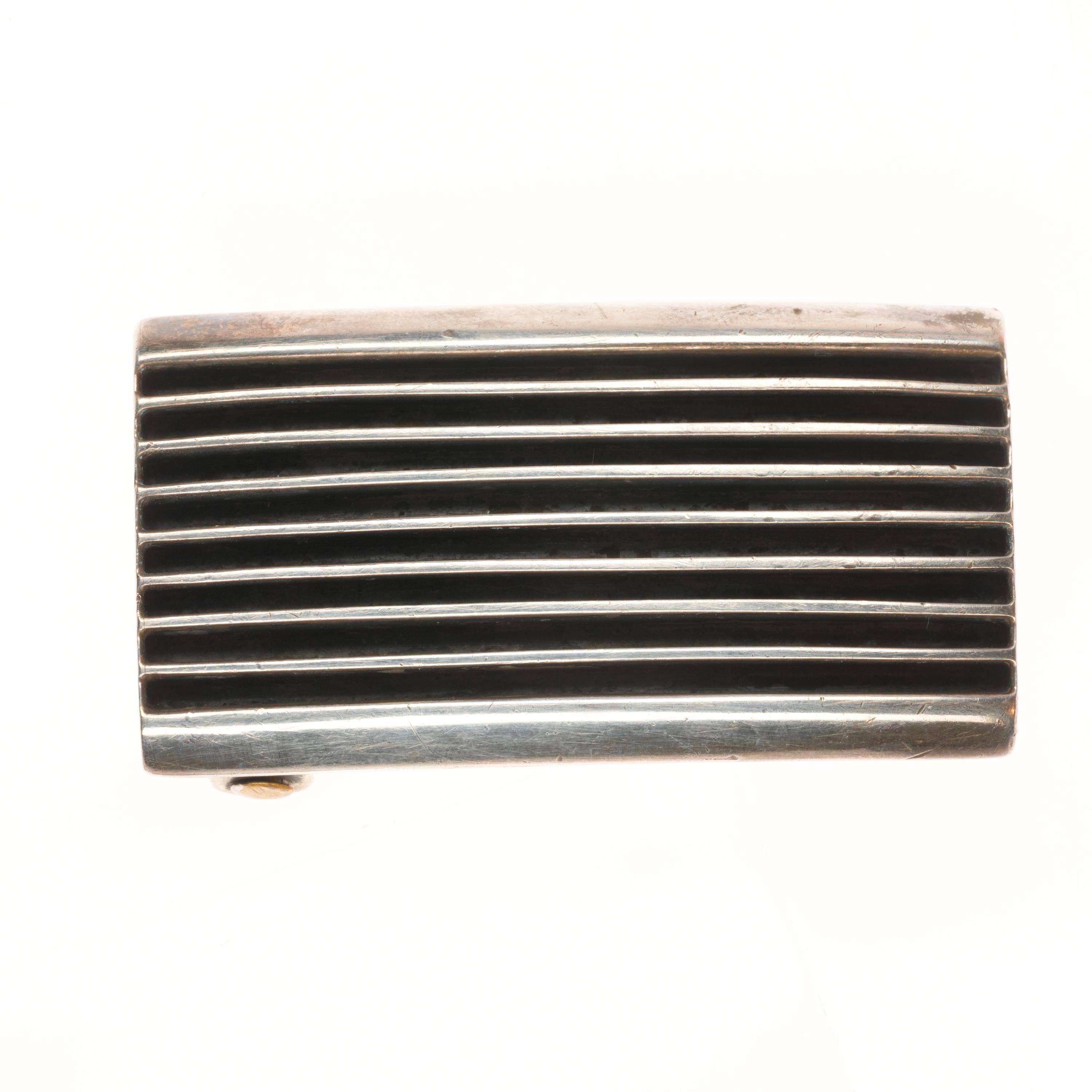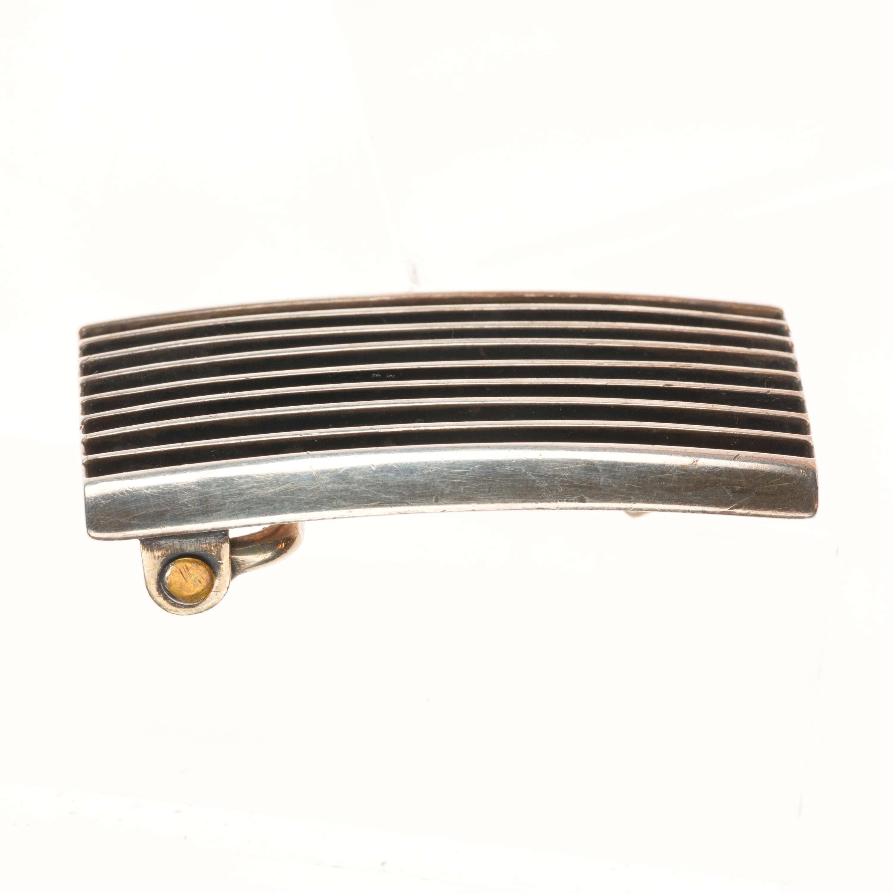 Johnny Mike Begay Navajo modernist sterling silver belt buckle. Tested and guaranteed solid sterling silver. Weight and measurements in pictures, circa third quarter of the 20th century. Fits a .75" belt. No apparent damage.