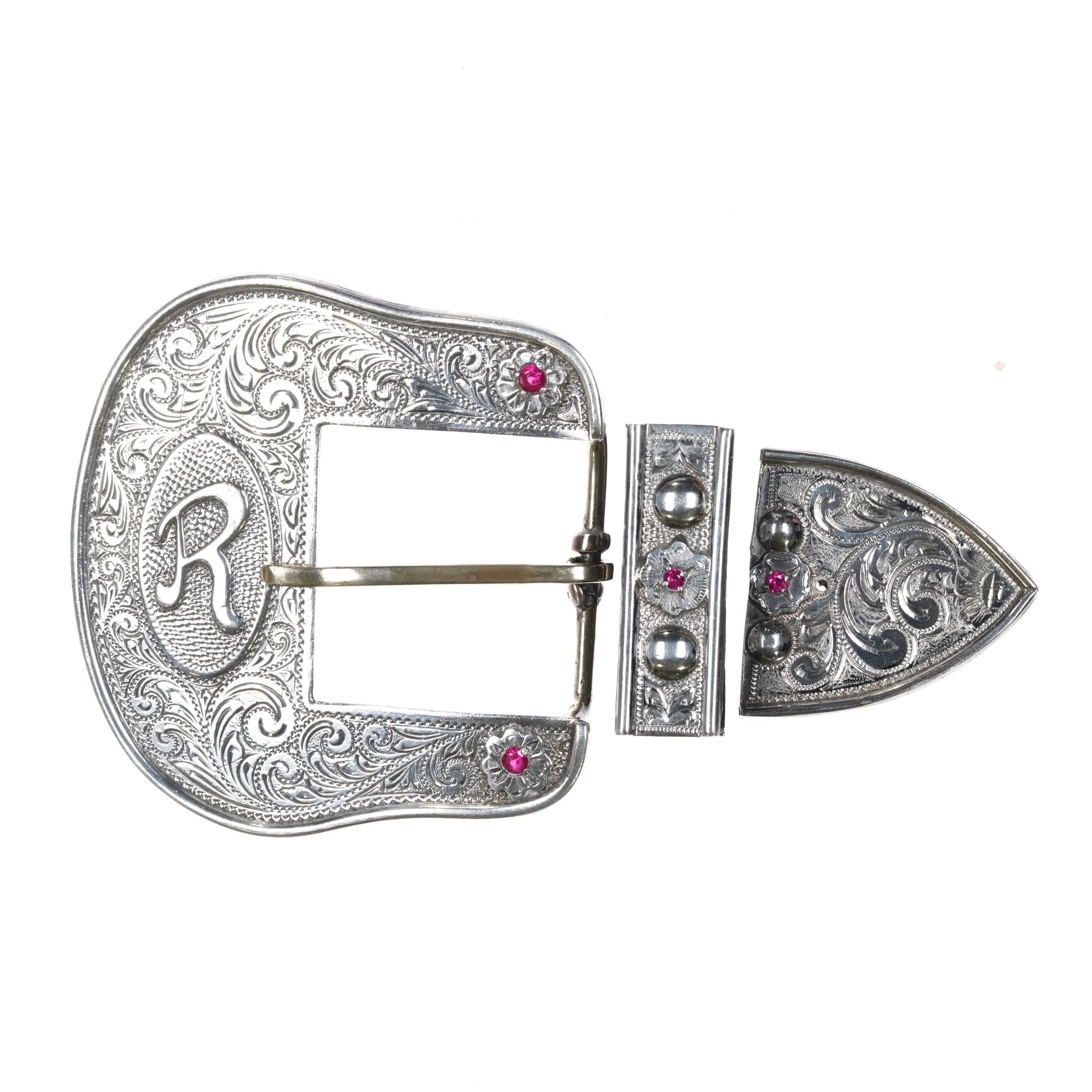 Large 1.5" R Initial Sterling silver Rubies Ranger belt buckle set MAC 1991