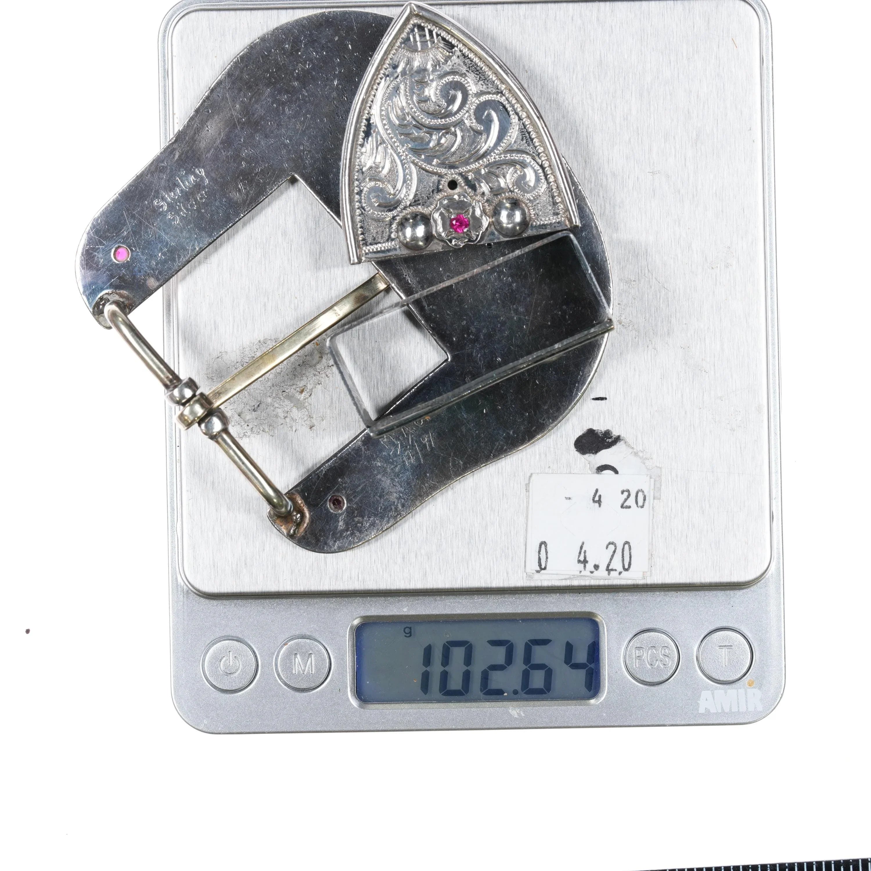 Large 1.5" R Initial Sterling silver Rubies Ranger belt buckle set MAC 1991. Solid sterling silver with weight and measurements in pictures, some expected wear with no damage. Appears to have been made by MAC in 1991.