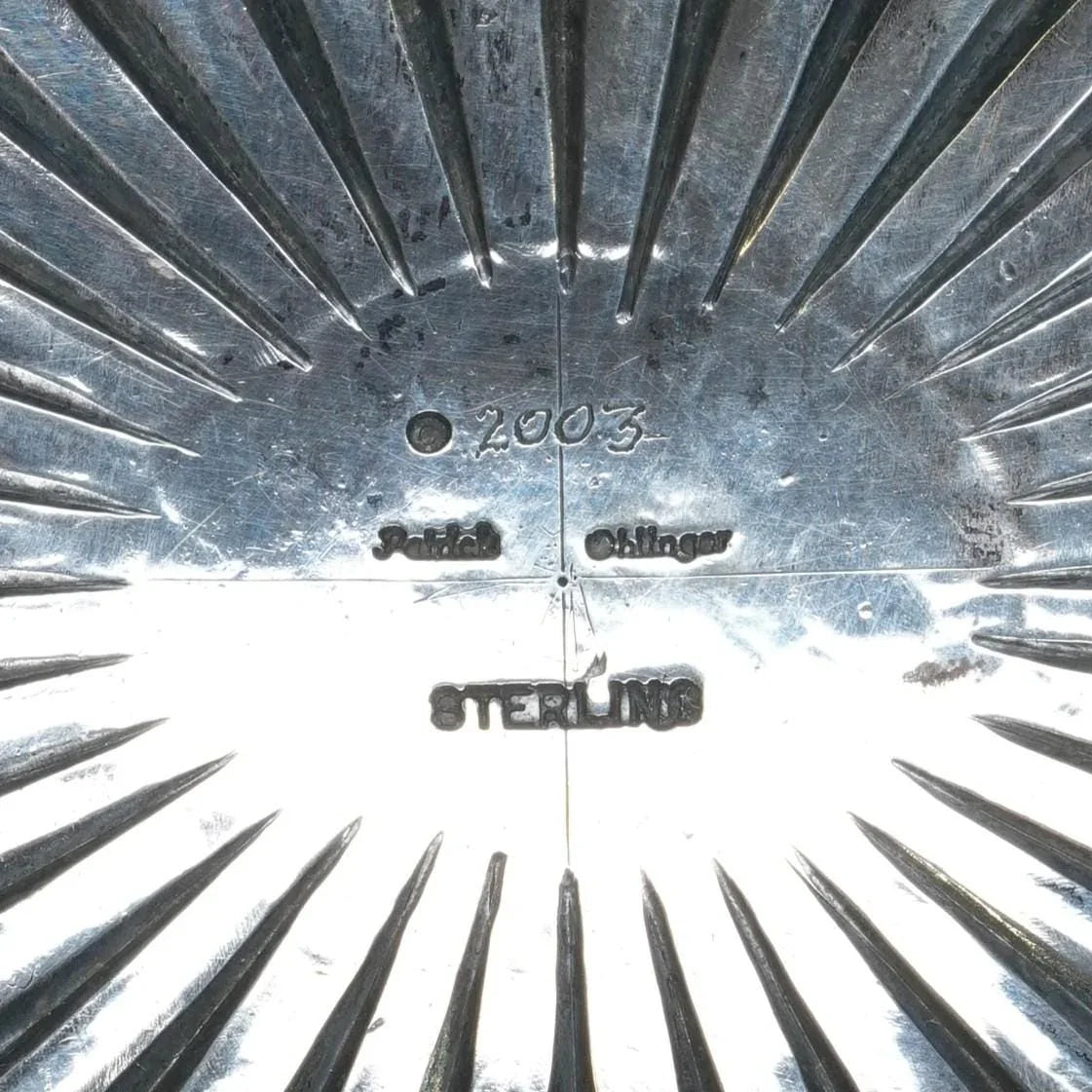 Large Patrick Ohlinger High grade turquoise hand stamped sterling belt buckle. Fits up to a 1.5" belt. Solid sterling silver with weight and measurements in pictures. Tested and guaranteed solid sterling silver.