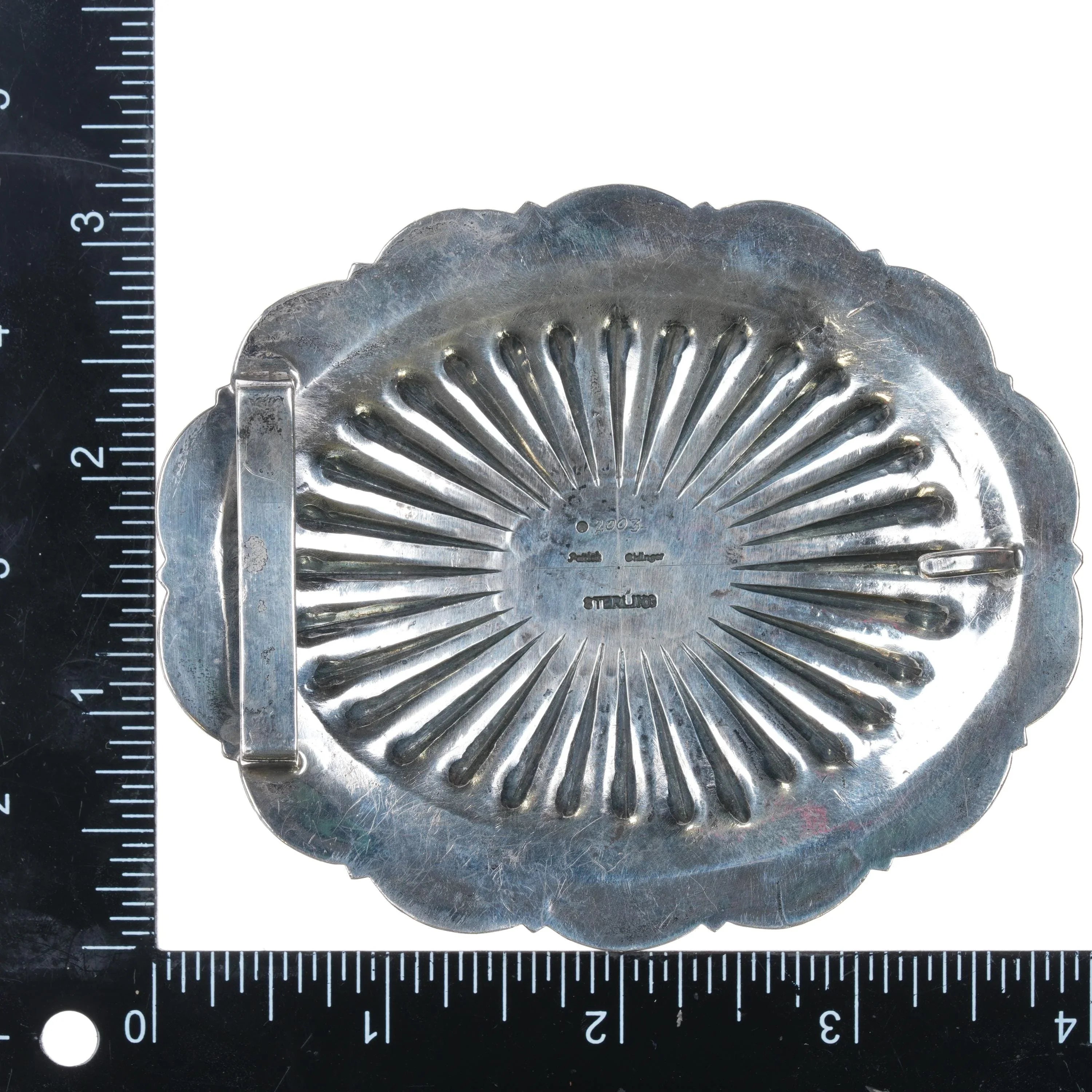 Large Patrick Ohlinger High grade turquoise hand stamped sterling belt buckle