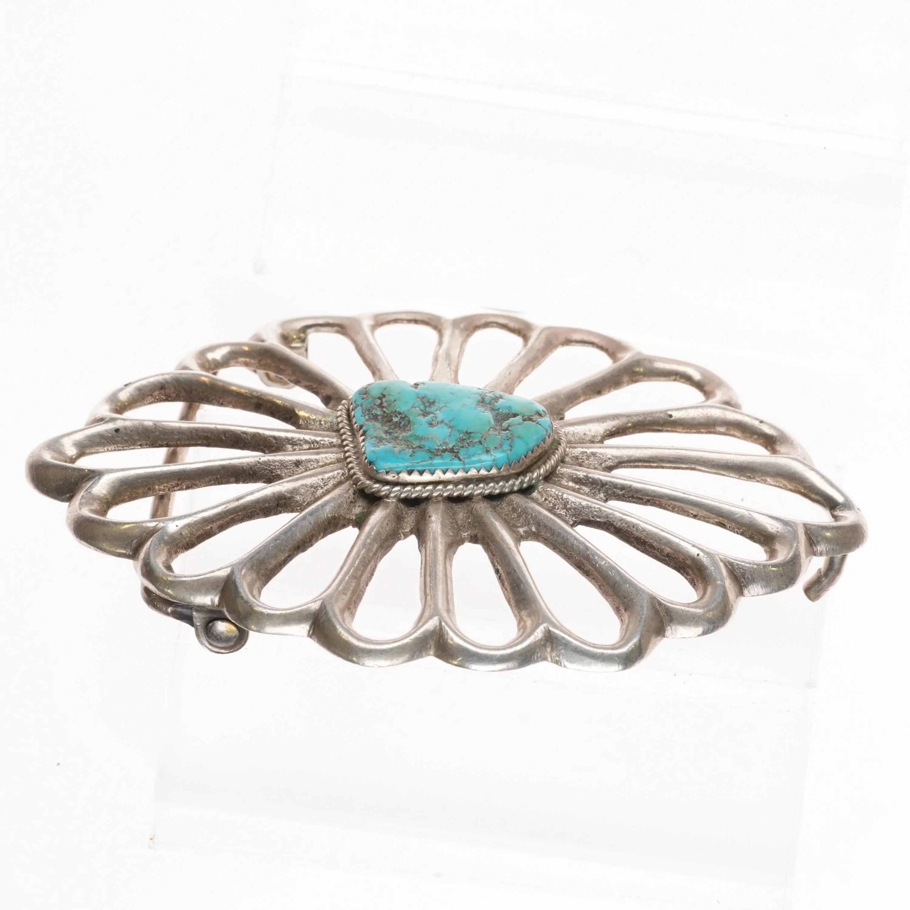 Large Vintage cast Navajo sterling silver turquoise belt buckle