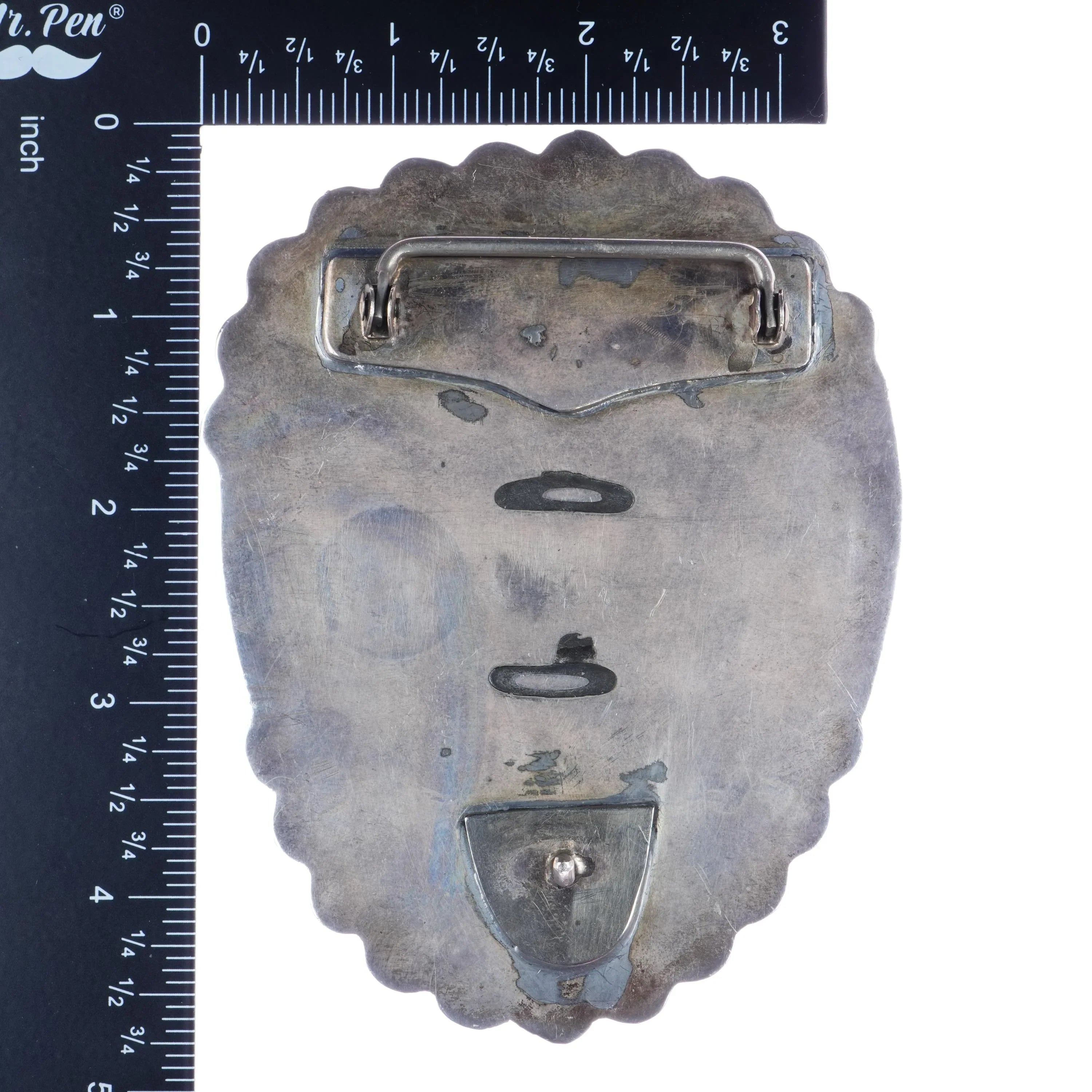 Large Vintage sterling turquoise abstract slab cluster border belt buckle