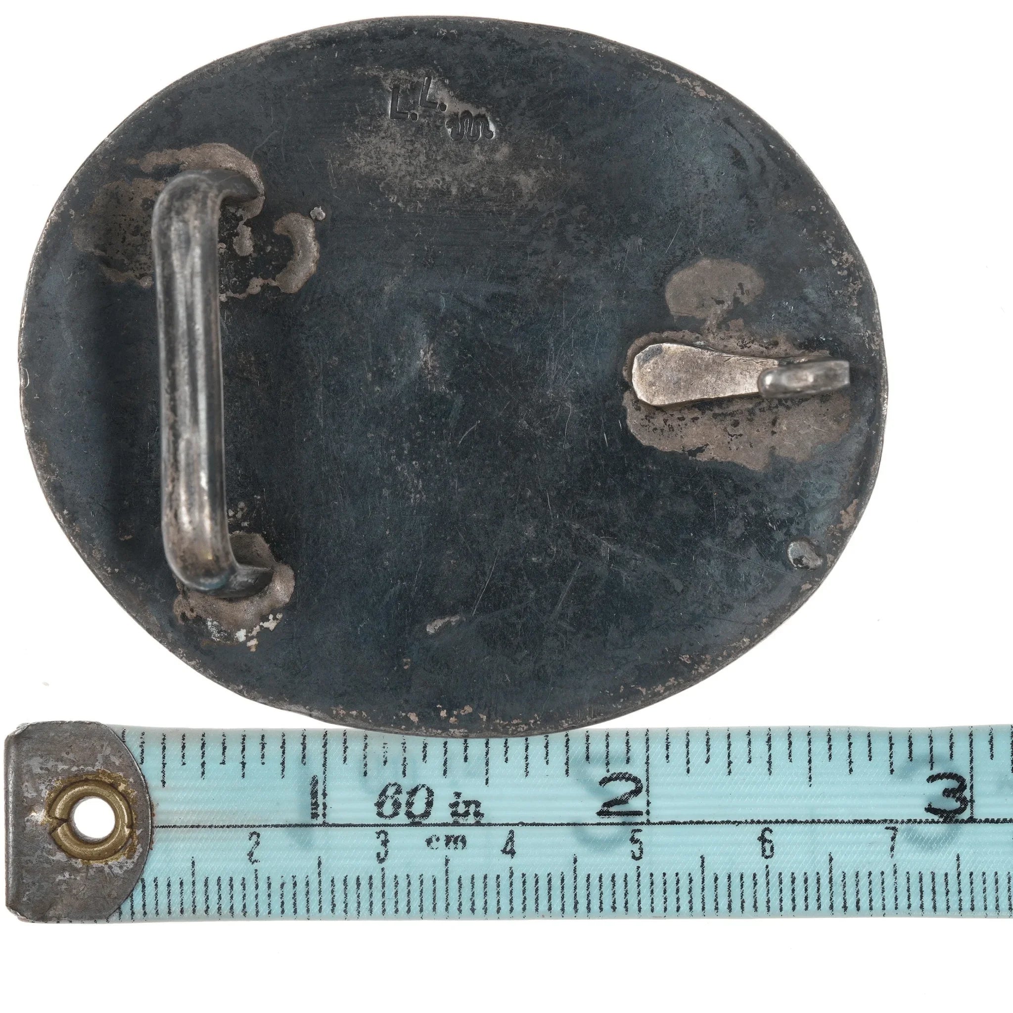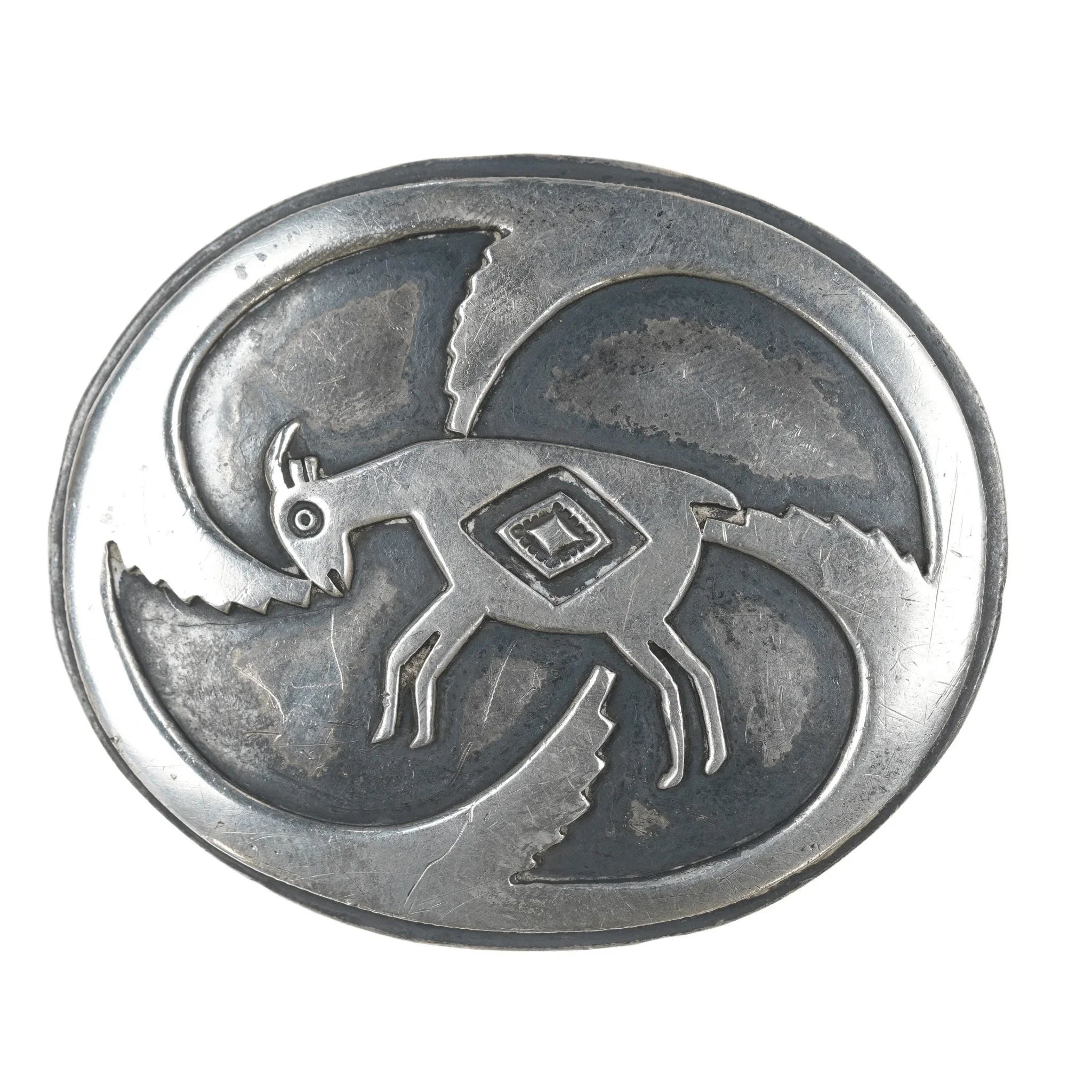 Lewis Lomay (1913-1996) Hopi Modernist overlay goat belt buckle 53.3 grams, fits a 1" belt, possibly custom made for a capricorn.