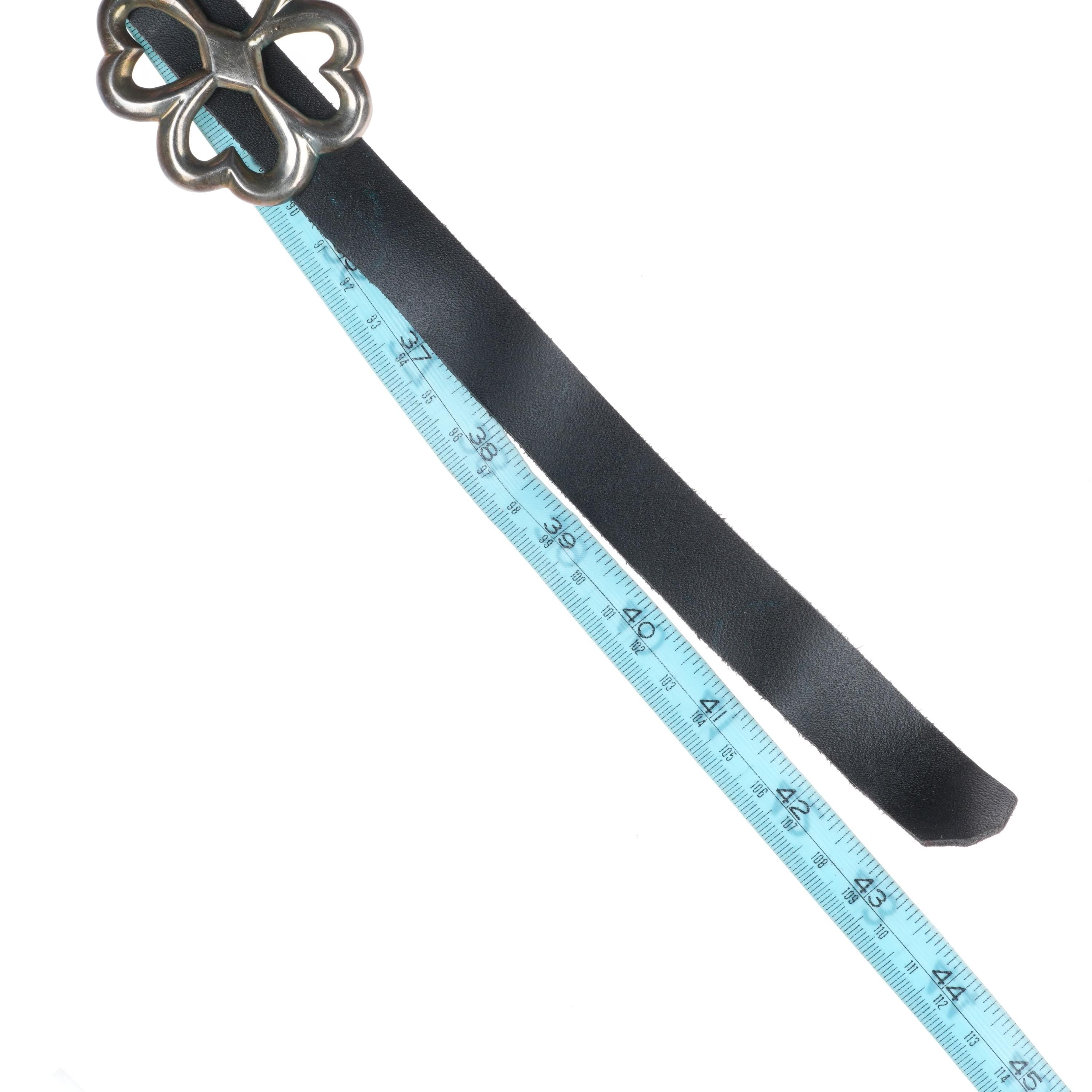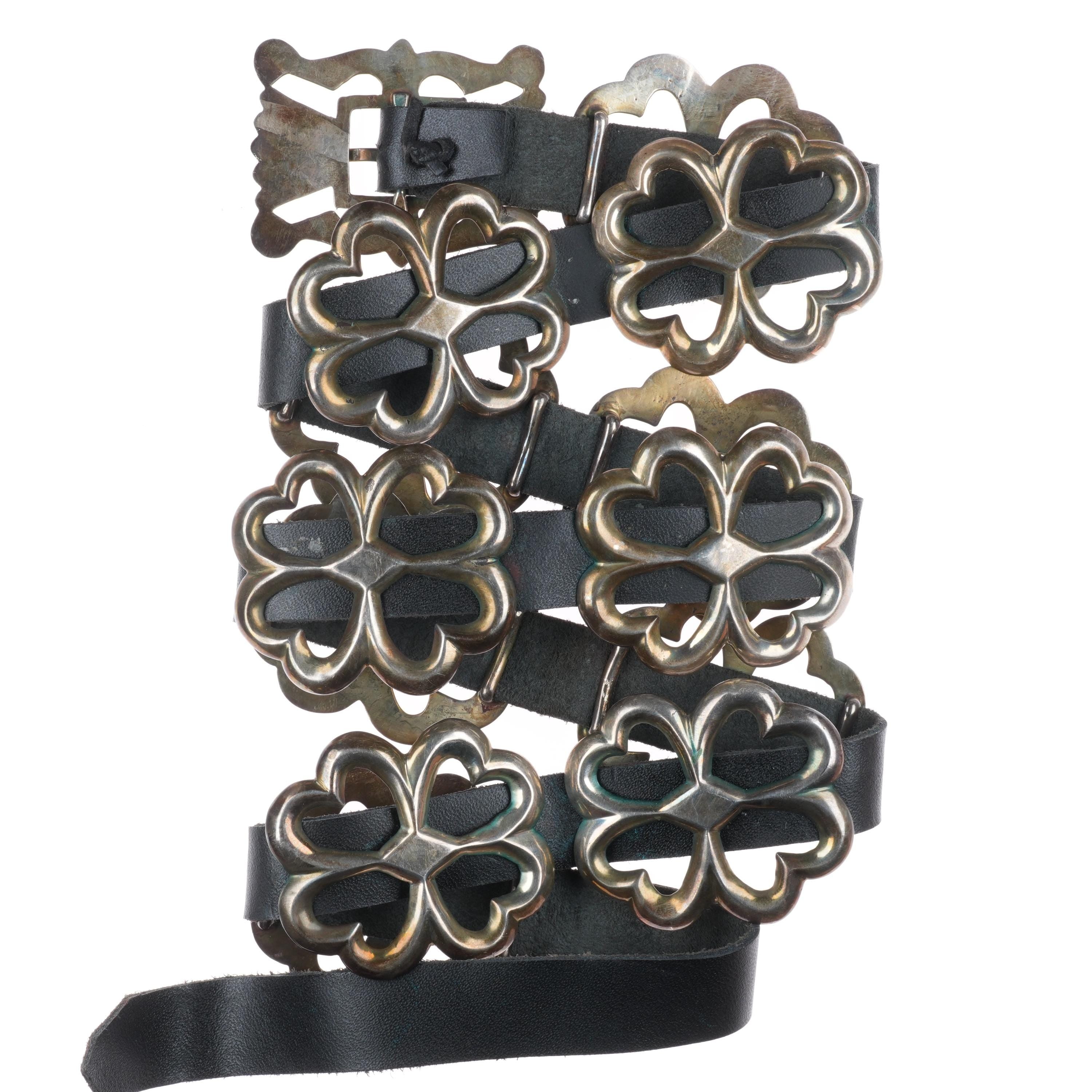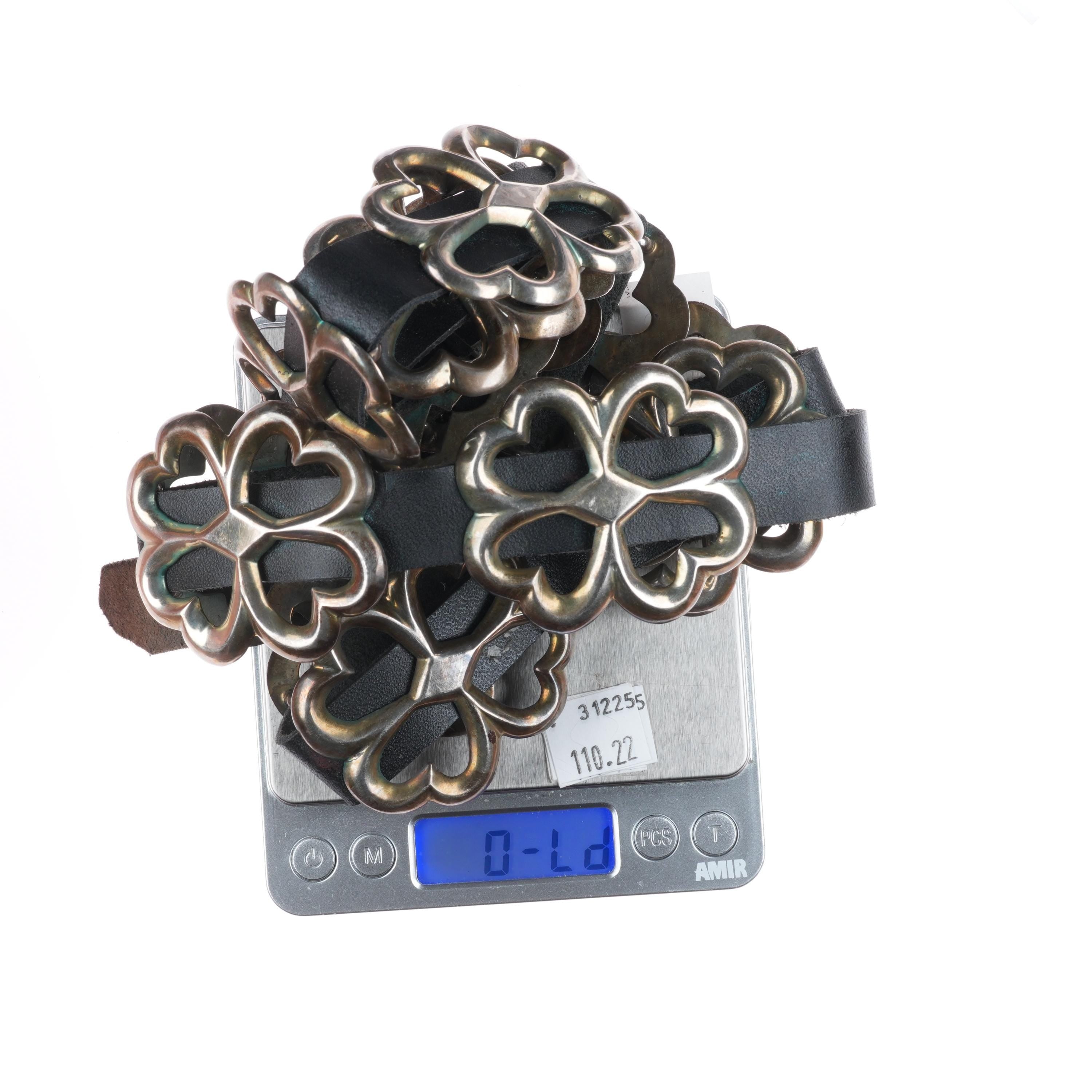 Long Vintage Navajo sterling silver sandcast concho belt. Tape measure shown in pics.. Will fit up to a 43" waist, has no holes. I can add some upon request. Weight and measurements in pictures. No damage or issues, tested and guaranteed solid sterling silver. 12 Conchos and one buckle, circa third quarter of the 20th century, no hallmarks. 562 grams.