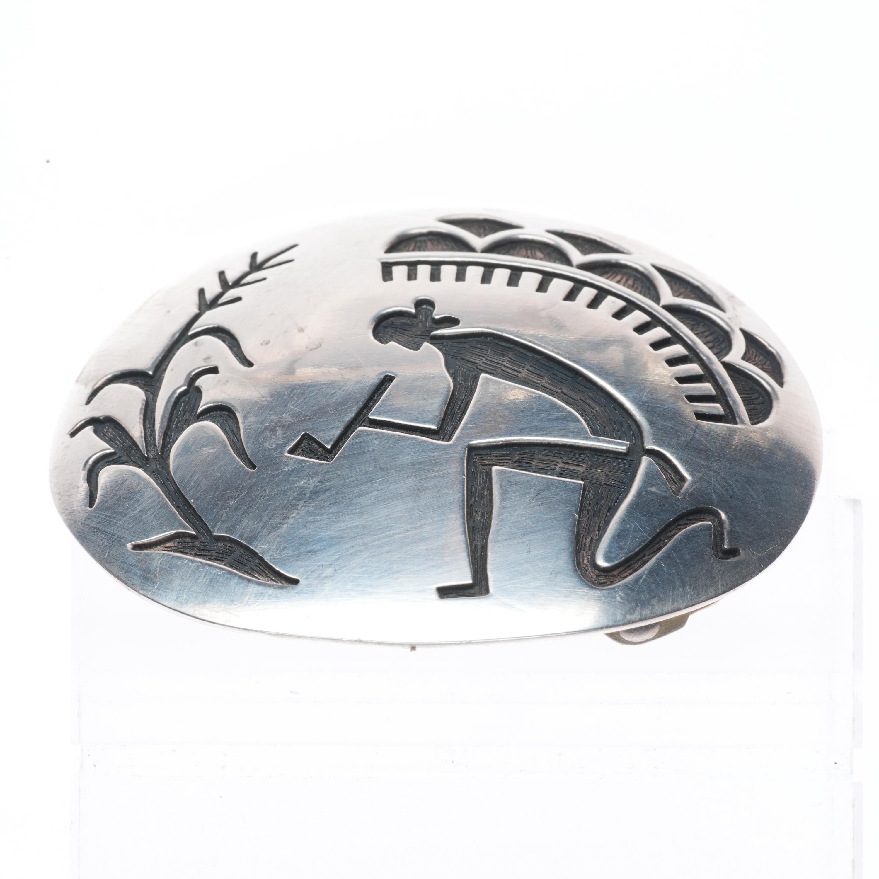 Manuel & Karen Hoyungowa Hopi vintage sterling silver pipe smoker belt buckle