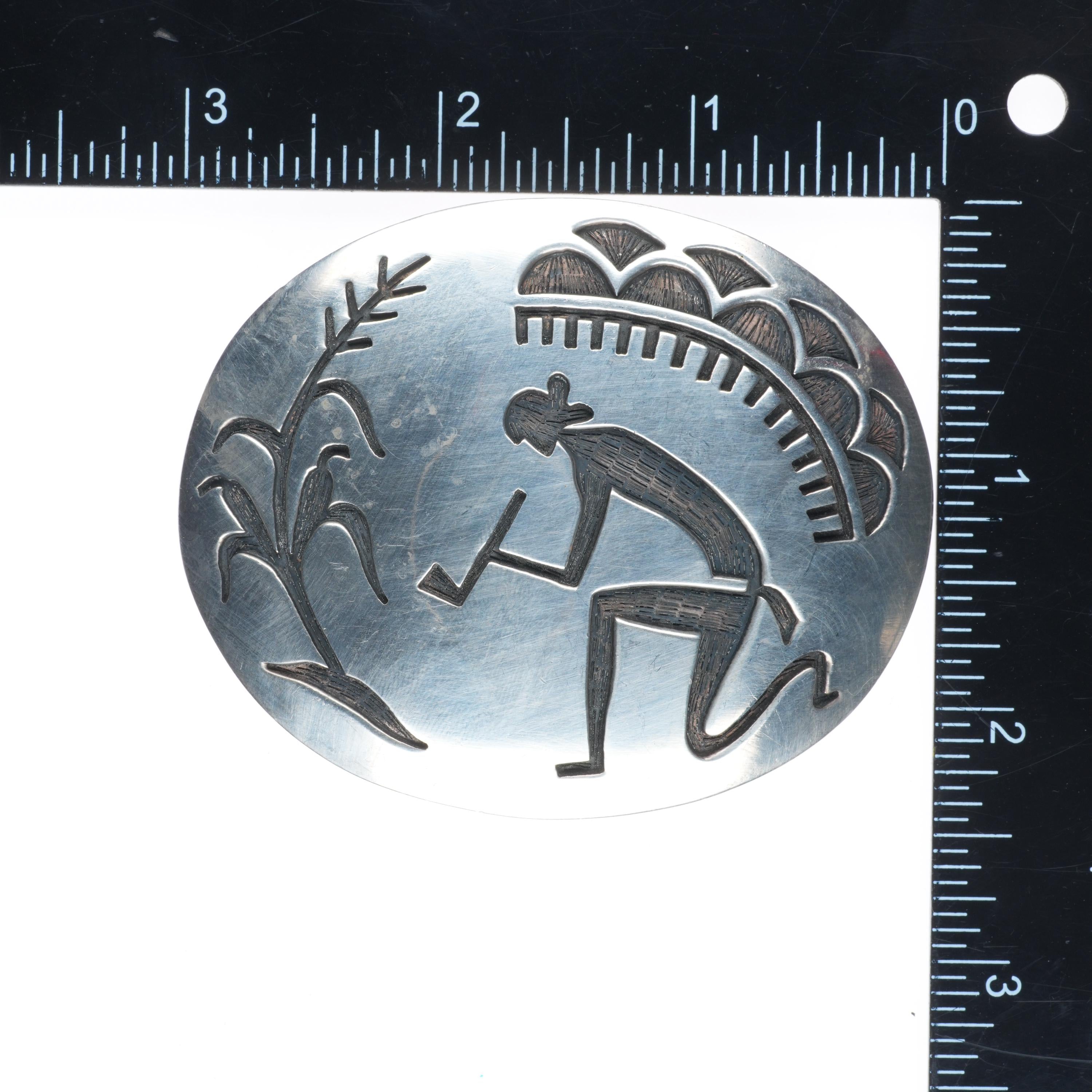 Manuel & Karen Hoyungowa Hopi vintage sterling silver pipe smoker belt buckle Tested and guaranteed solid sterling silver. Weight and measurements in pictures, circa fourth quarter of the 20th century. Fits a 1.5" belt.