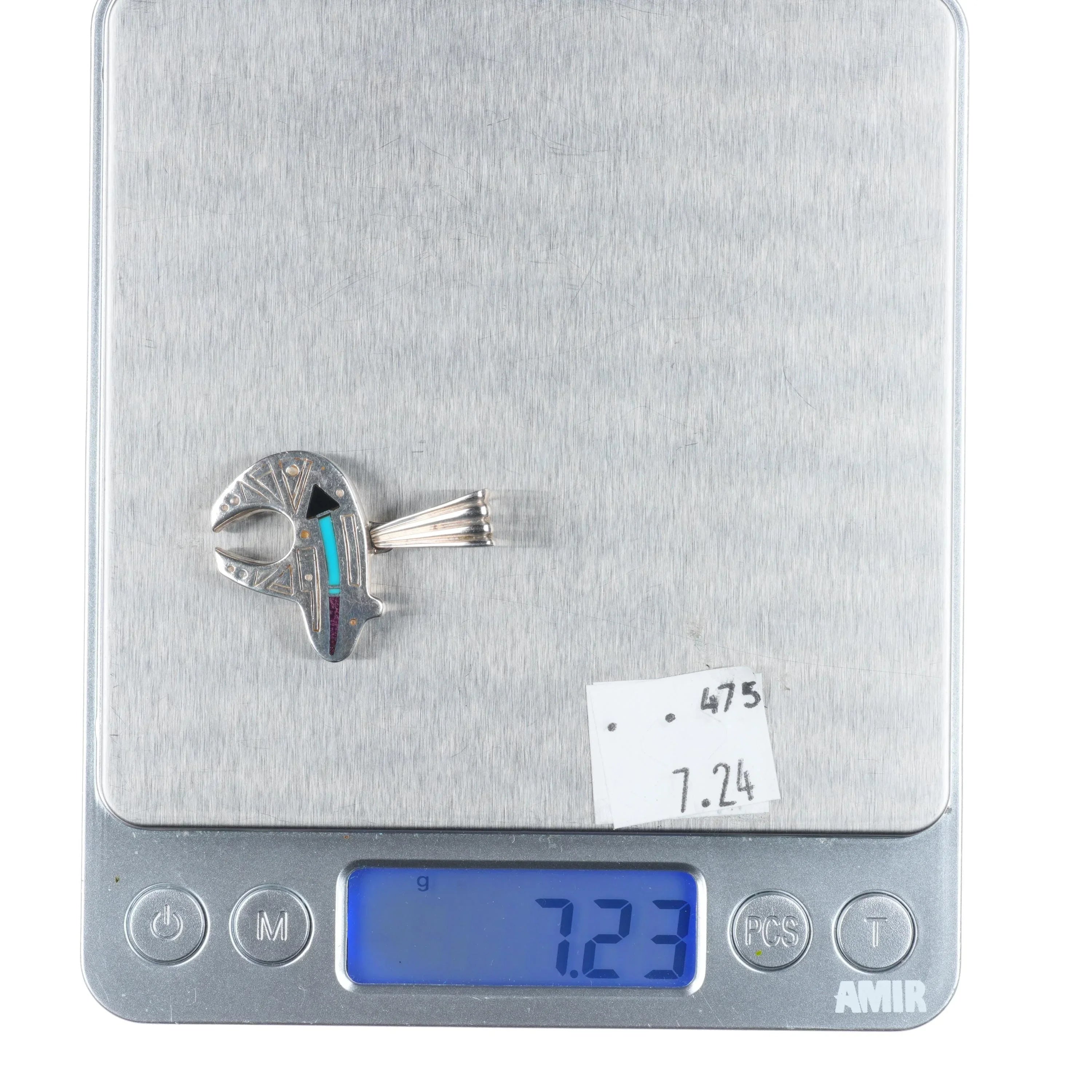 Ray Tracy Knifewing sterling silver, sugilite, turquoise, onyx bear pendant. Solid sterling silver tested and guaranteed with weight and measurements in the pictures. No issues, circa last quarter of the 20th century.