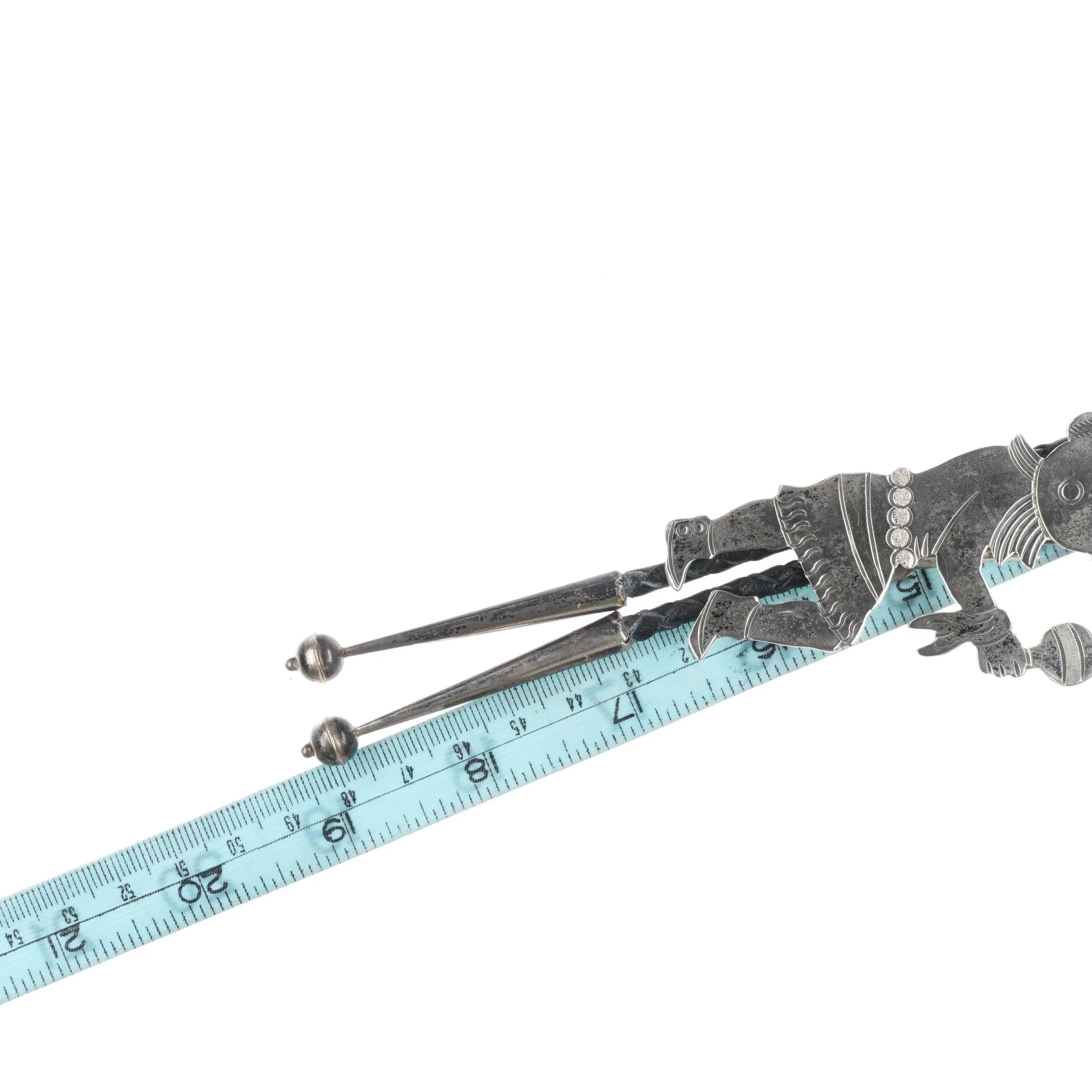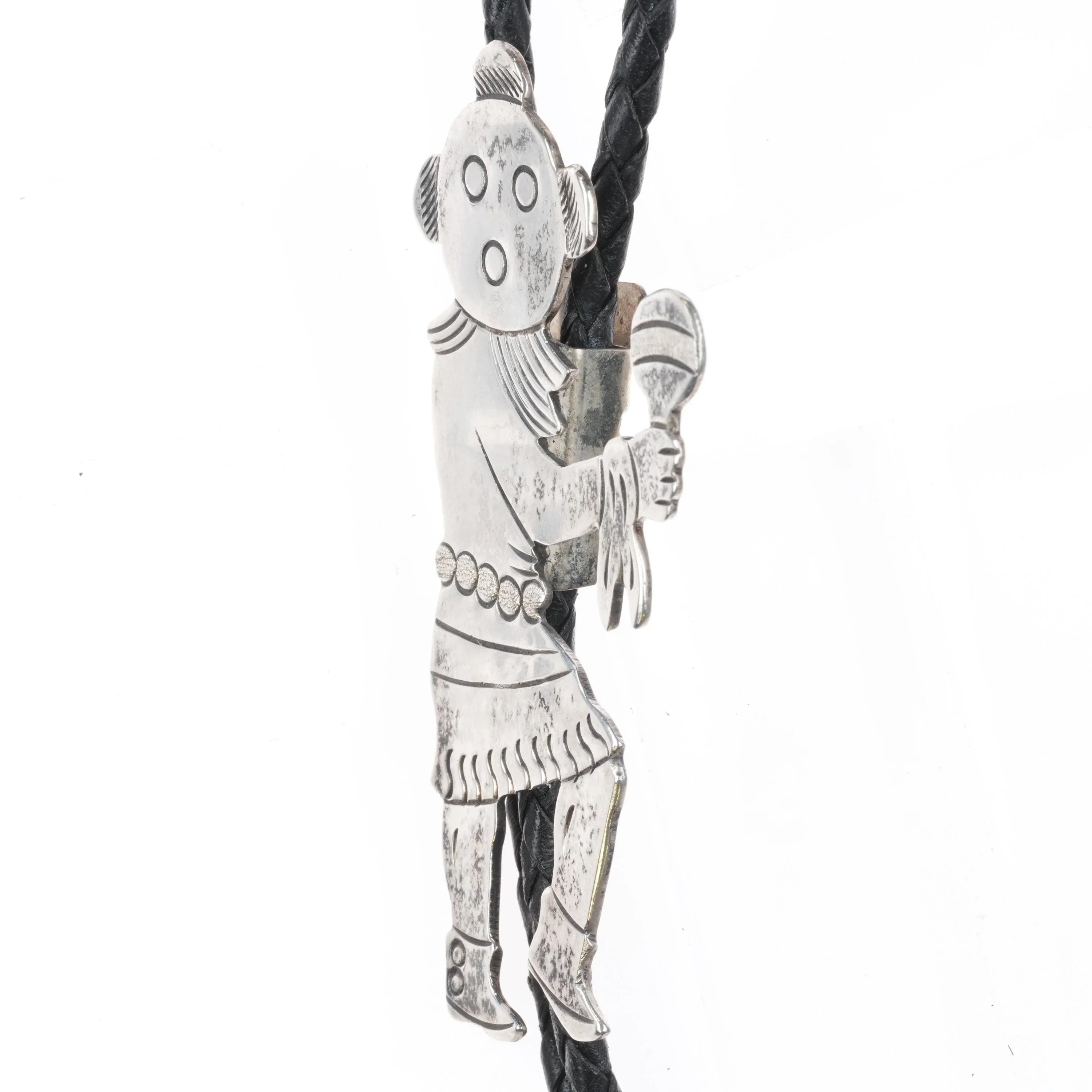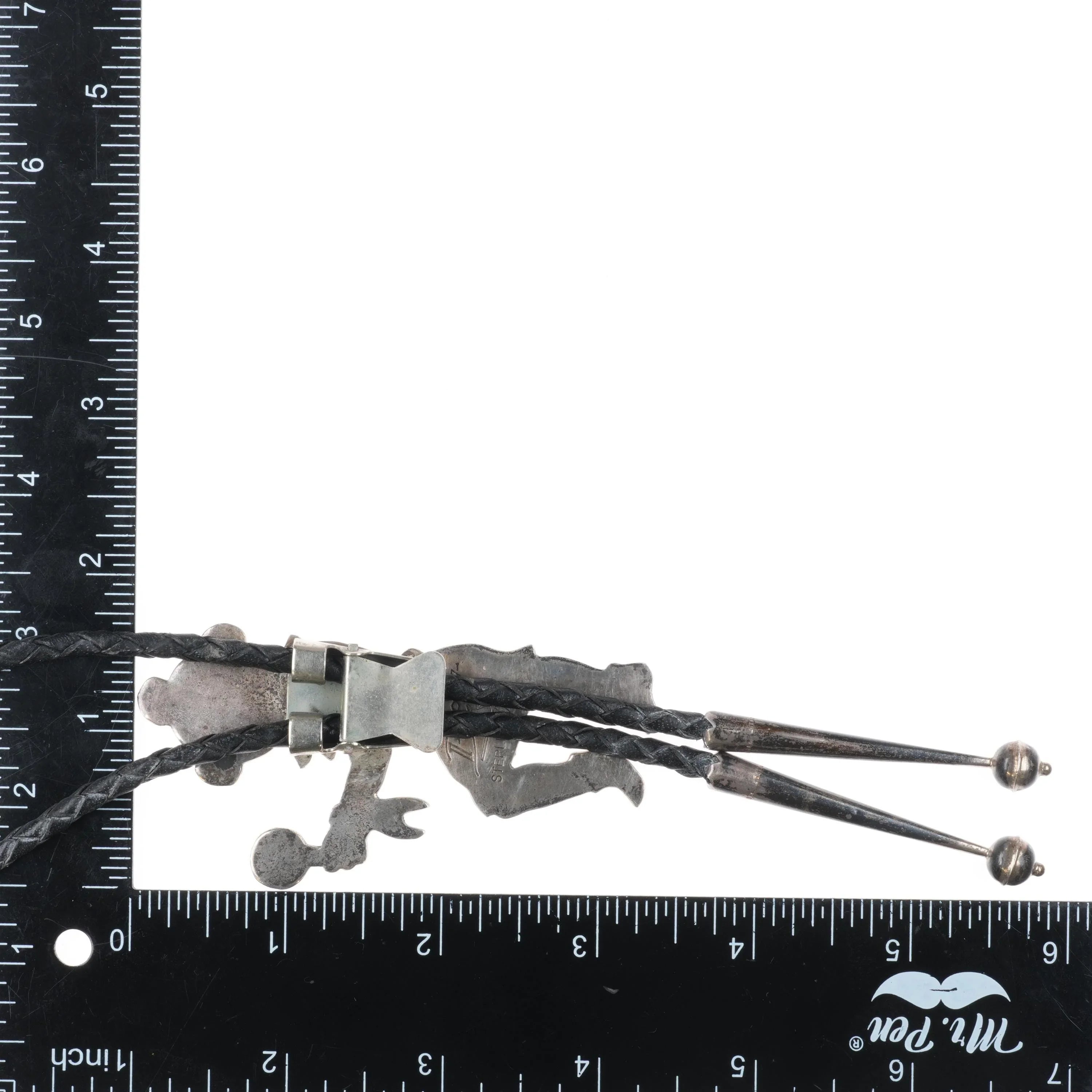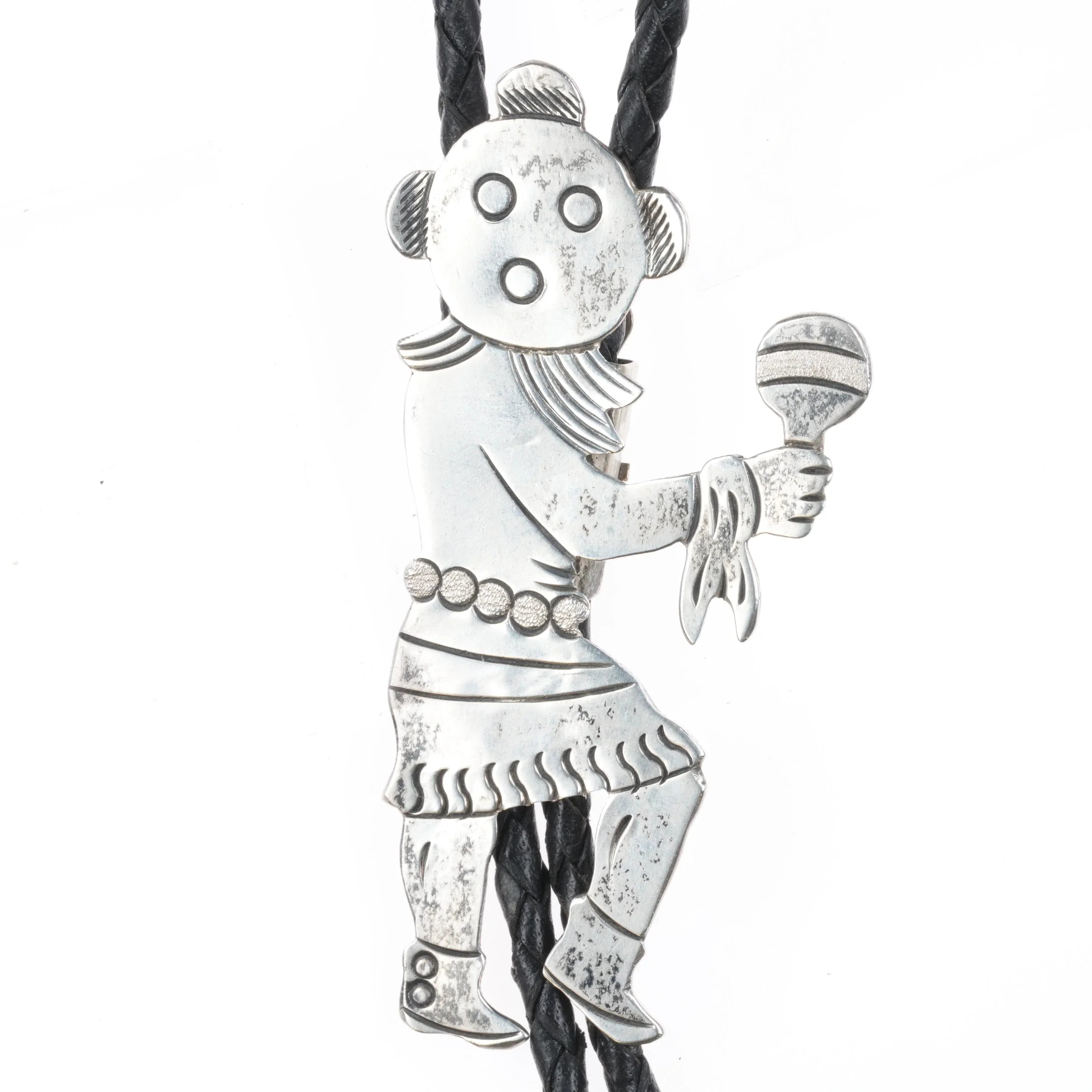 Robert Becenti Jr Vintage Navajo sterling silver Kachina figure overlay bolo tie