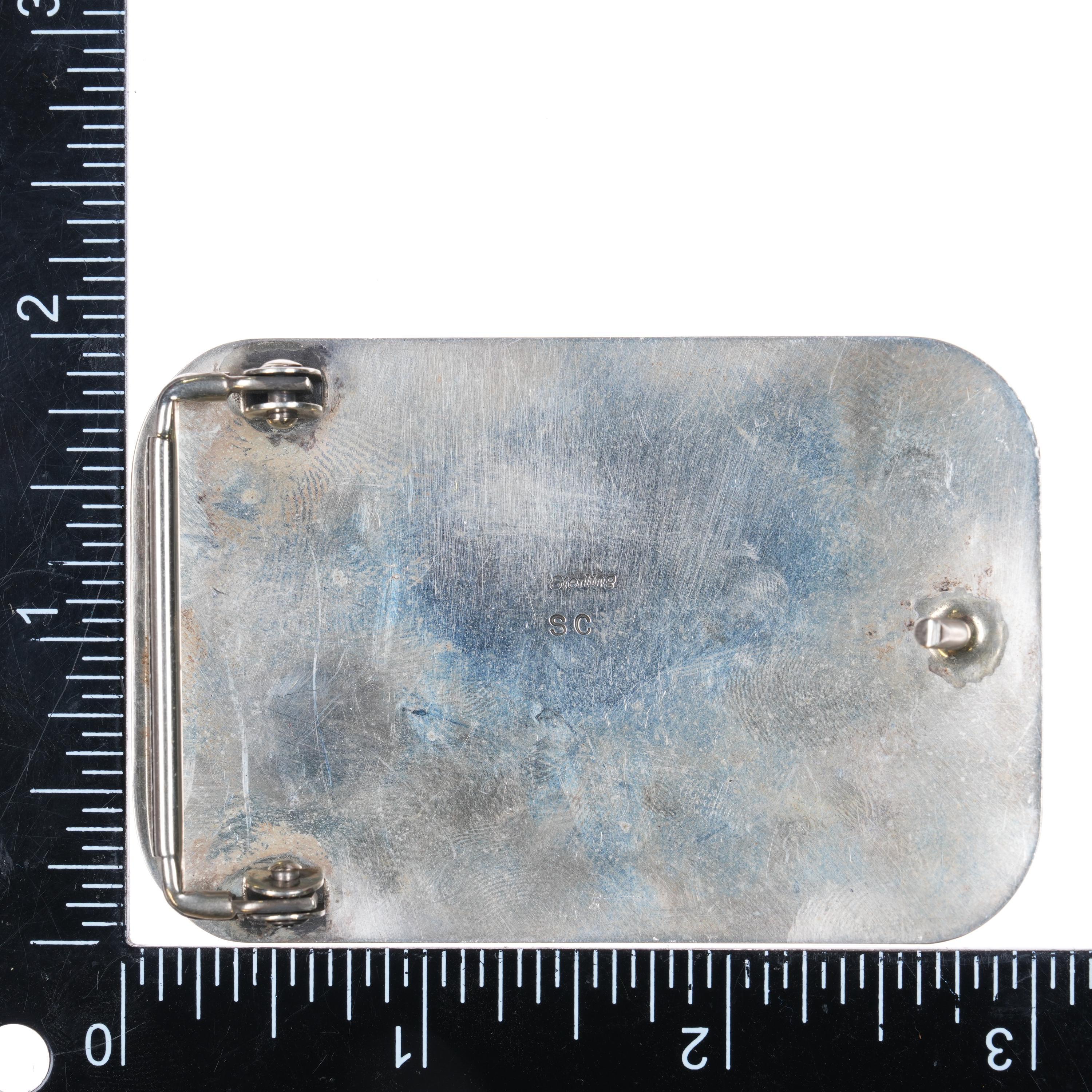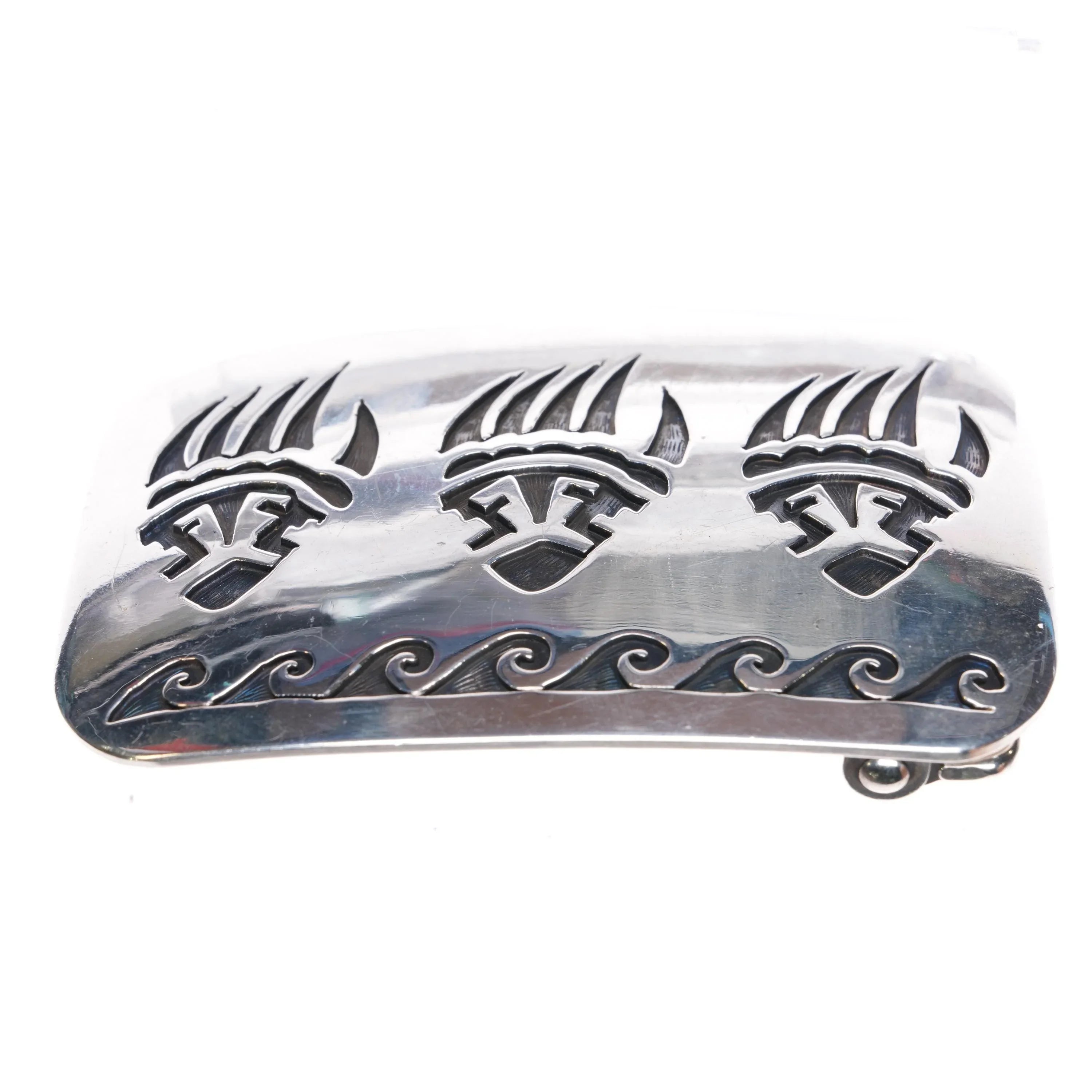 Sharon Cisco Navajo Sterling silver Bear Paw Water/waves overlay belt buckle