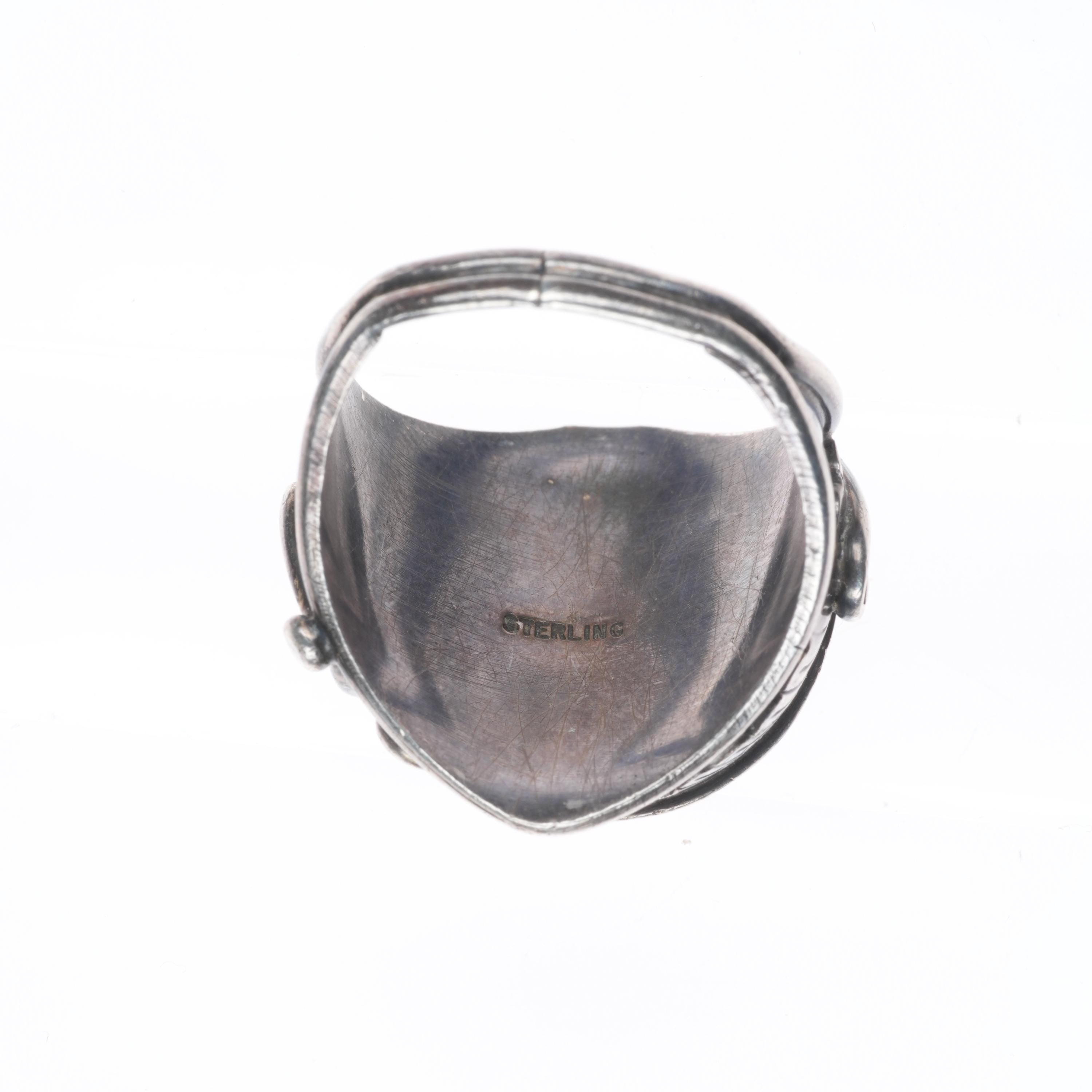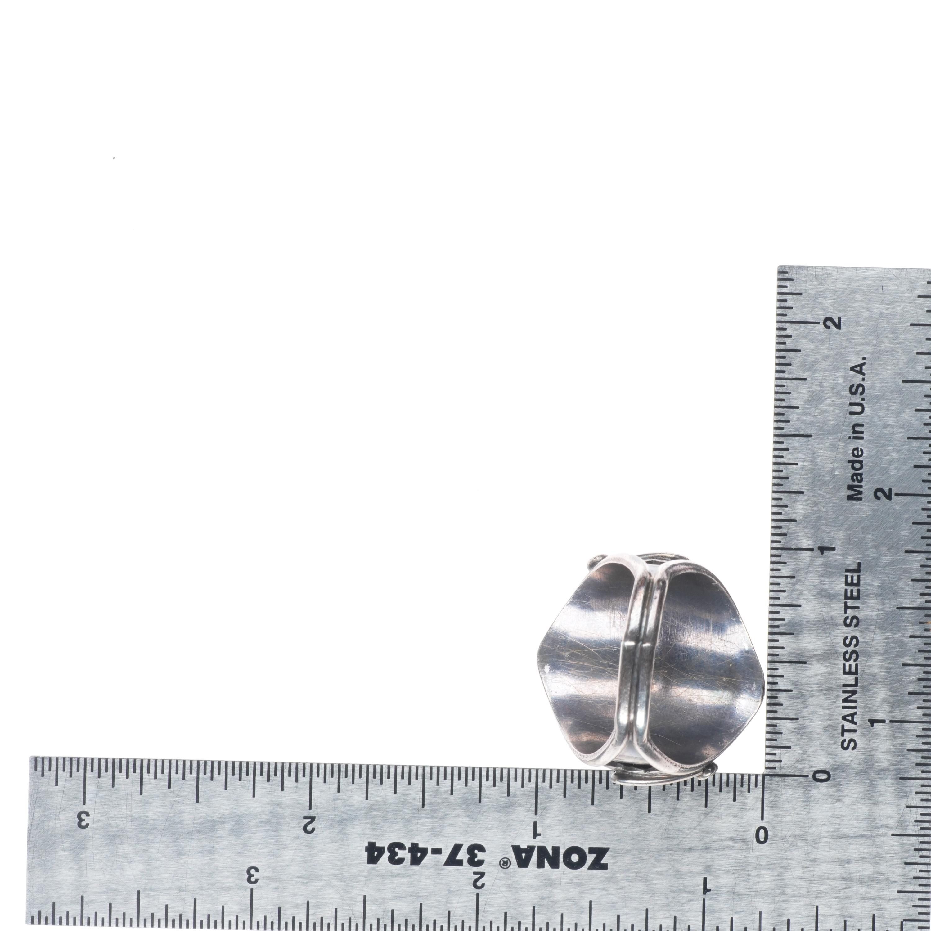 sz10.5 70's-80's Vintage Navajo sterling silver feather design turquoise ring