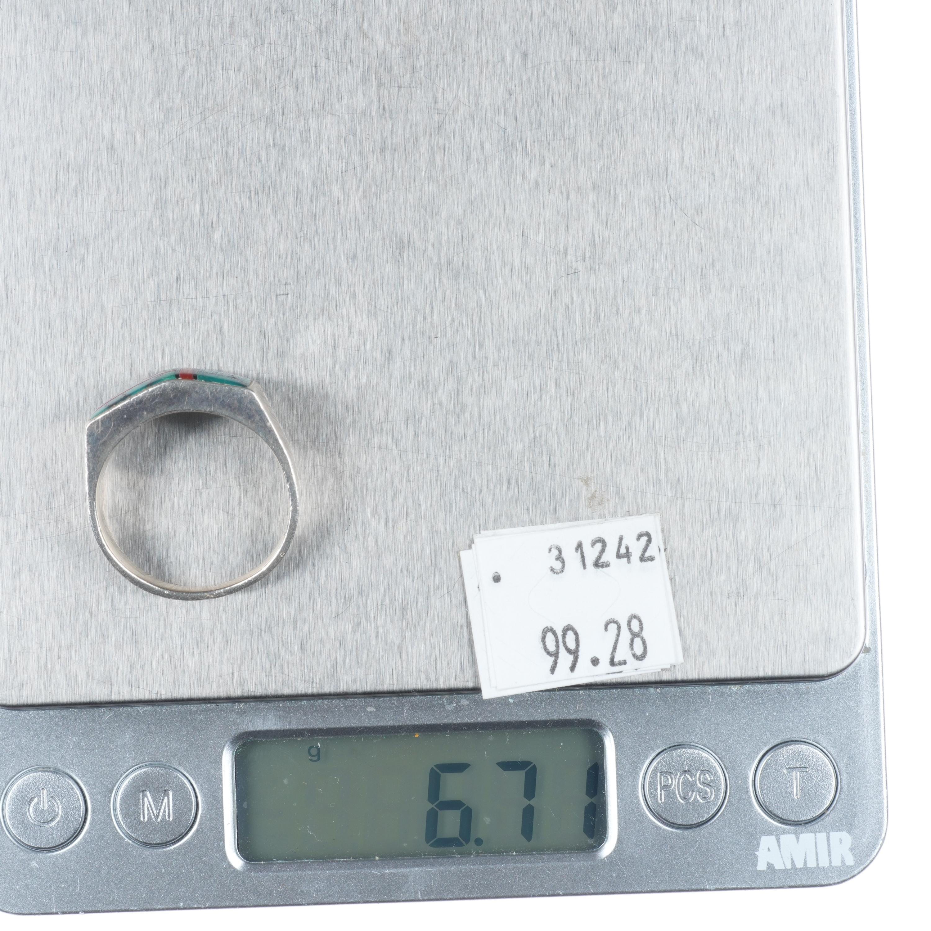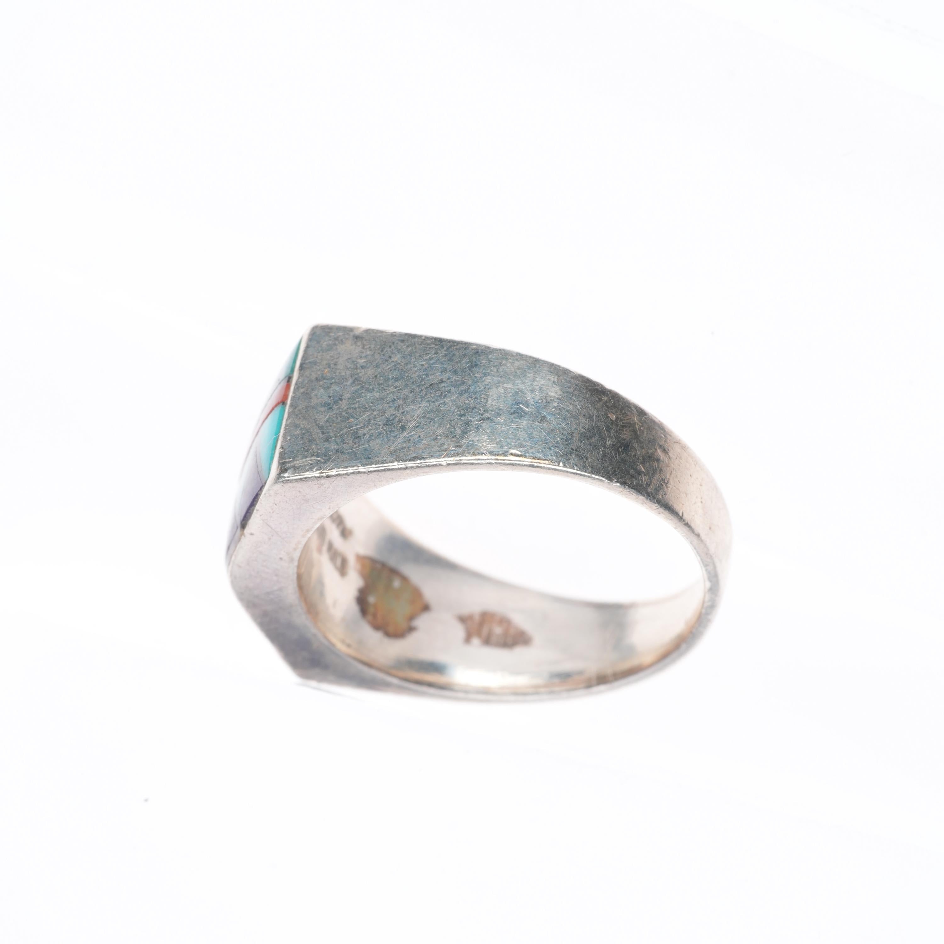 sz10.5 Jim Harrison Navajo sterling silver intarsia inlay turquoise/coral ring. Tested and guaranteed solid sterling silver. Nice ring from the last quarter of the 20th century. Some expected wear, weight and measurements in pictures.