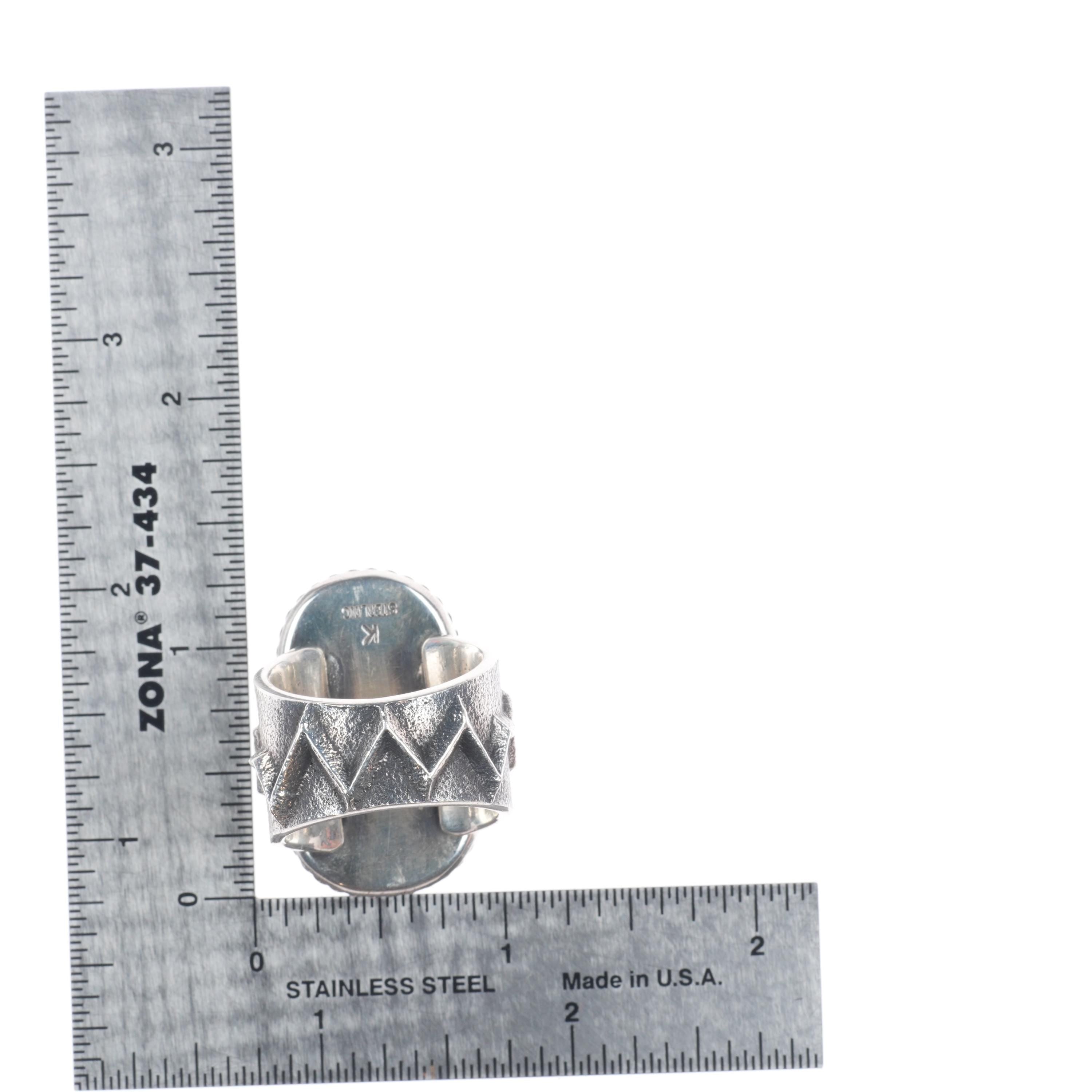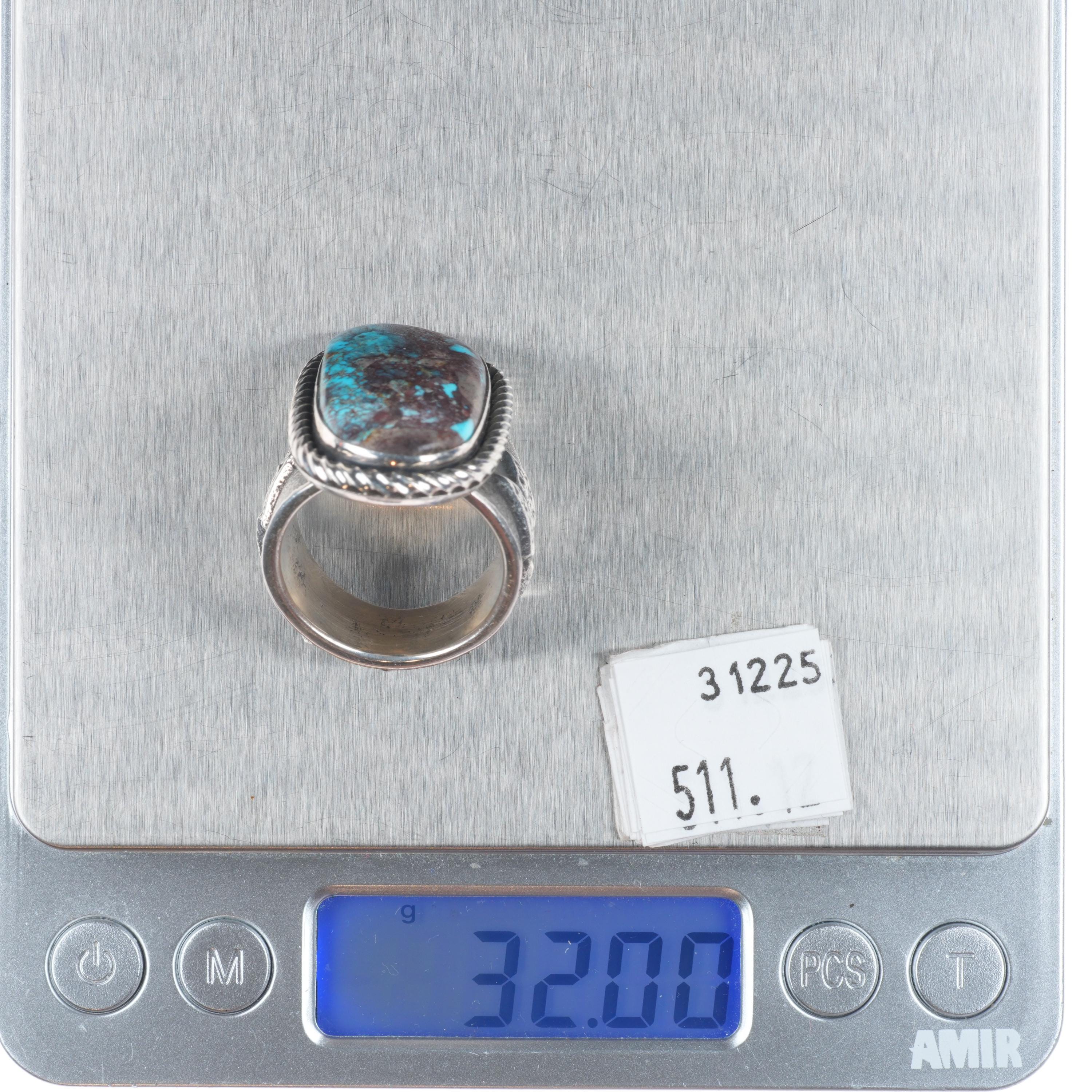 sz10 Kevin Yazzie Navajo Bisbee turquoise tufa cast sterling silver ring. Nice contemporary ring with high grade natural Bisbee spiderweb turquoise.