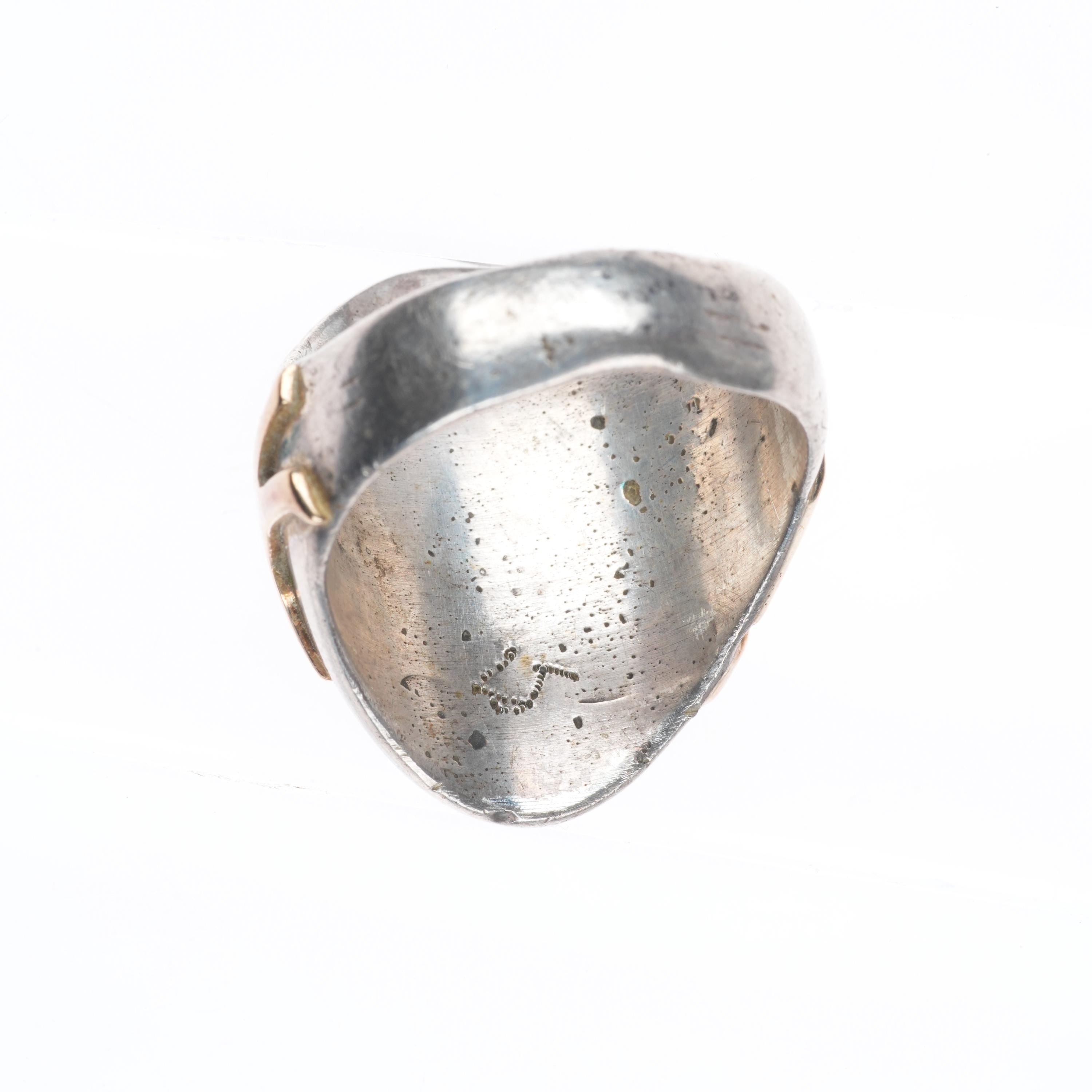 sz11.5 Vintage LJ Navajo sterling silver gold accents channel inlay men's ring