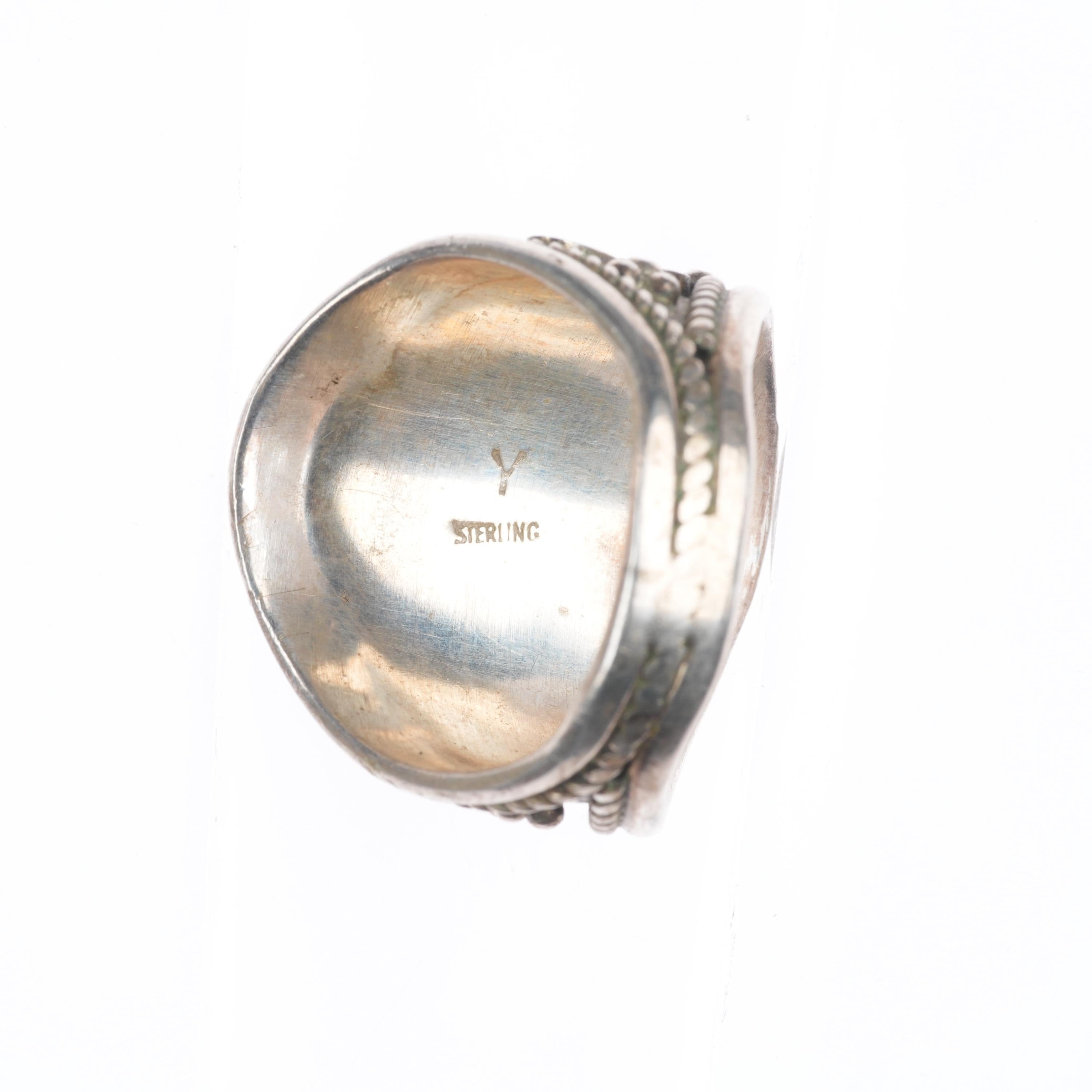 sz11.5 Y Vintage Navajo sterling silver Kingman turquoise 1980's feather ring