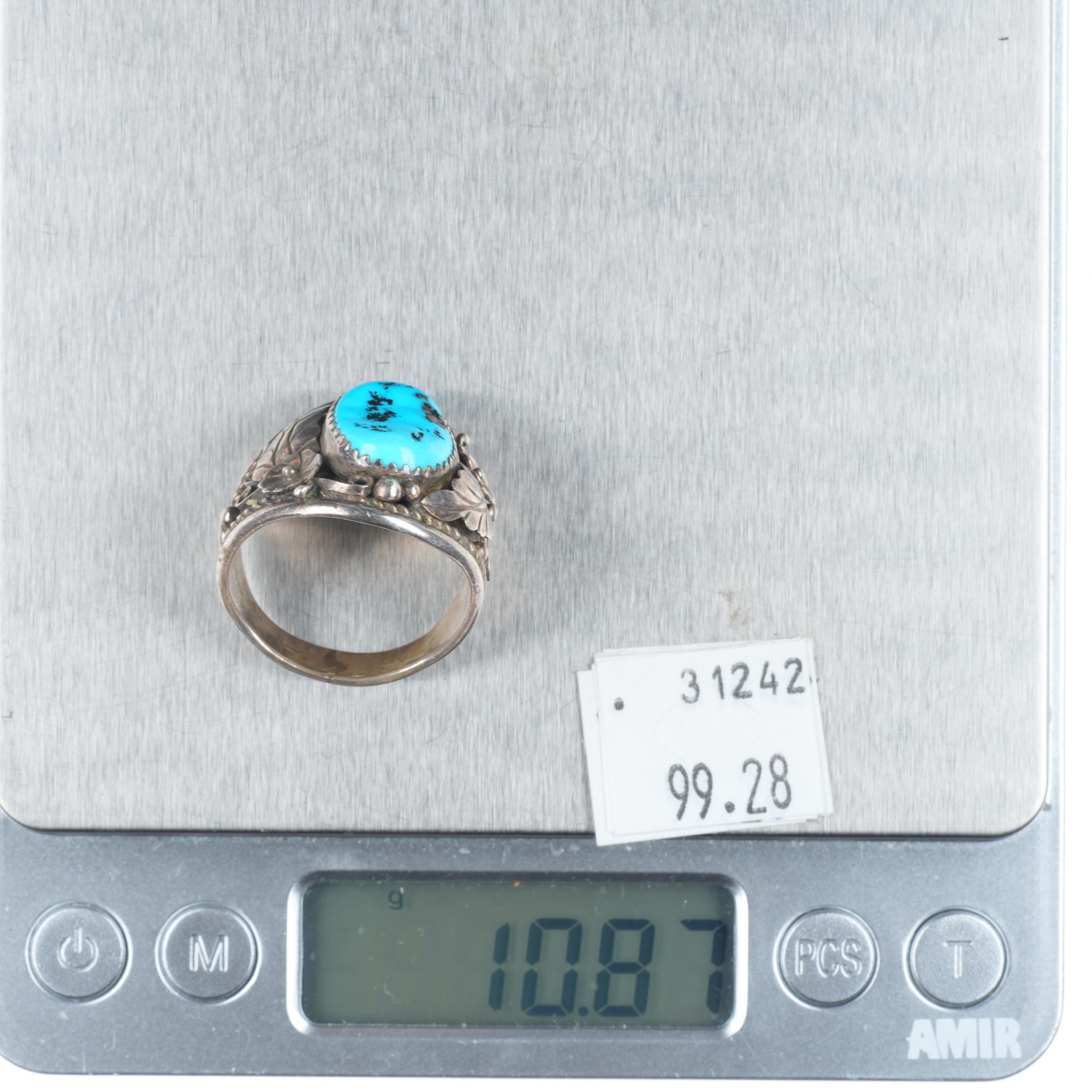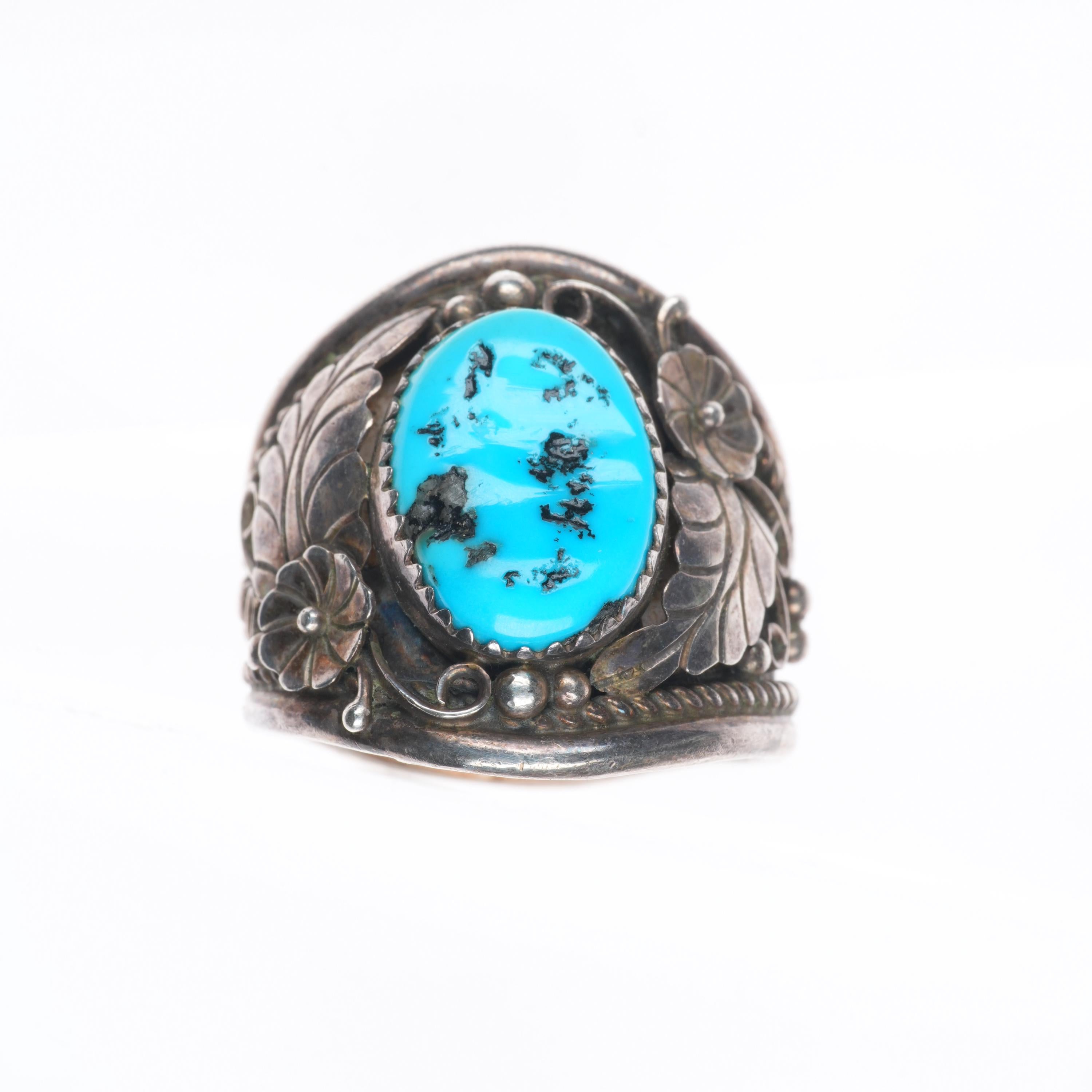 sz11.5 Y Vintage Navajo sterling silver Kingman turquoise 1980‘s feather ring. Tested and guaranteed solid sterling silver. Nice ring from the last quarter of the 20th century. Some expected wear, weight and measurements in pictures.