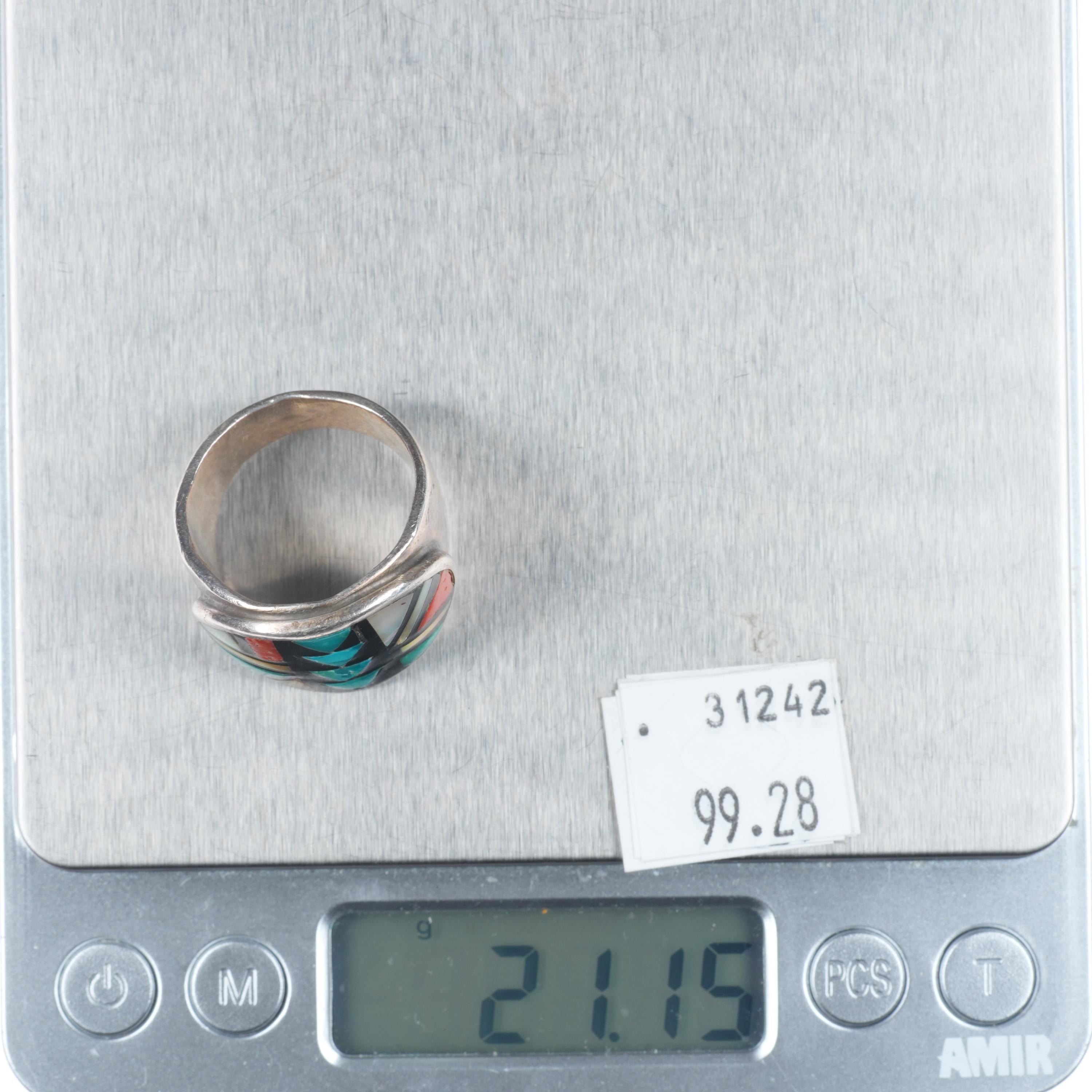 sz11 Big Vintage John & Rosalie Bowannie sterling silver intarsia inlay ring. Tested and guaranteed solid sterling silver. Nice ring from the last quarter of the 20th century. Some expected wear, weight and measurements in pictures. Very substantial and well made ring.