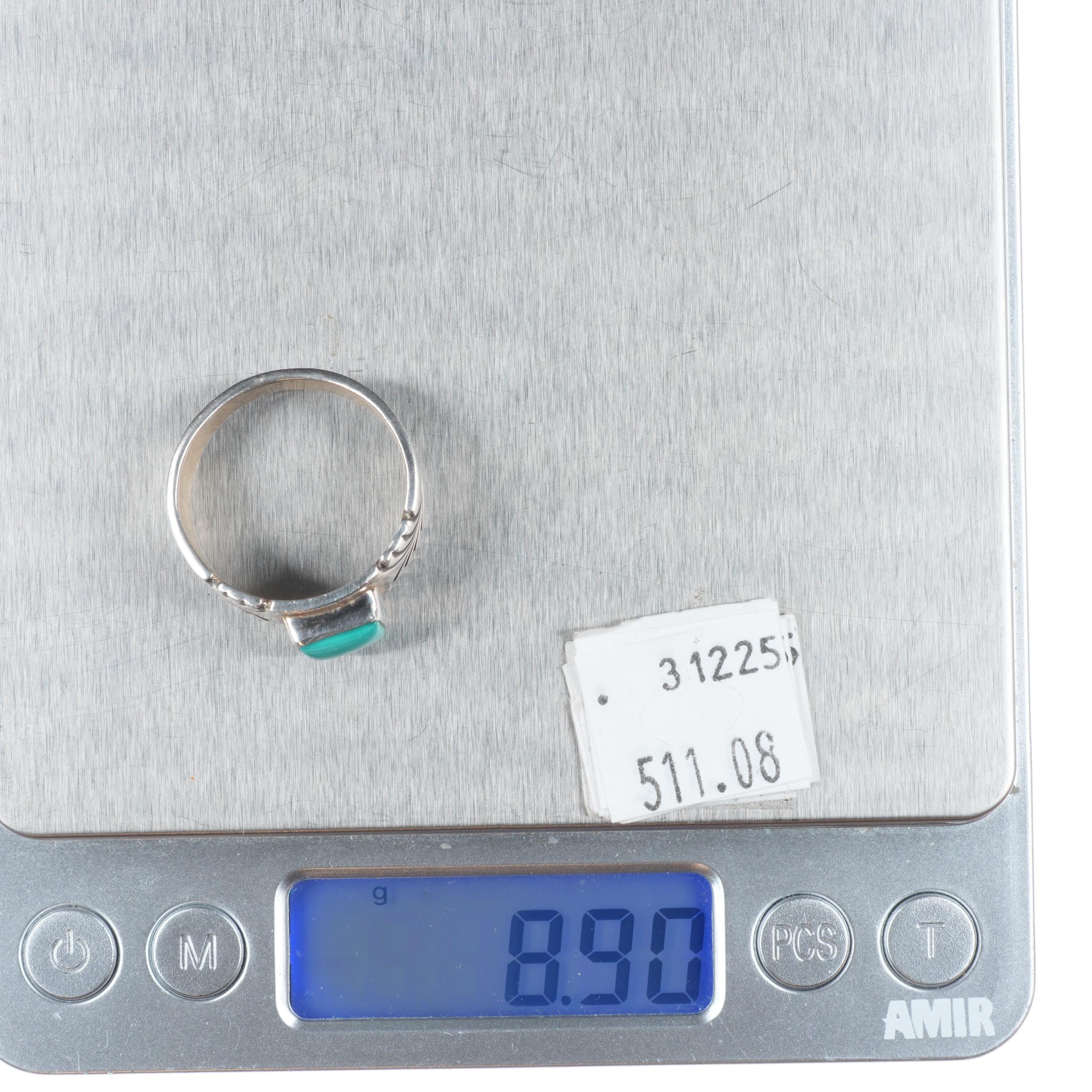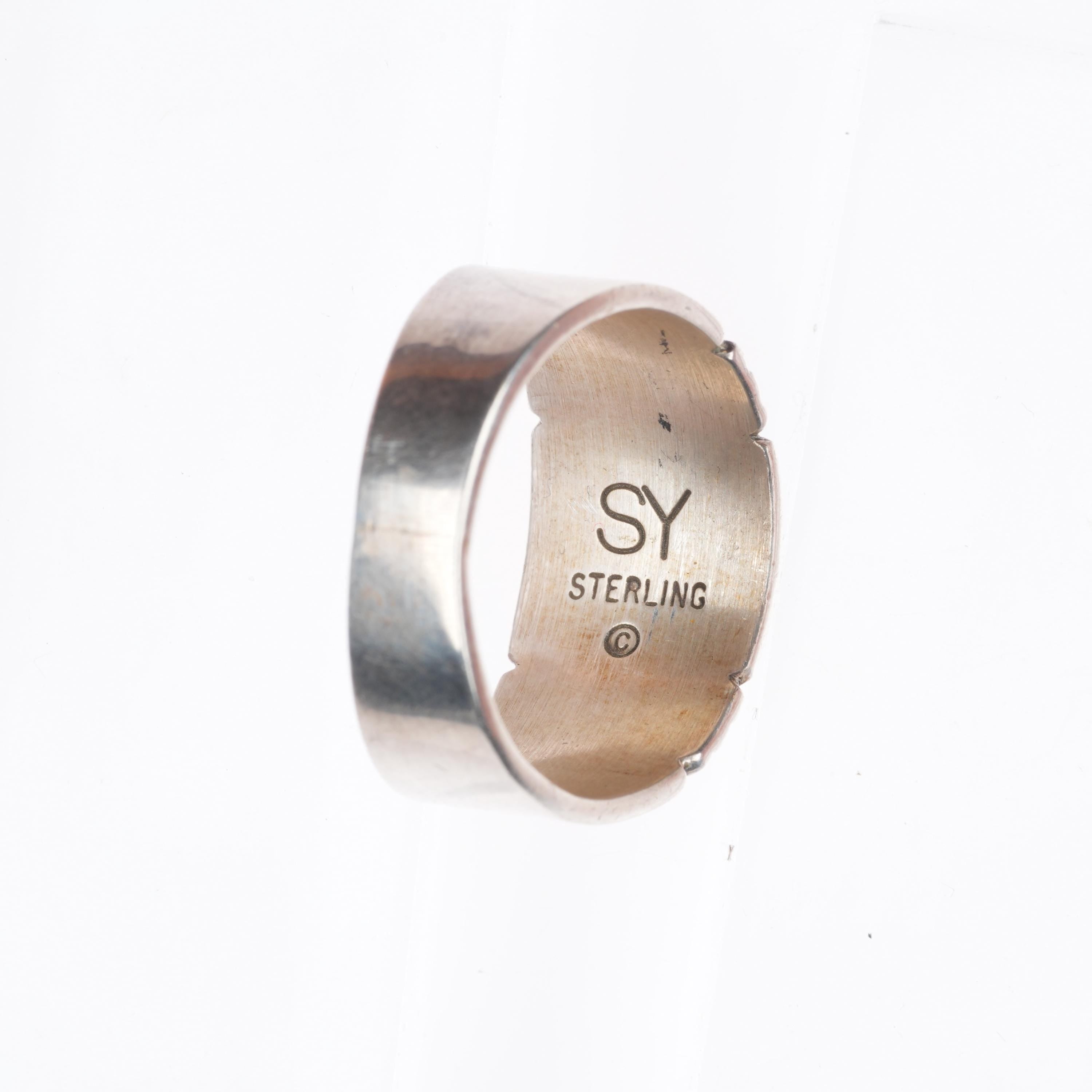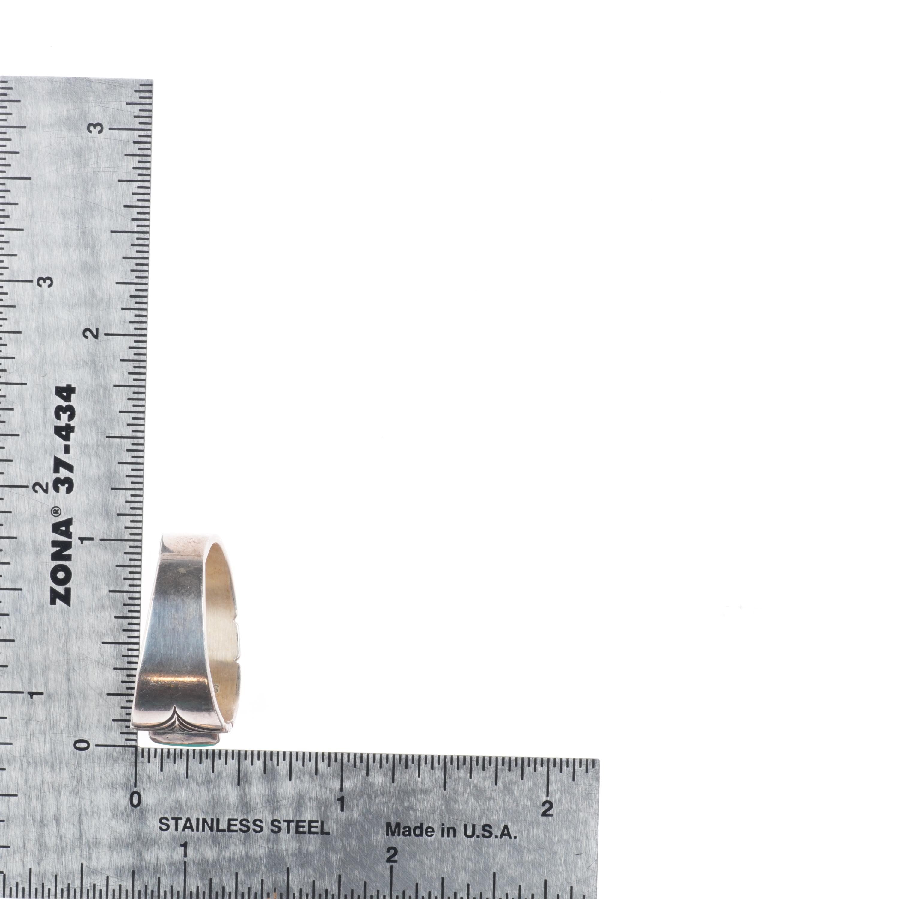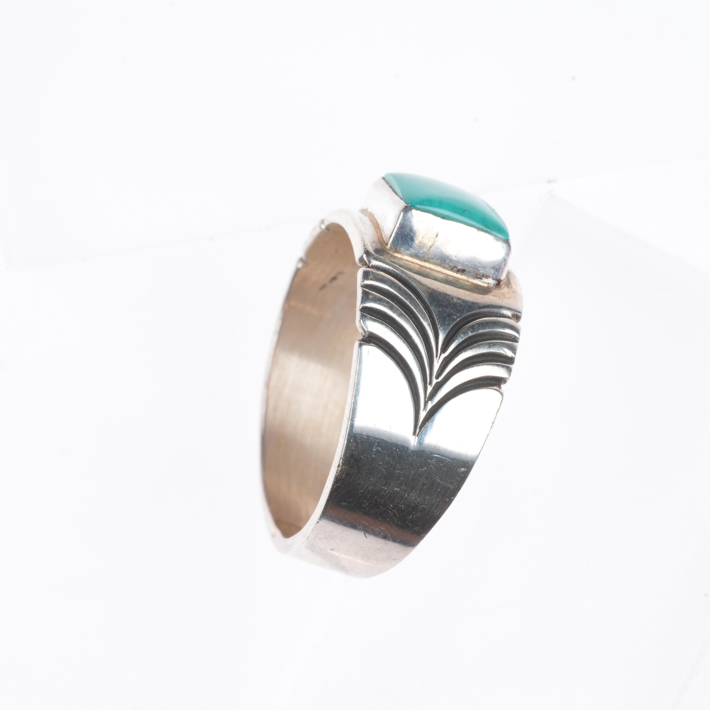 sz11 Steve Yellowhorse Navajo sterling silver turquoise chiseled band ring. Nice ring from the last quarter of the 20th century.
