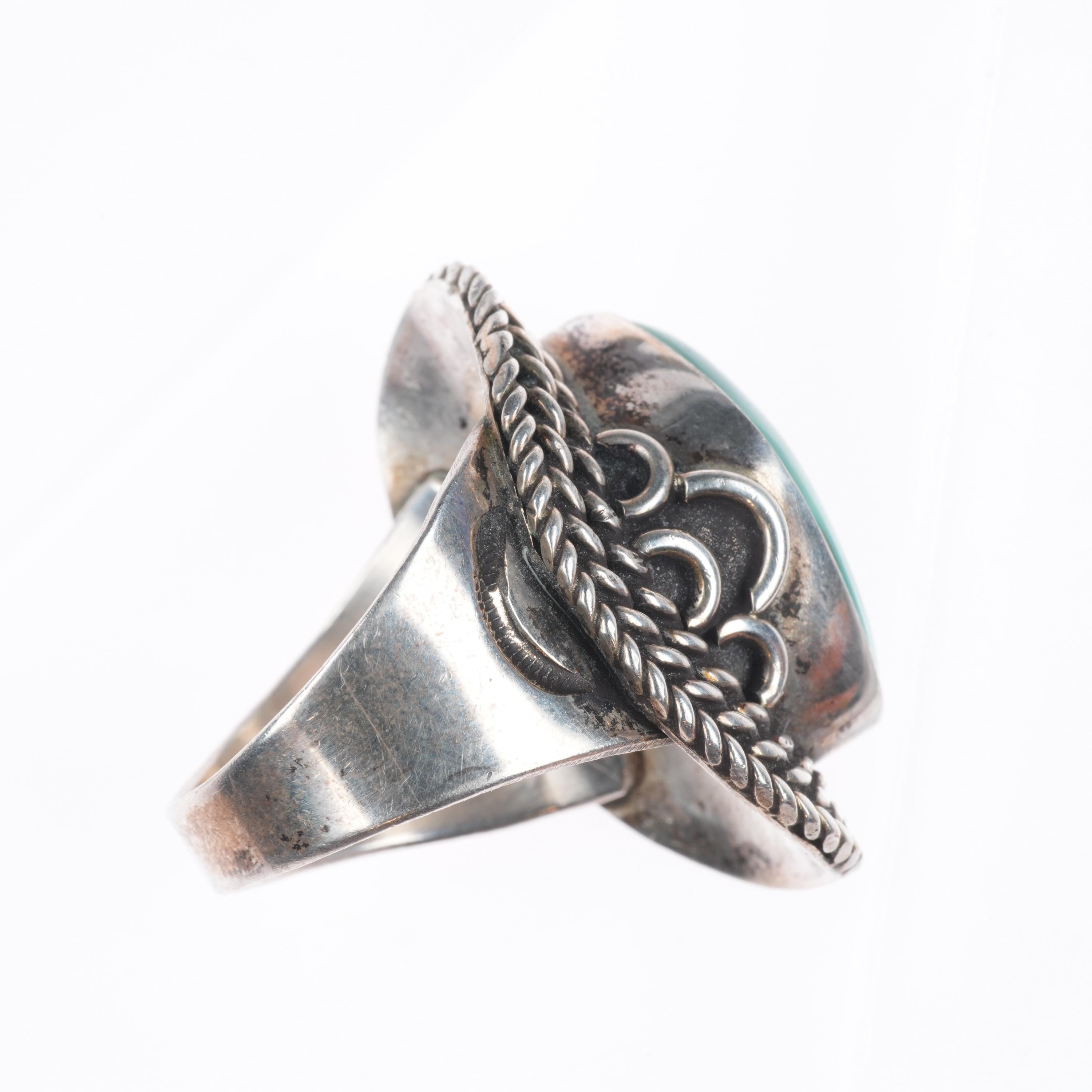 sz11 Vintage Navajo sterling silver Royston turquoise men‘s ring. Nice ring from the third quarter of the 20th century. Unmarked.