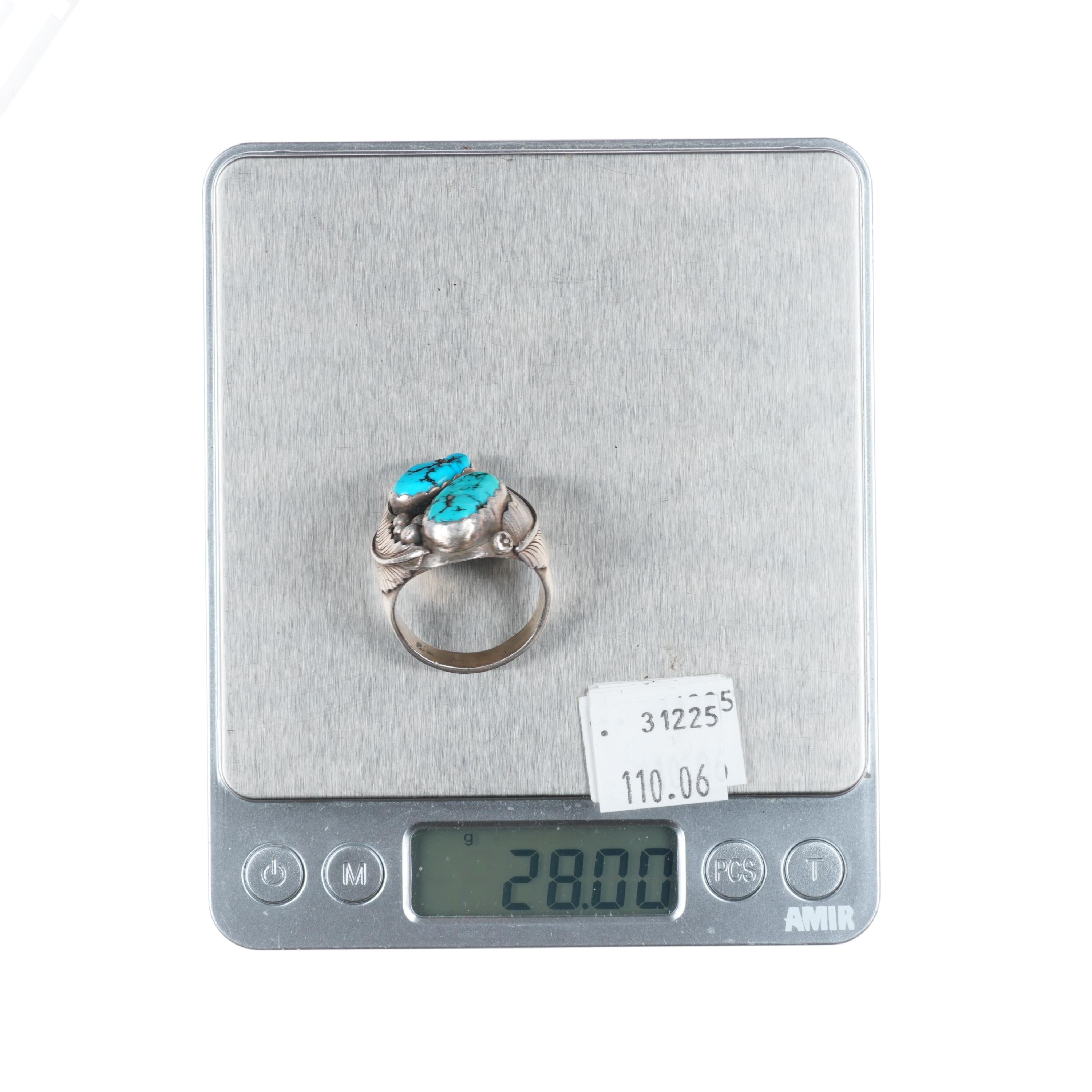 sz13 Heavy vintage Navajo sterling silver 2 stone Kingman turquoise ring