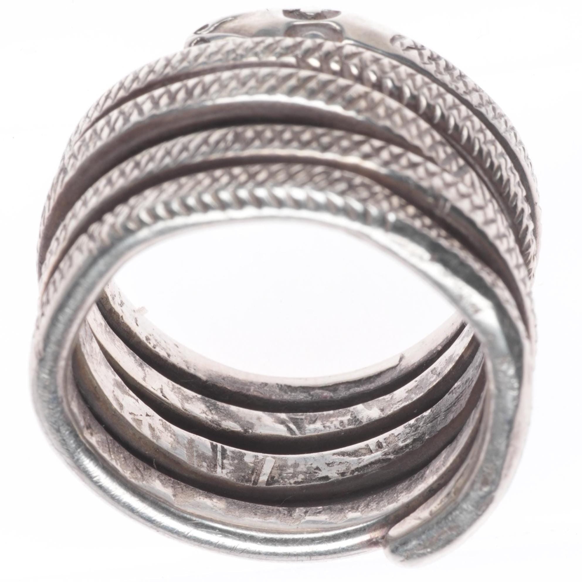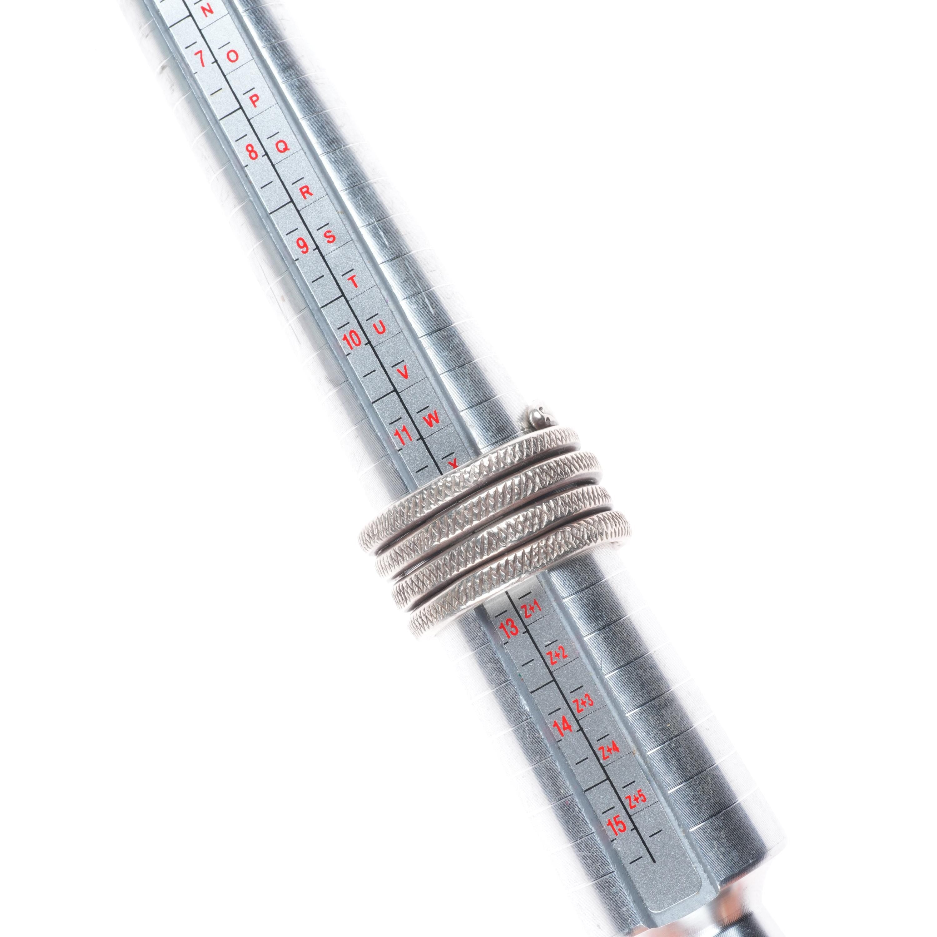 sz13 Vintage Navajo Ingot silver long rattlesnake band ring hand chiseled. Tested and guaranteed solid ingot/sterling silver. Nice ring that I believe to be from the first half of the 20th century. It is ingot with signs of annealing/toolmarks in the interior. The collection it came from was mostly older items from the first half of the 20th century. No identifying marks.