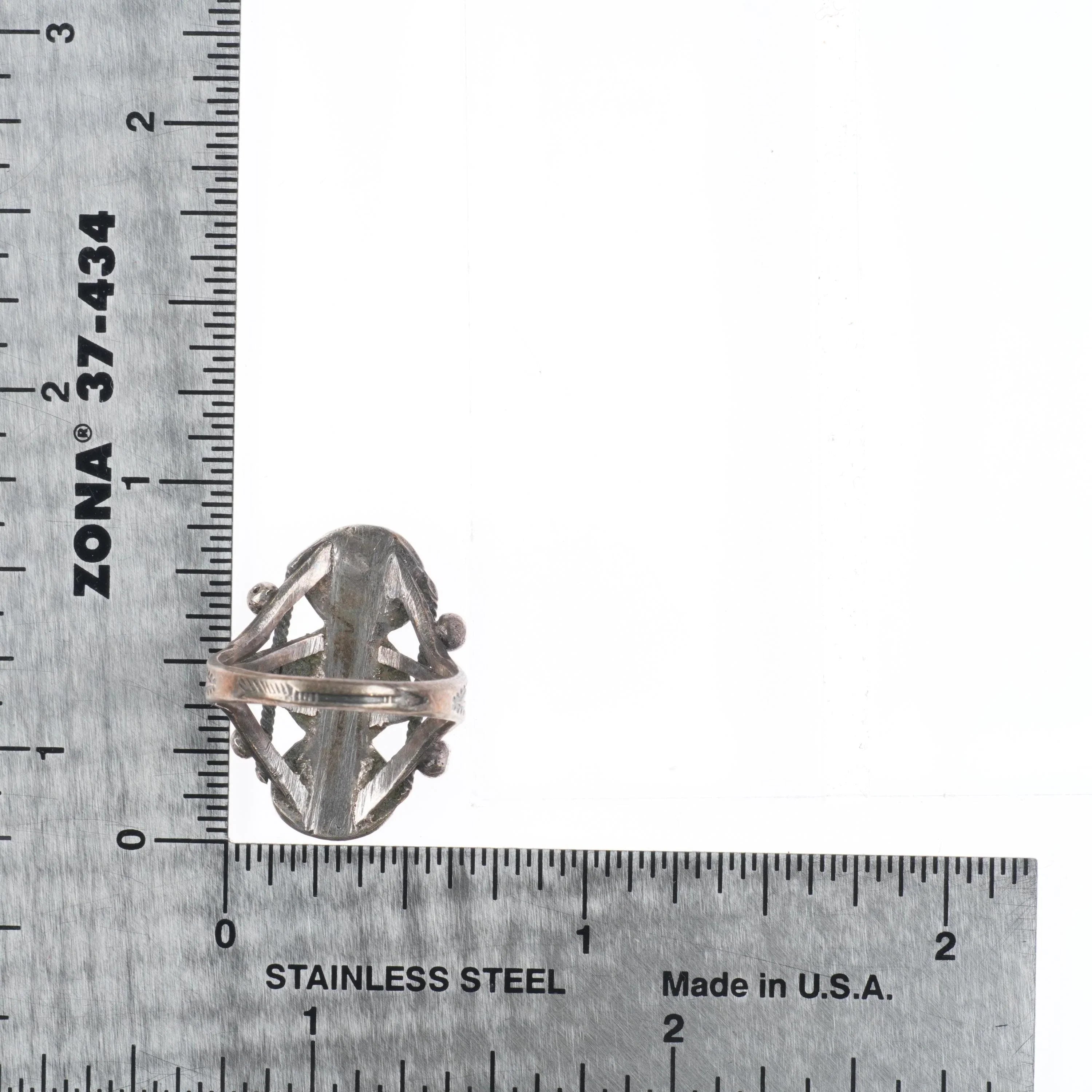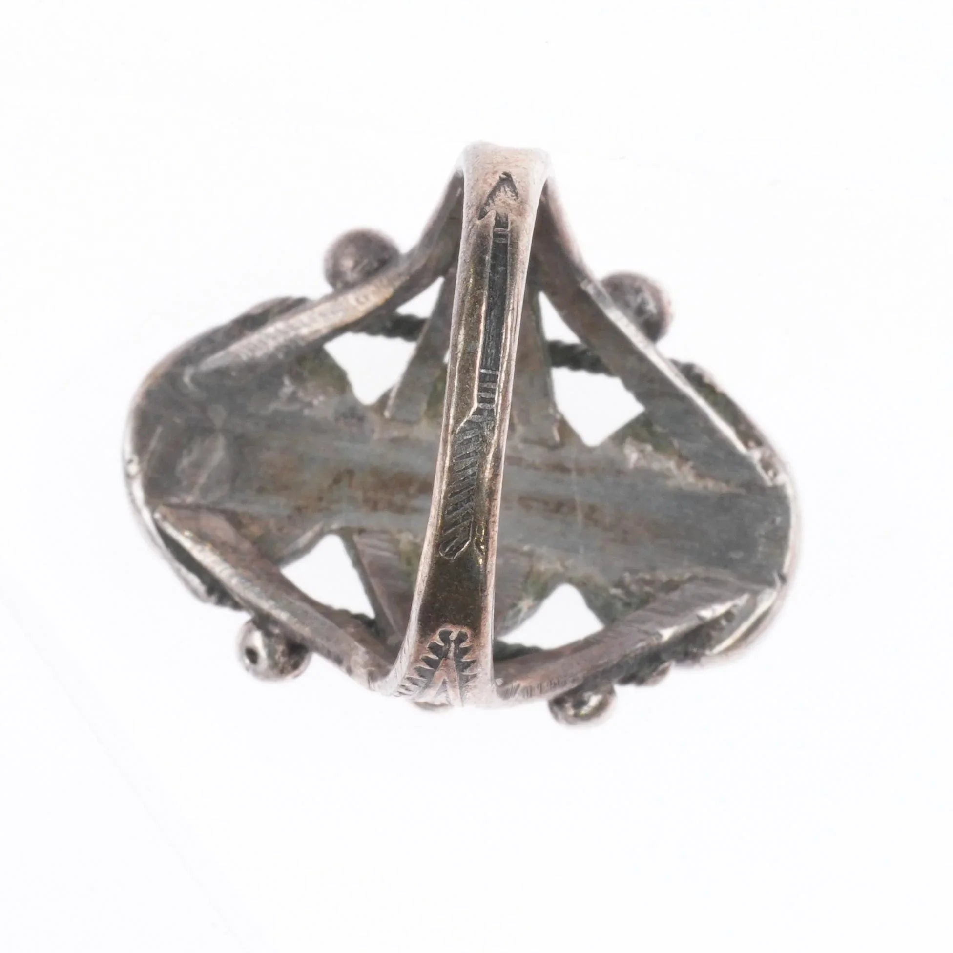 sz5 20's-30's Vintage Navajo sterling silver stoplight turquoise row ring