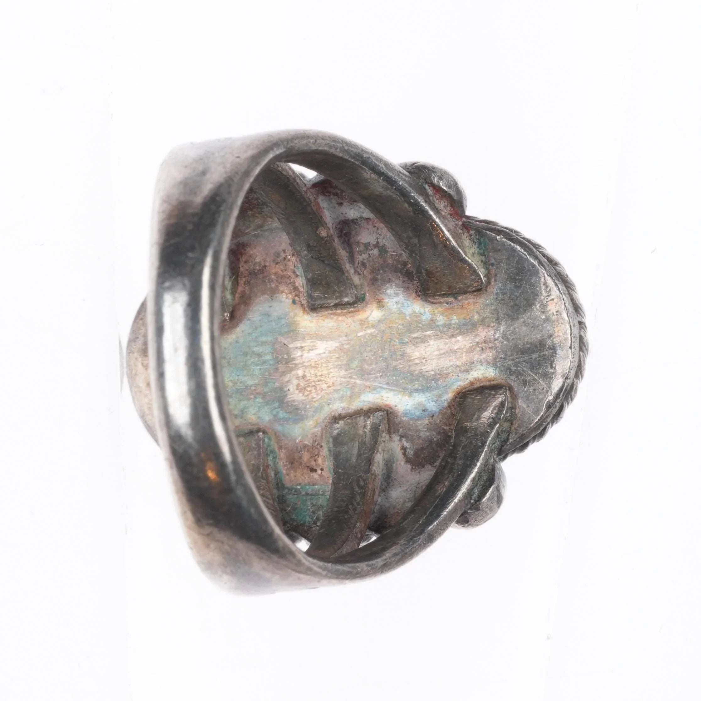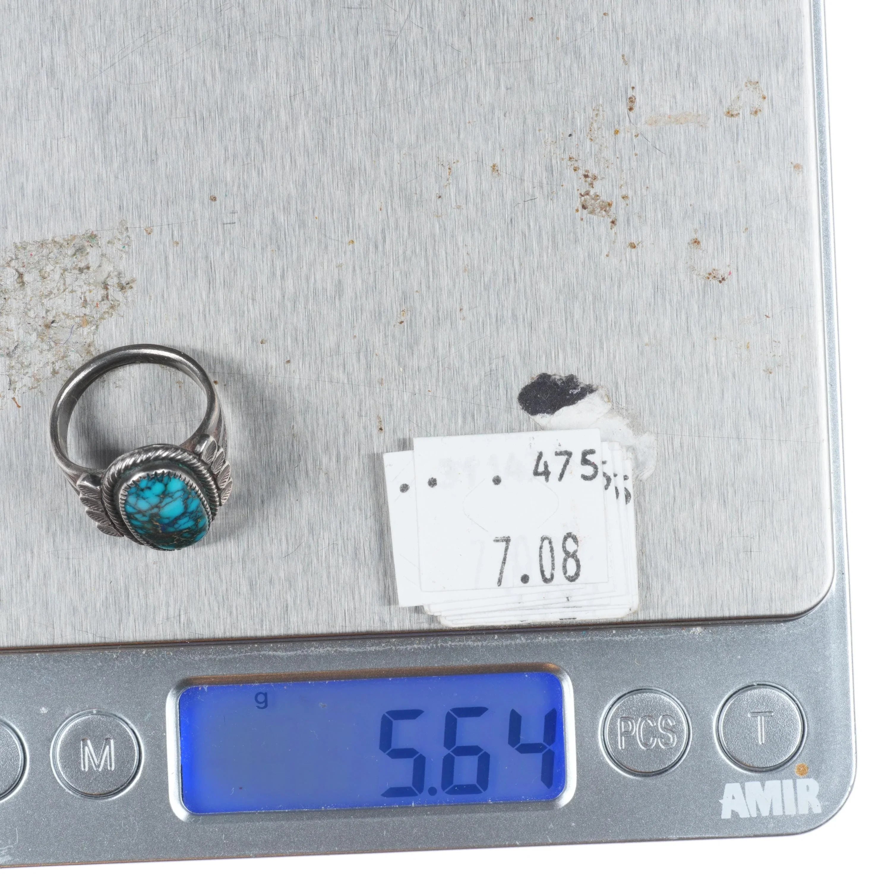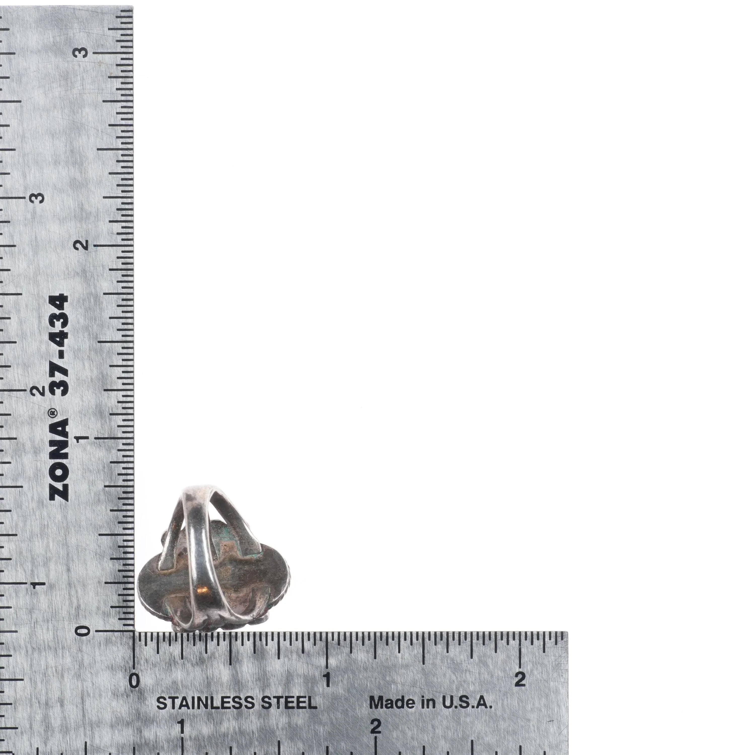 sz5 30's-40's Navajo Lone Mountain turquoise sterling silver ring stamped sides