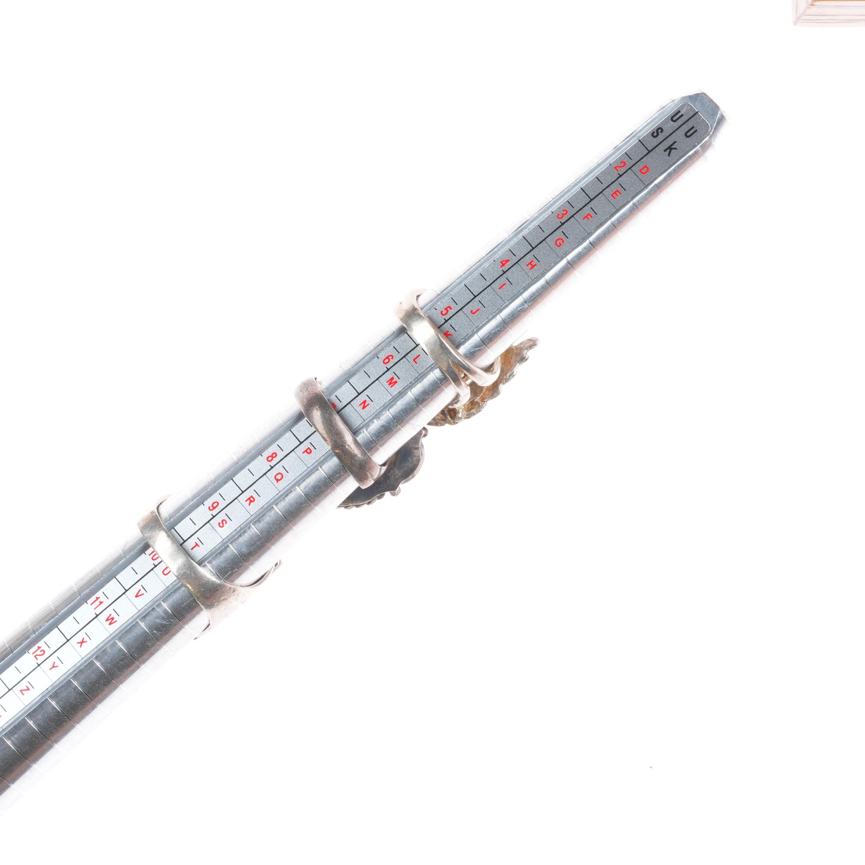 Selling the exact rings shown with weight and measurements in pictures, shown on sizers. Age appropriate wear. Some marked, some not marked. We are making lots of these lots with my wife photographing and me listing. We are listing in lots due to time limitations, so we are not heavily scrutinizing each ring. Most are going to be Native American made, but there will likely be some southwestern style rings mixed in each lot. Or one two totally unrelated but still sterling. My wife who is making the lots doesn‘t know the difference as she‘s Vietnamese. Please look at the pictures and make up your own mind for condition, etc. There may be dents, cracked stones, etc. I tried to weed out any junk before I gave them to her, but we are in a hurry. Time is the number one consideration when making these lots so there will be some surprises, hopefully more good than bad :)