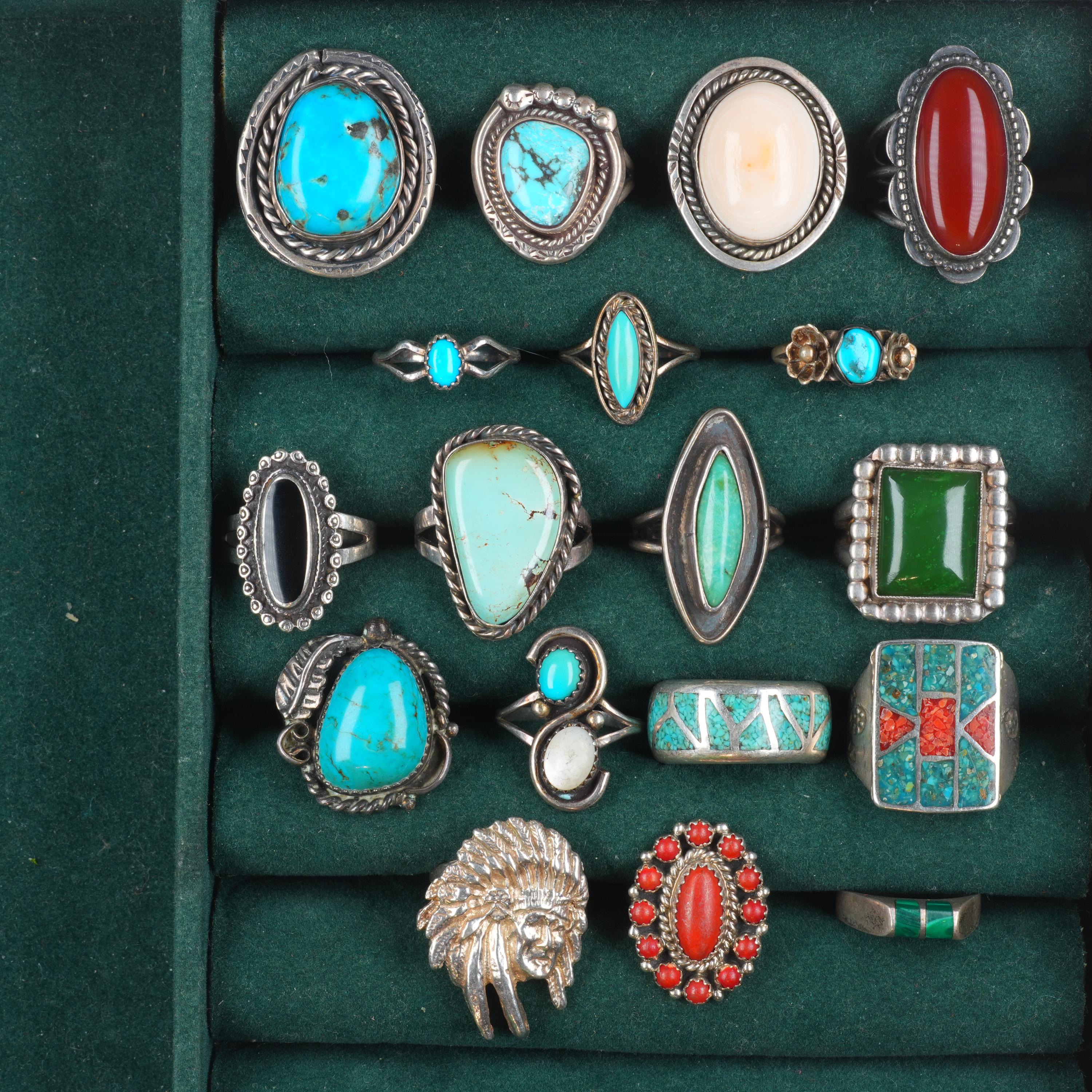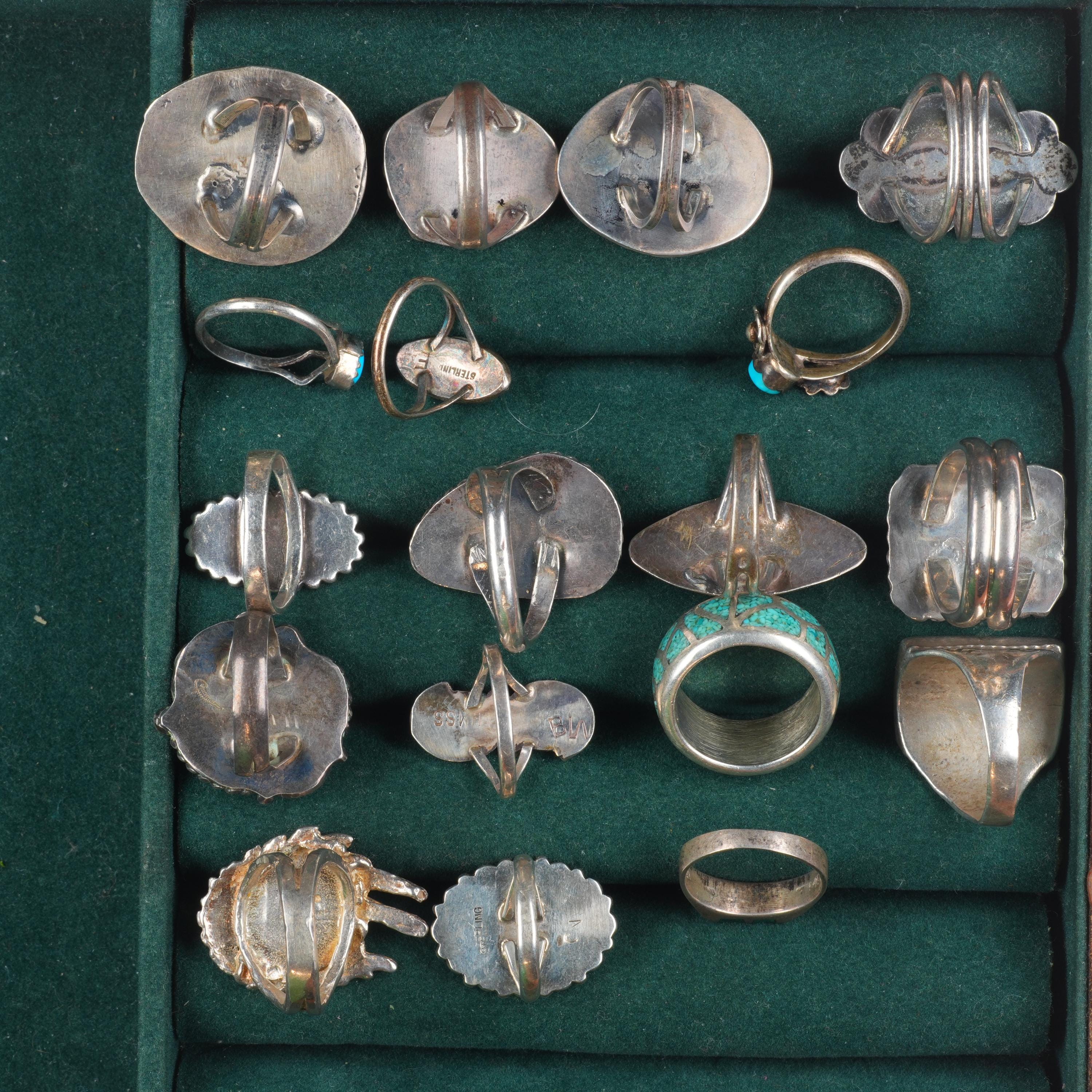 sz5-9 vintage Navajo/Zuni/southwestern style sterling silver turquoise rings lot. Nice ring lot from the last half of the 20th century.