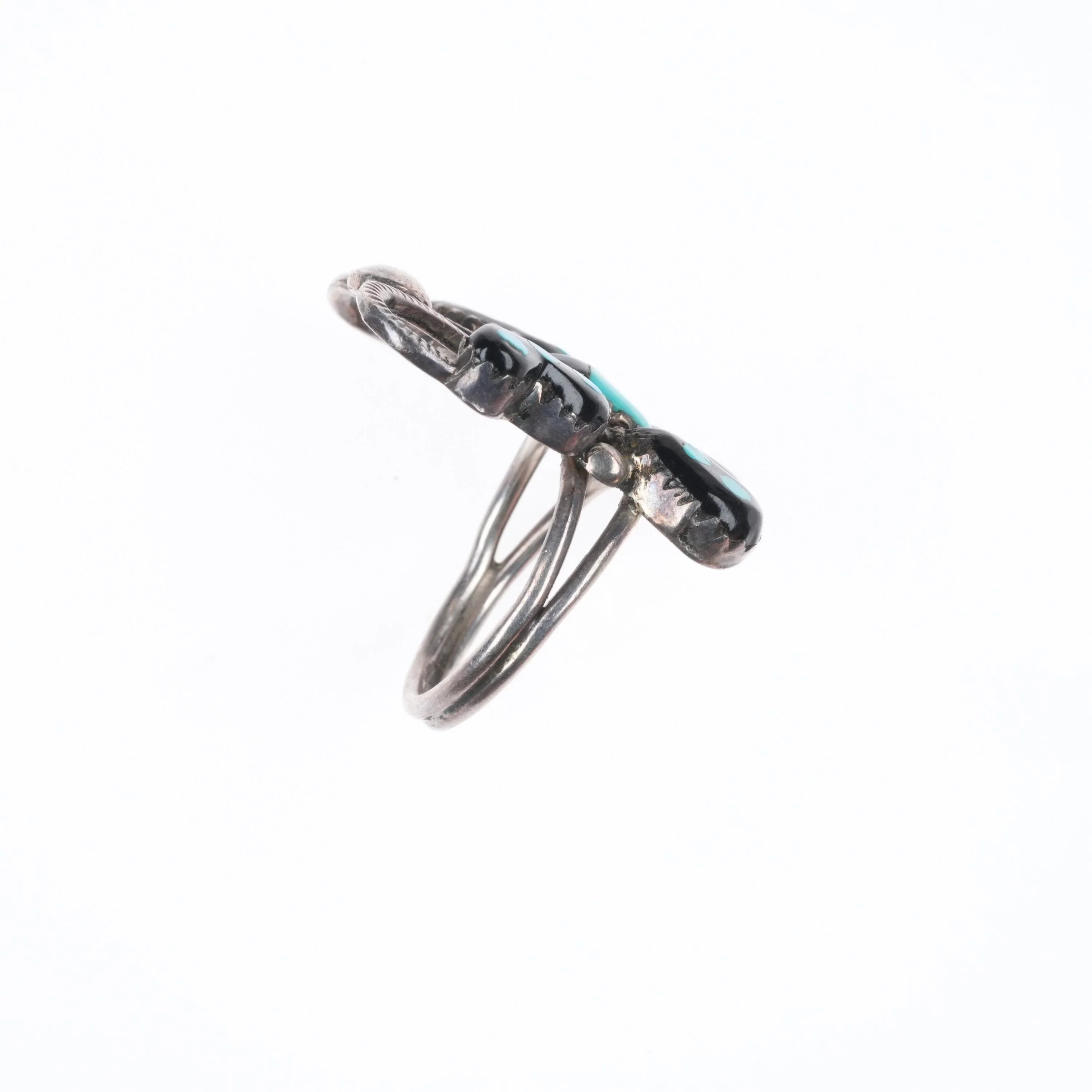 sz5 Howard/Catherine Leekela Zuni sterling silver jet/turquoise butterfly ring. Tested and guaranteed solid sterling silver. Nice ring from the mid 20th century.