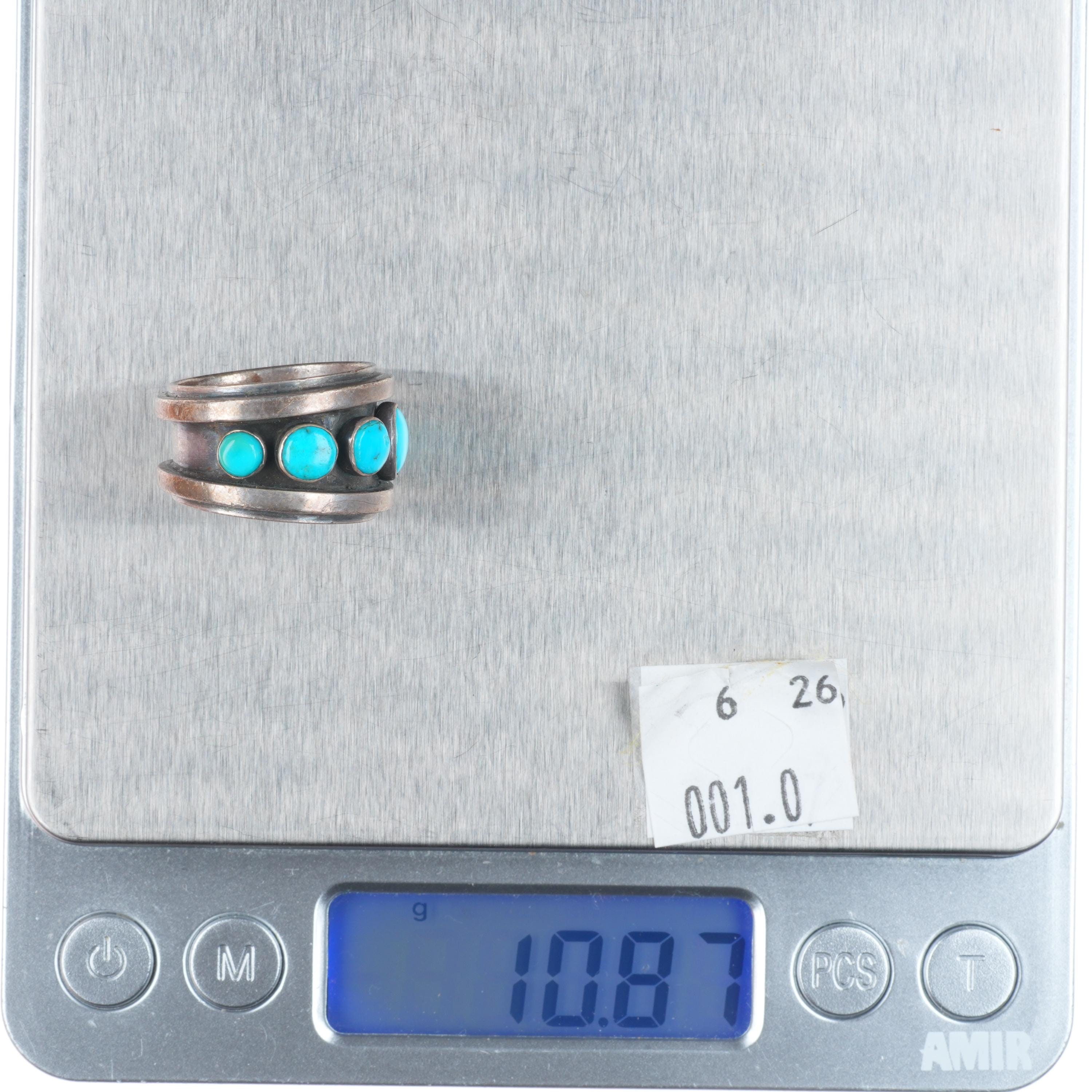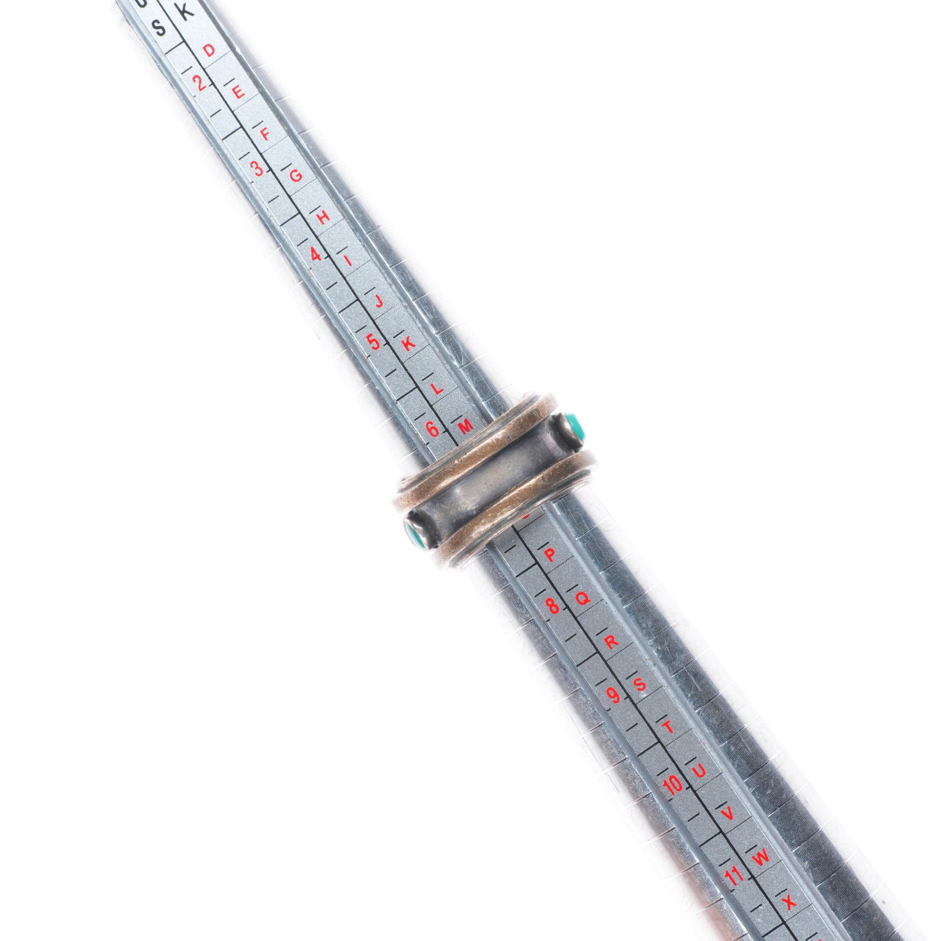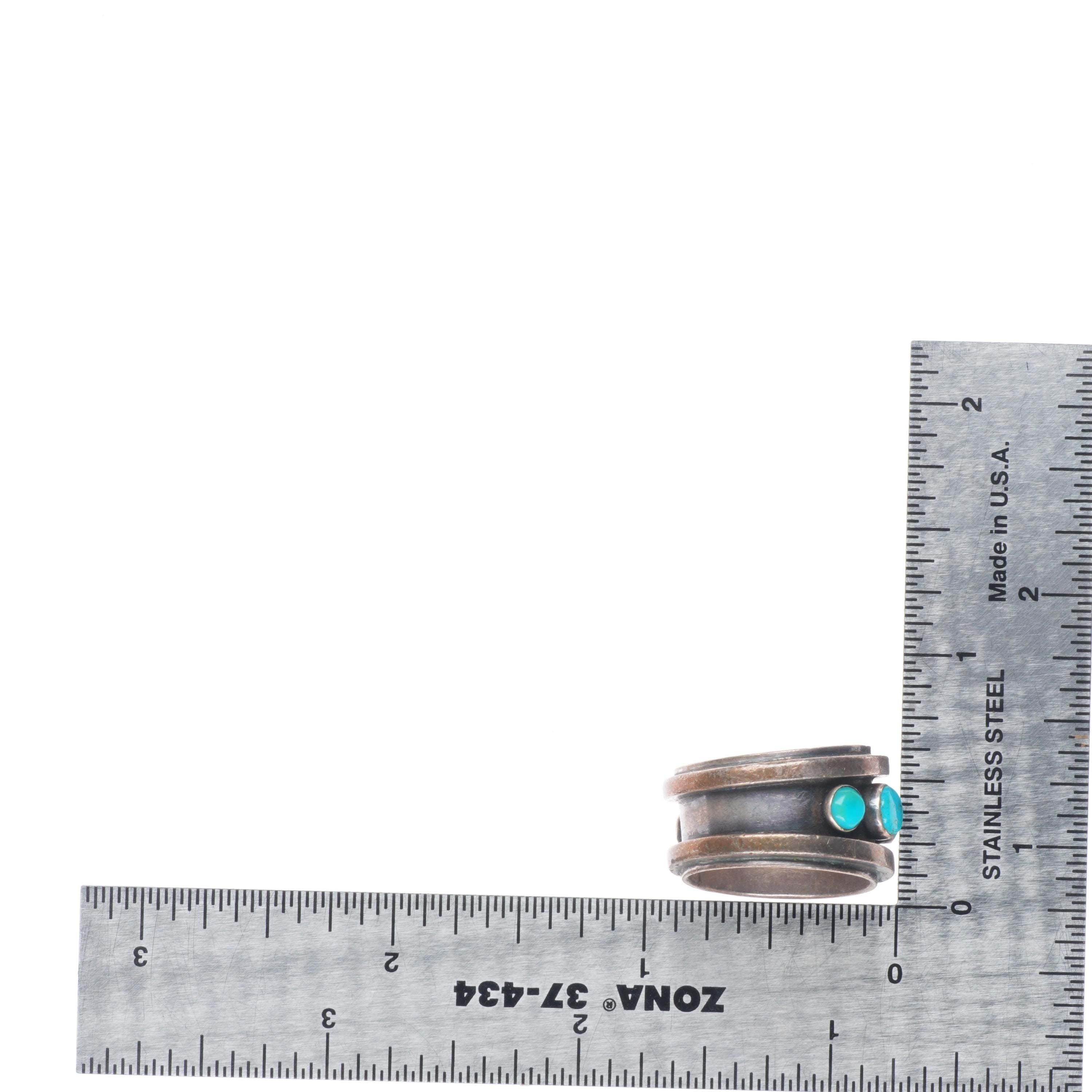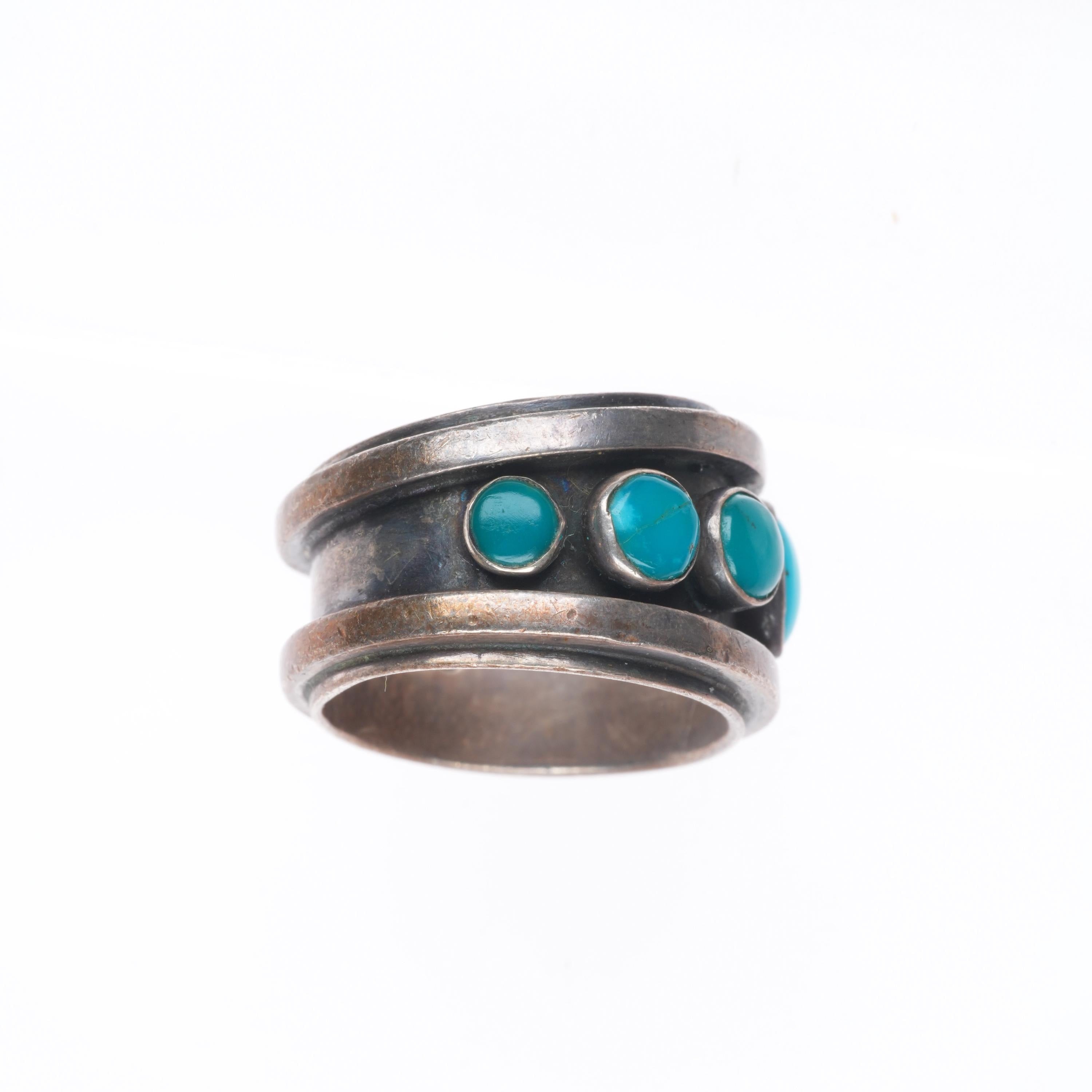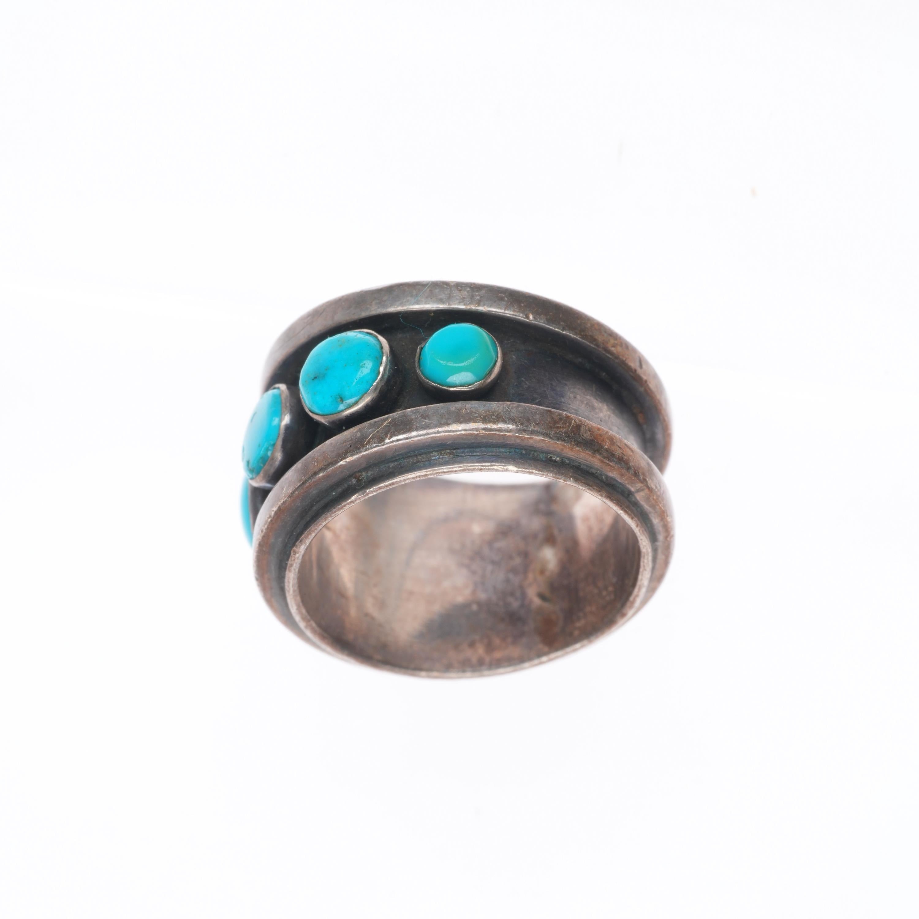 sz7 Noah Pfeffer southwestern sterling silver turquoise row ring. Tested and guaranteed solid sterling silver, circa last quarter of the 20th century. Some expected wear, weight and measurements in pictures.