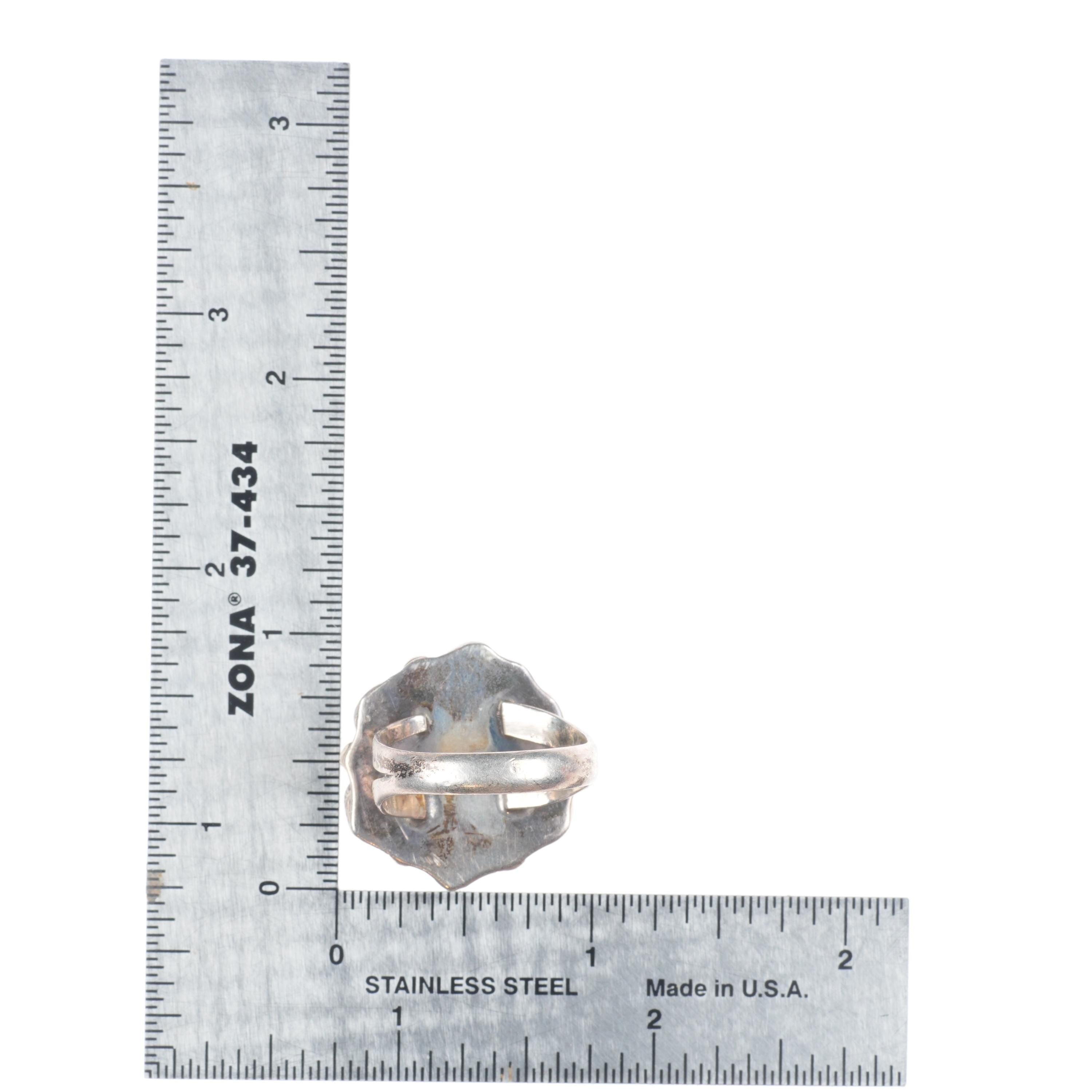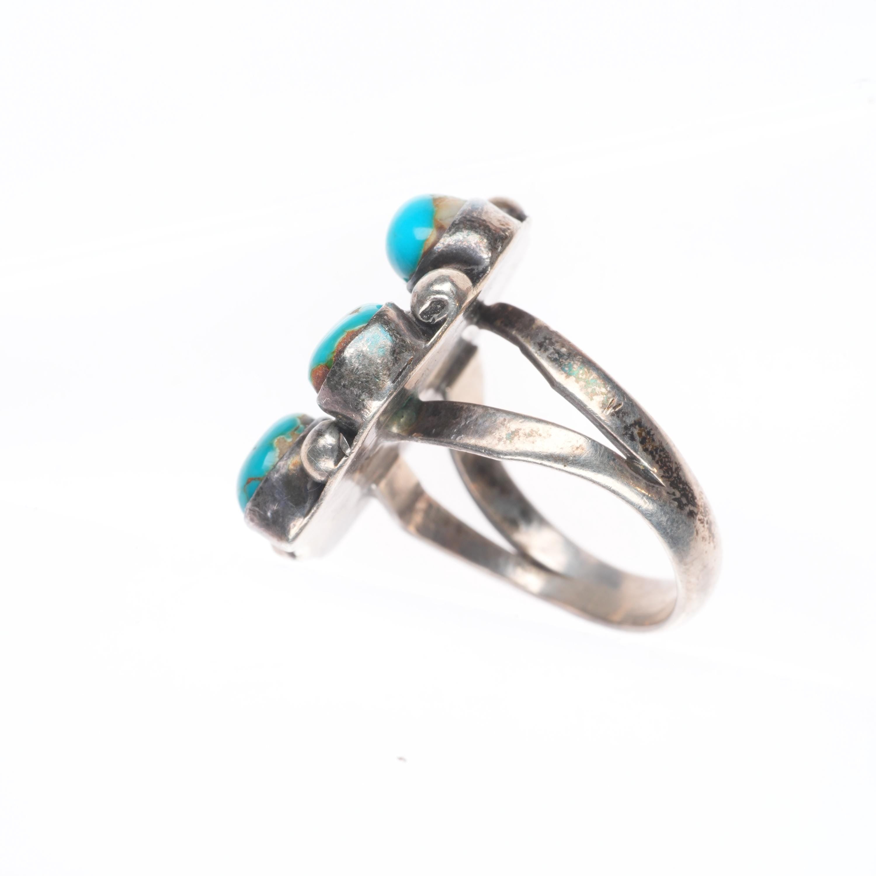 sz8.5 vintage Navajo Blue Gem turquoise cluster sterling silver ring. Tested and guaranteed solid sterling silver, circa third quarter of the 20th century. Some expected wear, weight and measurements in pictures.