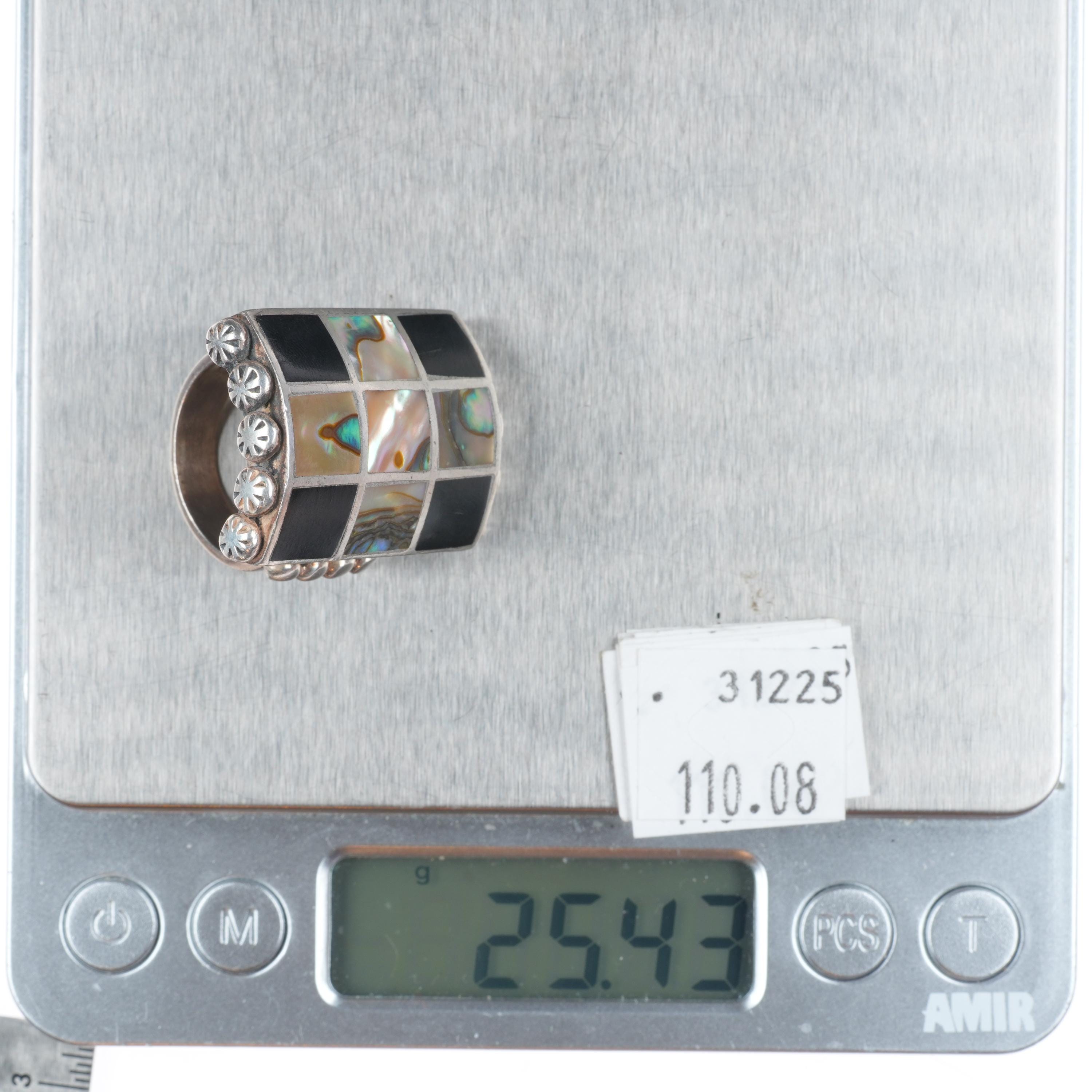 sz8.75 Large vintage Zuni sterling silver shell/jet channel inlay ring