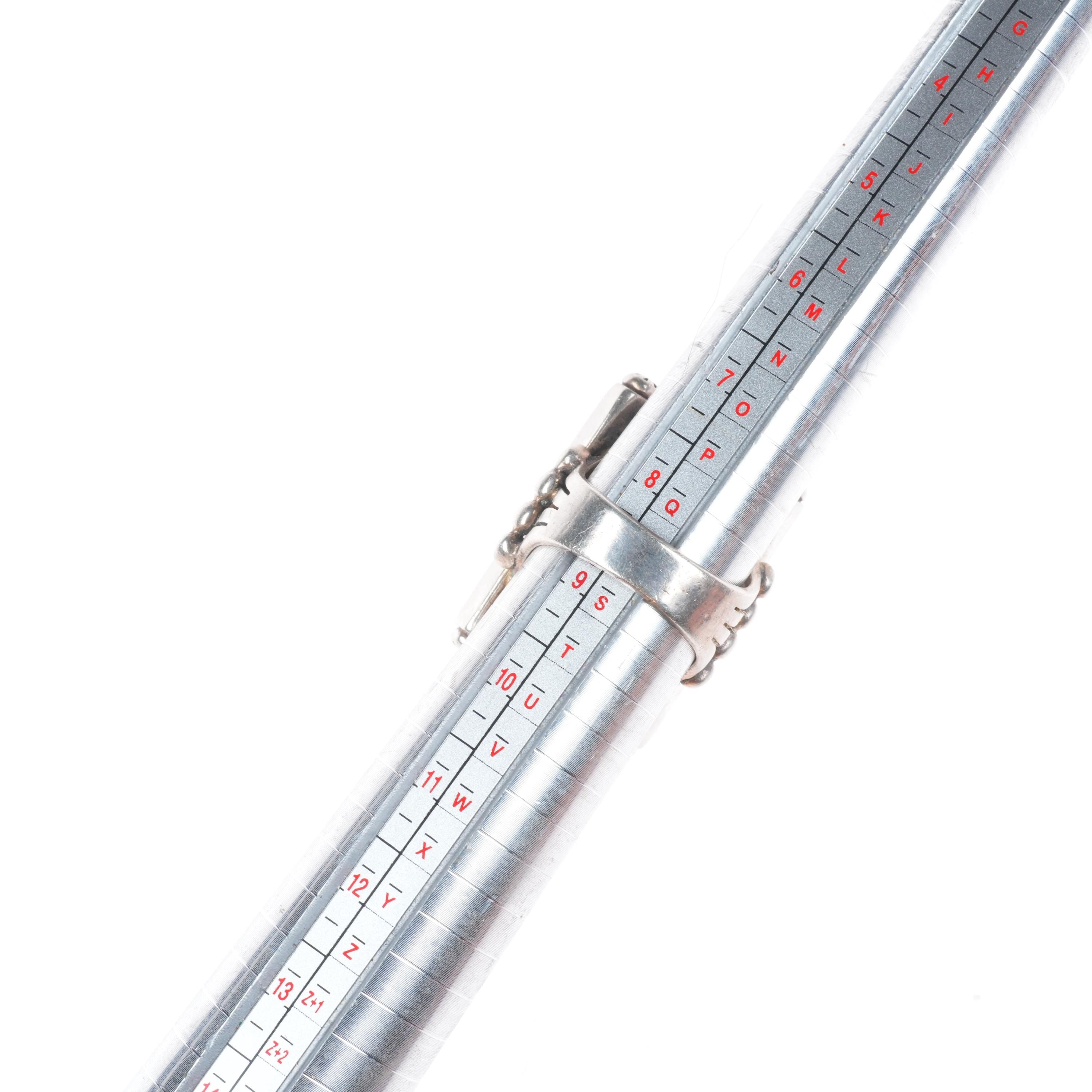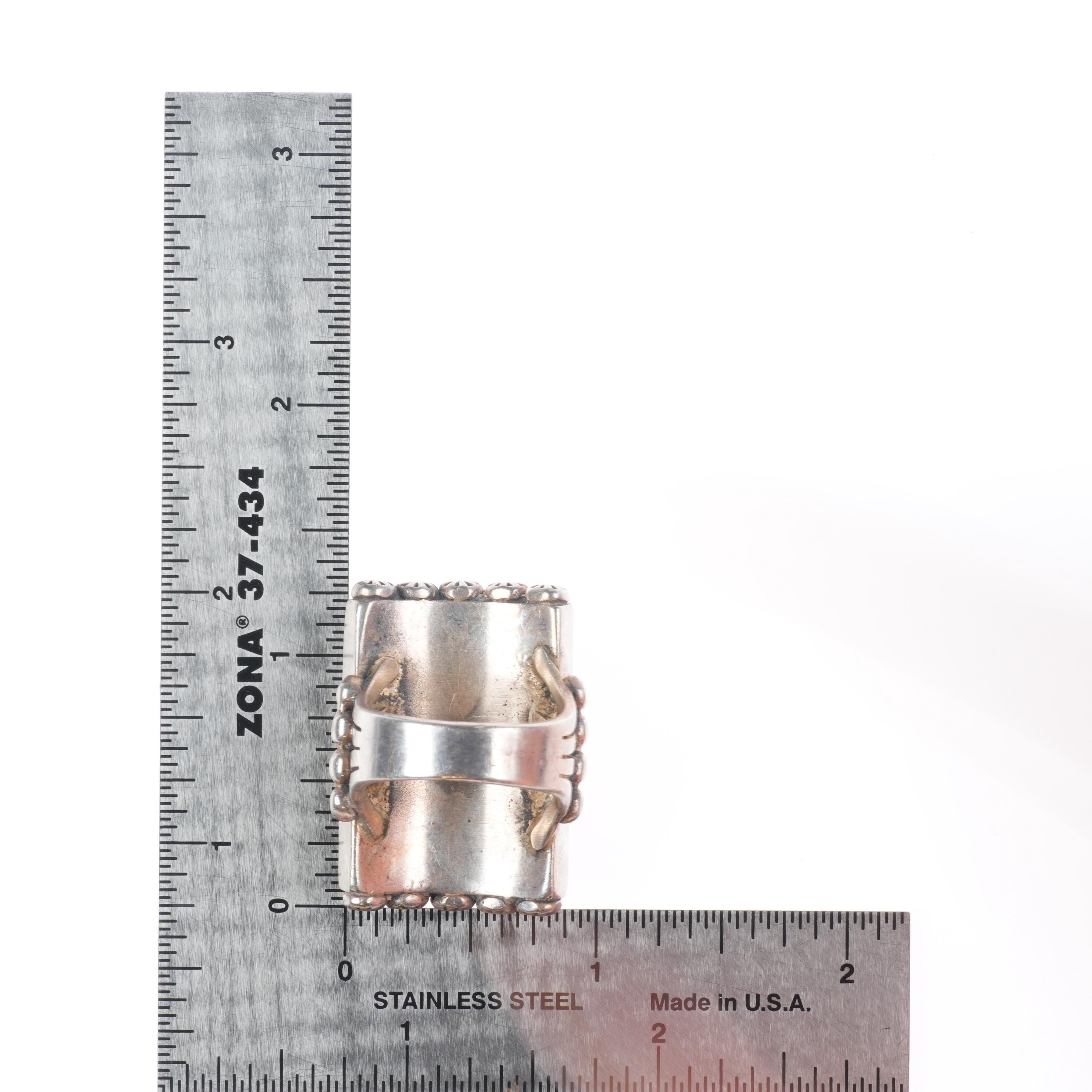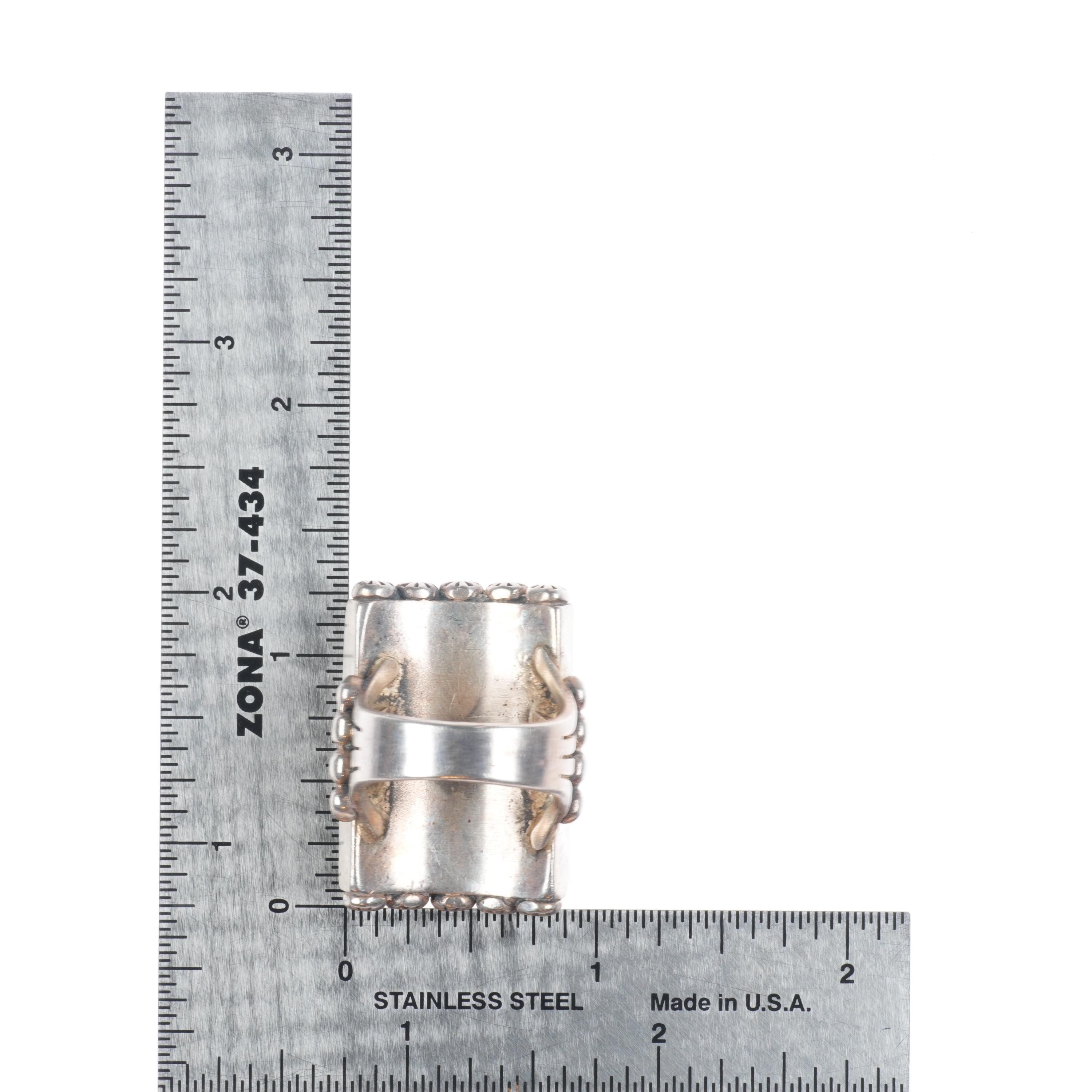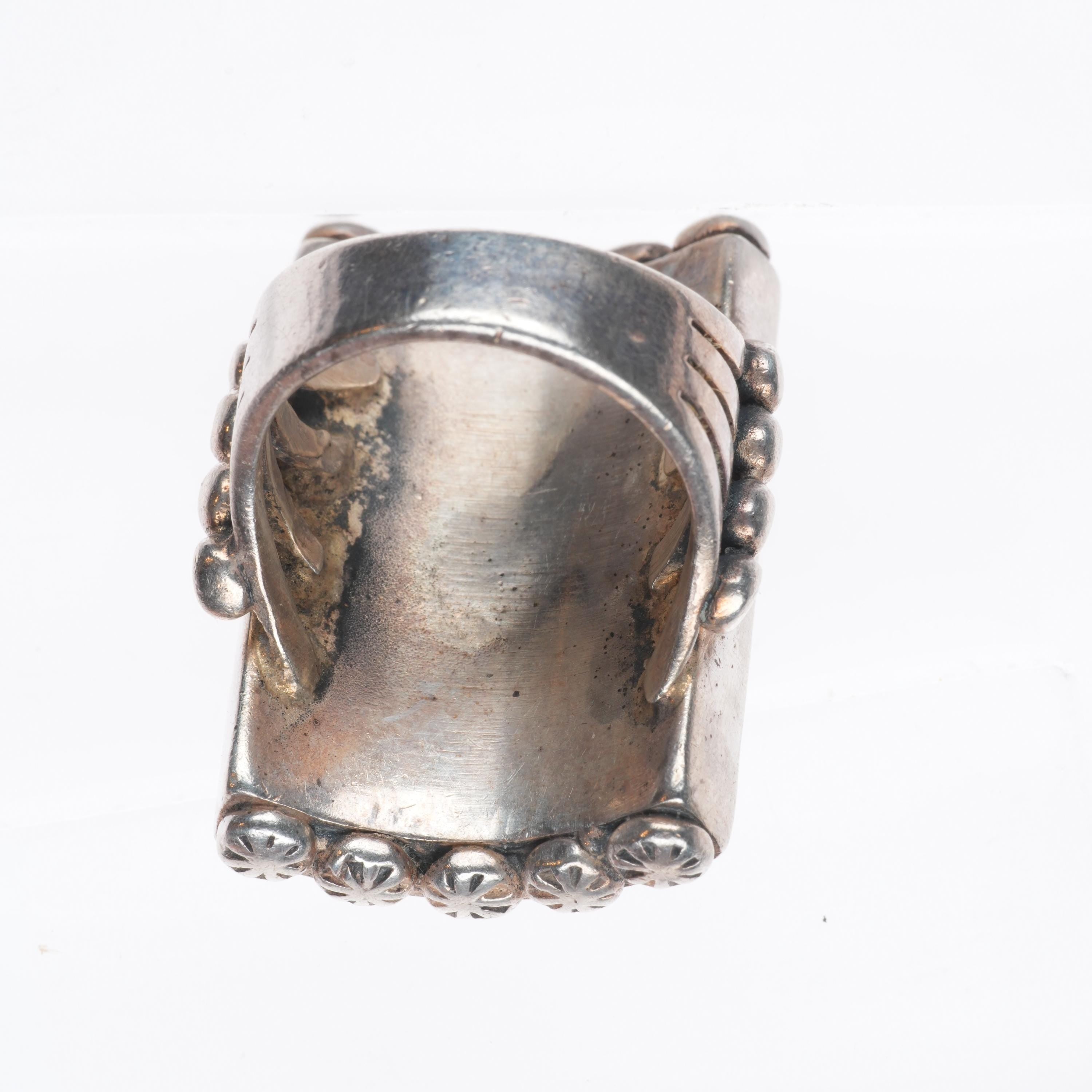 sz8.75 Large vintage Zuni sterling silver shell/jet channel inlay ring. Tested and guaranteed solid sterling silver. Nice ring from the third quarter of the 20th century. Some expected wear, weight and measurements in pictures, unmarked.
