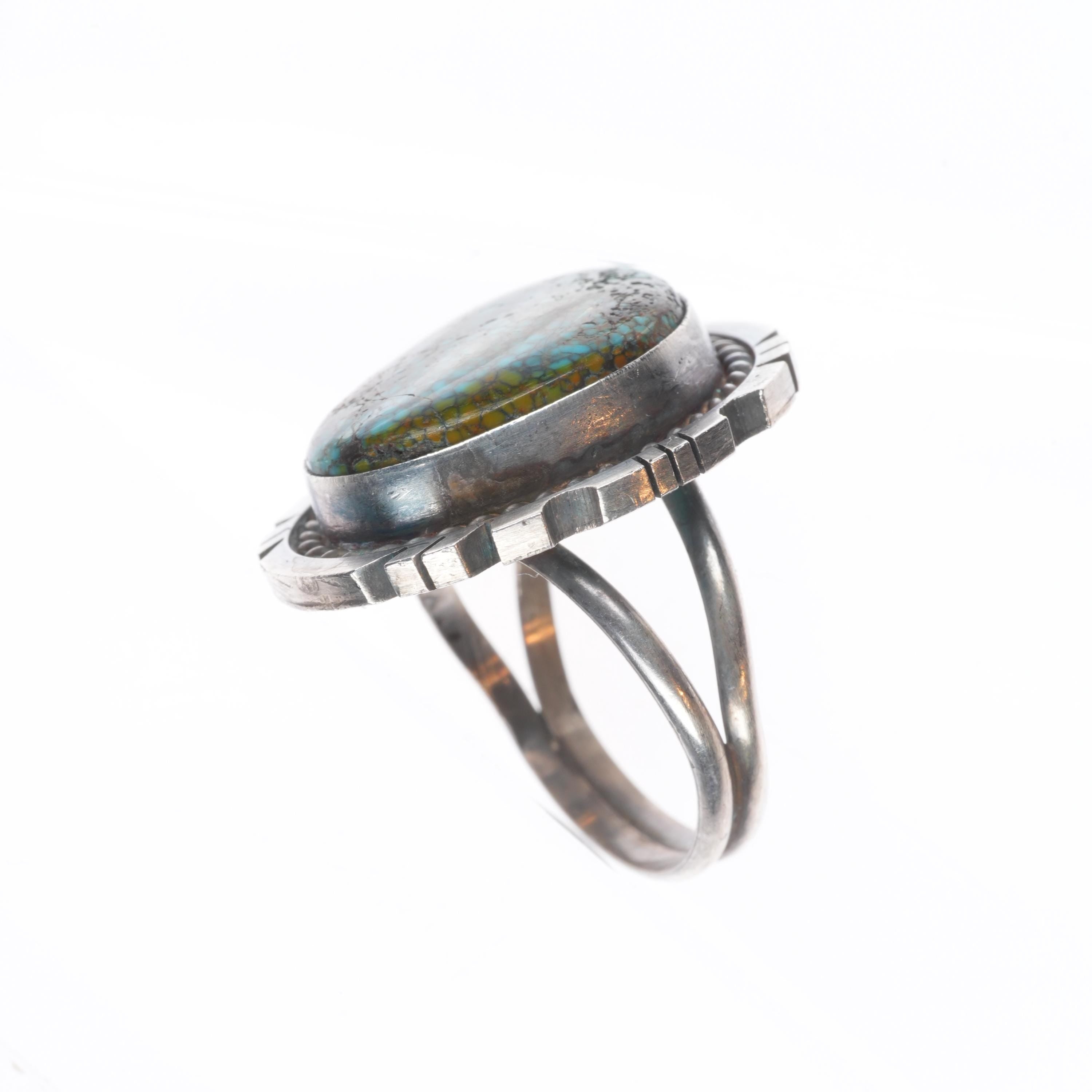 sz8.75 Vintage Navajo sterling silver spiderweb turquoise ring. Tested and guaranteed solid sterling silver. Nice ring from the fourth quarter of the 20th century. Some expected wear, weight and measurements in pictures. Apparently unmarked.