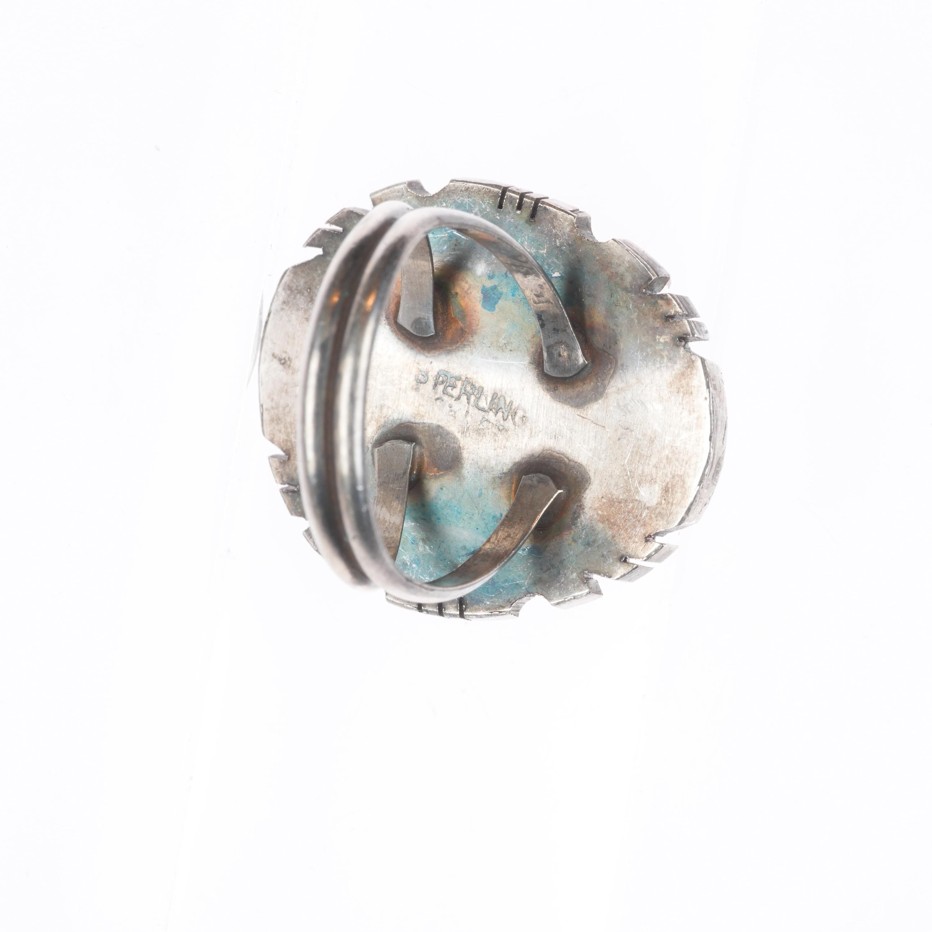 sz8.75 Vintage Navajo sterling silver spiderweb turquoise ring