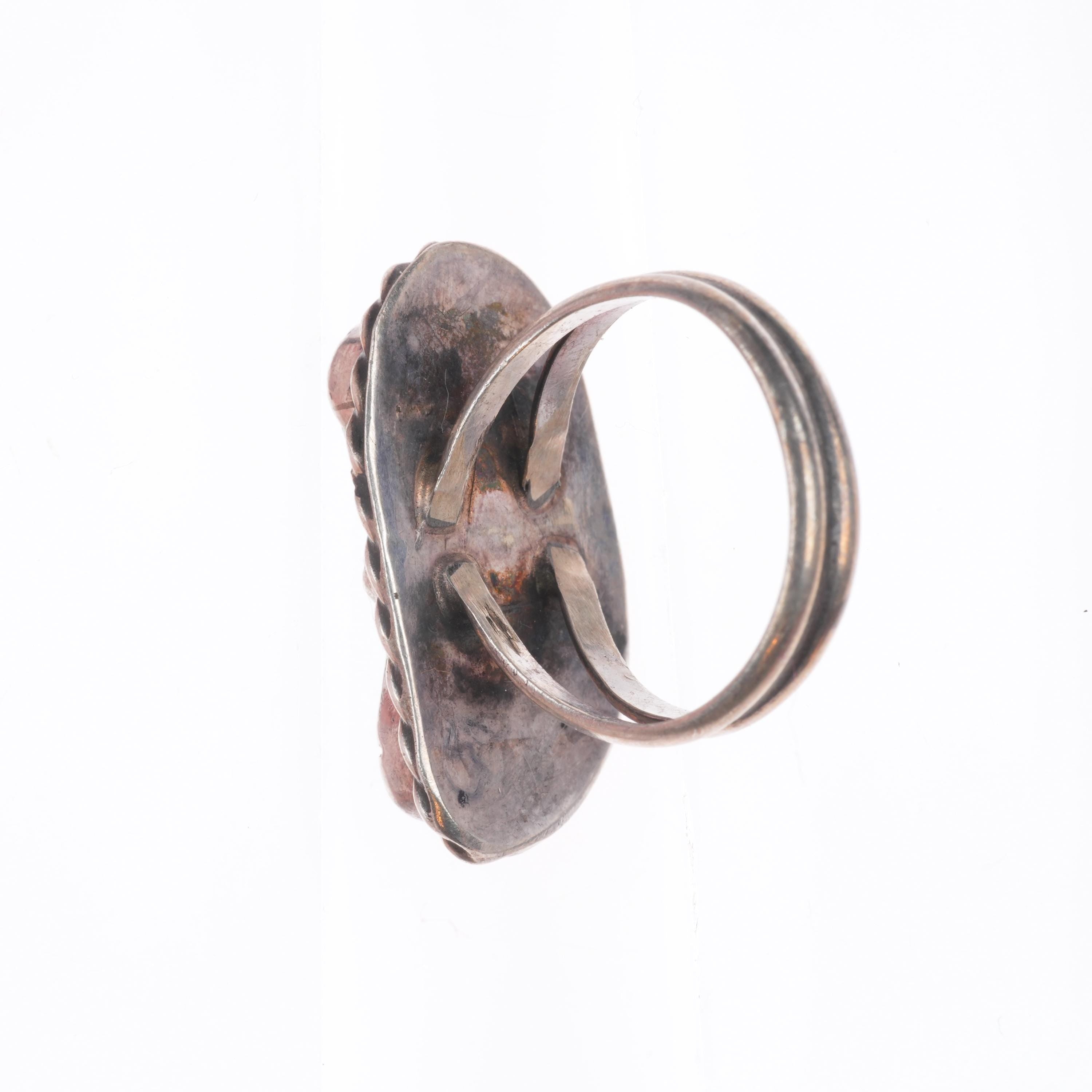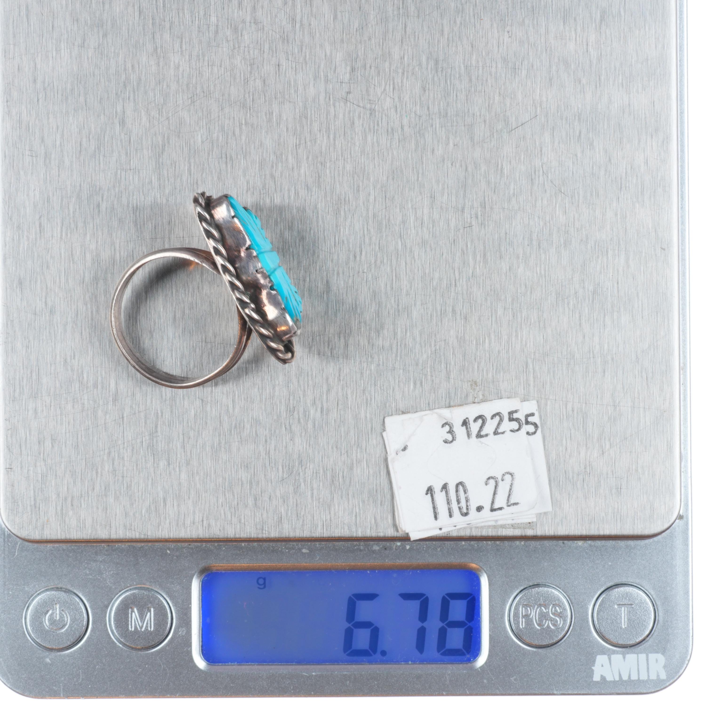 sz8 Vintage Zuni sterling silver carved turquoise butterfly ring. Nice ring from the third quarter of the 20th century.