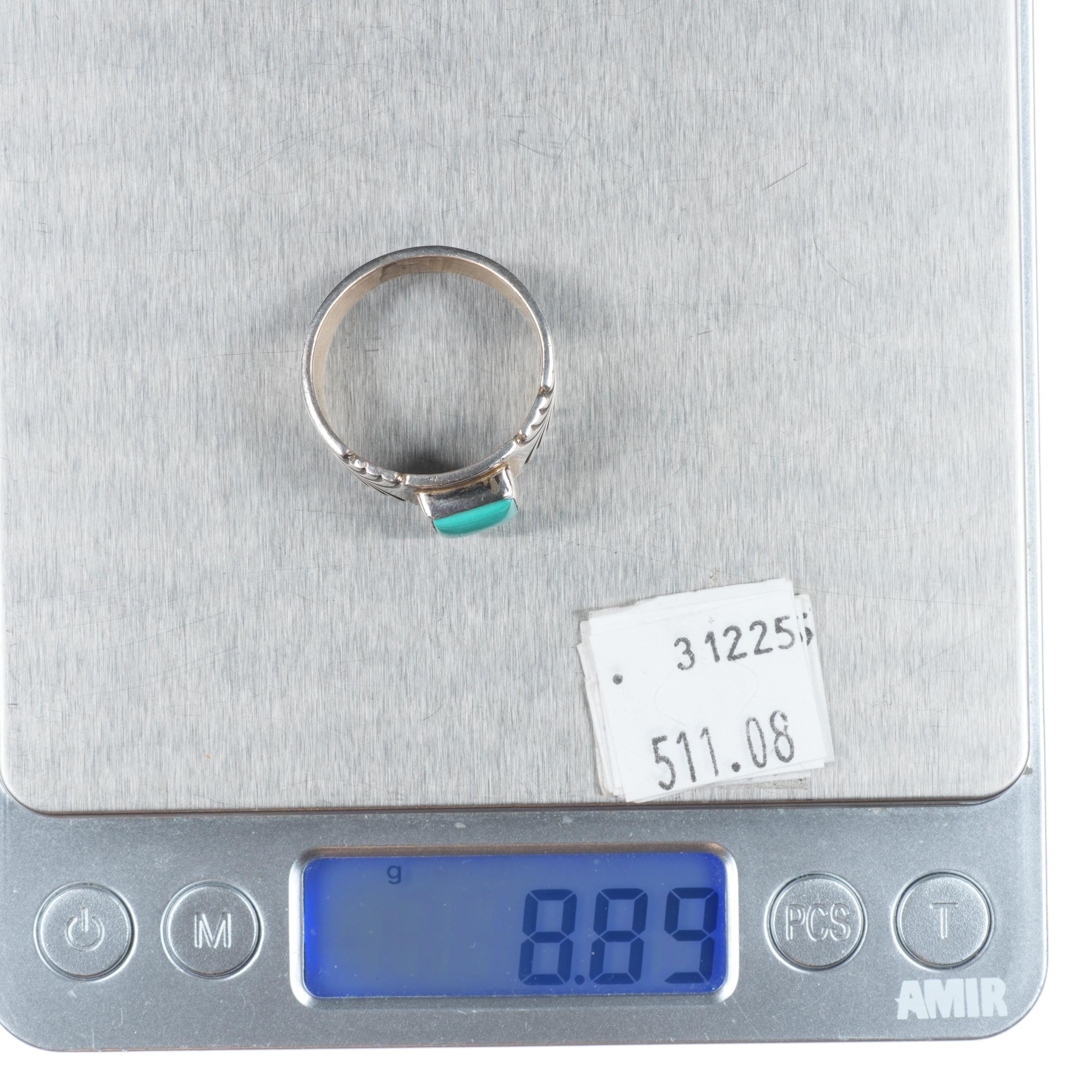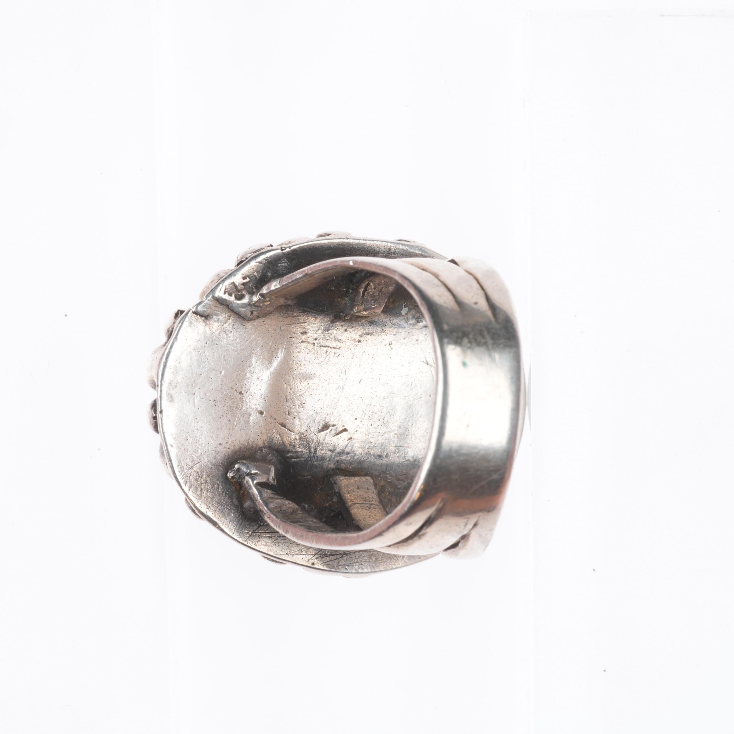 sz9 20‘s-30‘s Vintage Zuni ingot silver turquoise cluster ring. Nice ring from the early second quarter of the 20th century. Stones secure with some fractures, overall wear.
