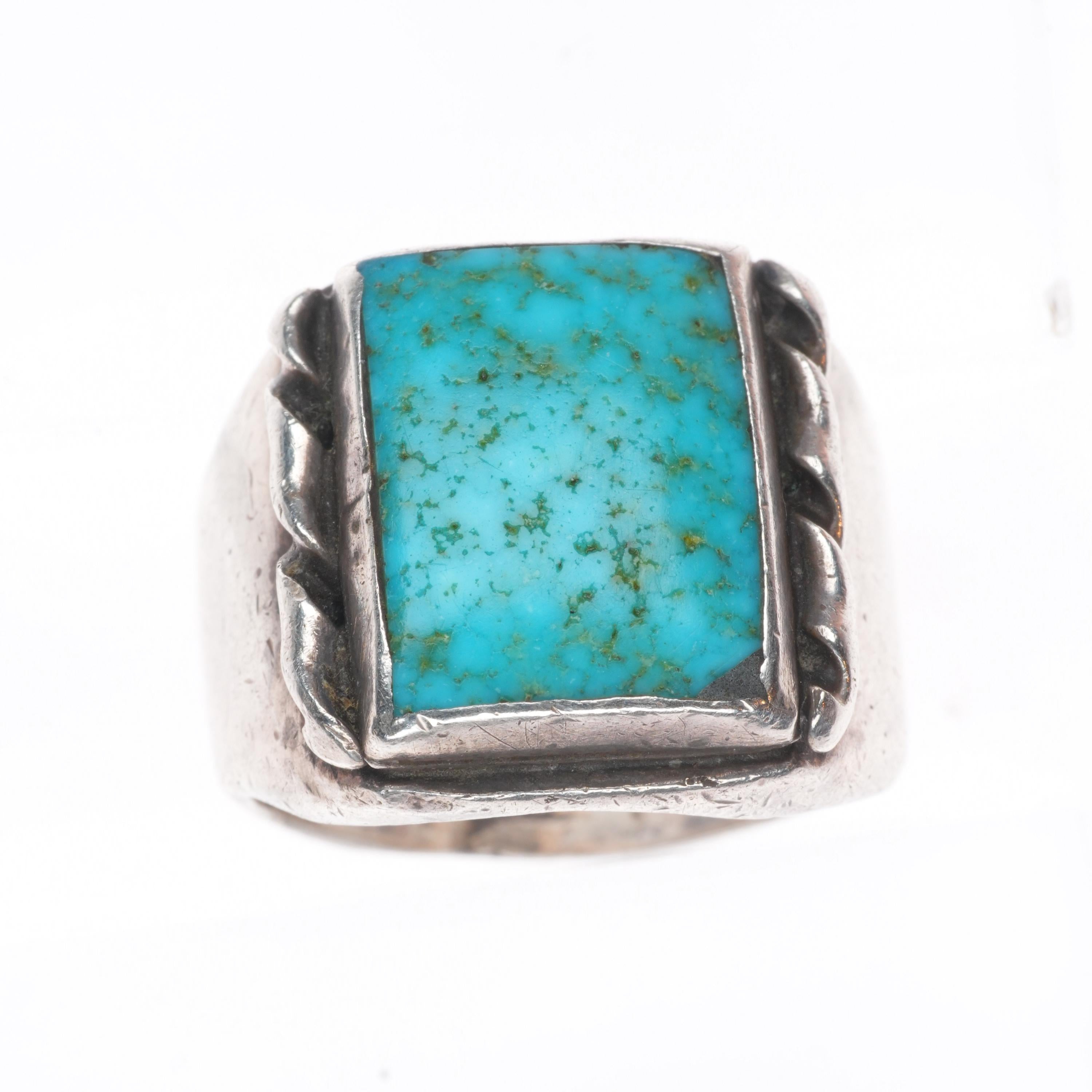 sz9 40‘s-50‘s Vintage Navajo sterling silver ring with nice square turquoise. Nice ring from the second quarter of the 20th century to mid 20th century.