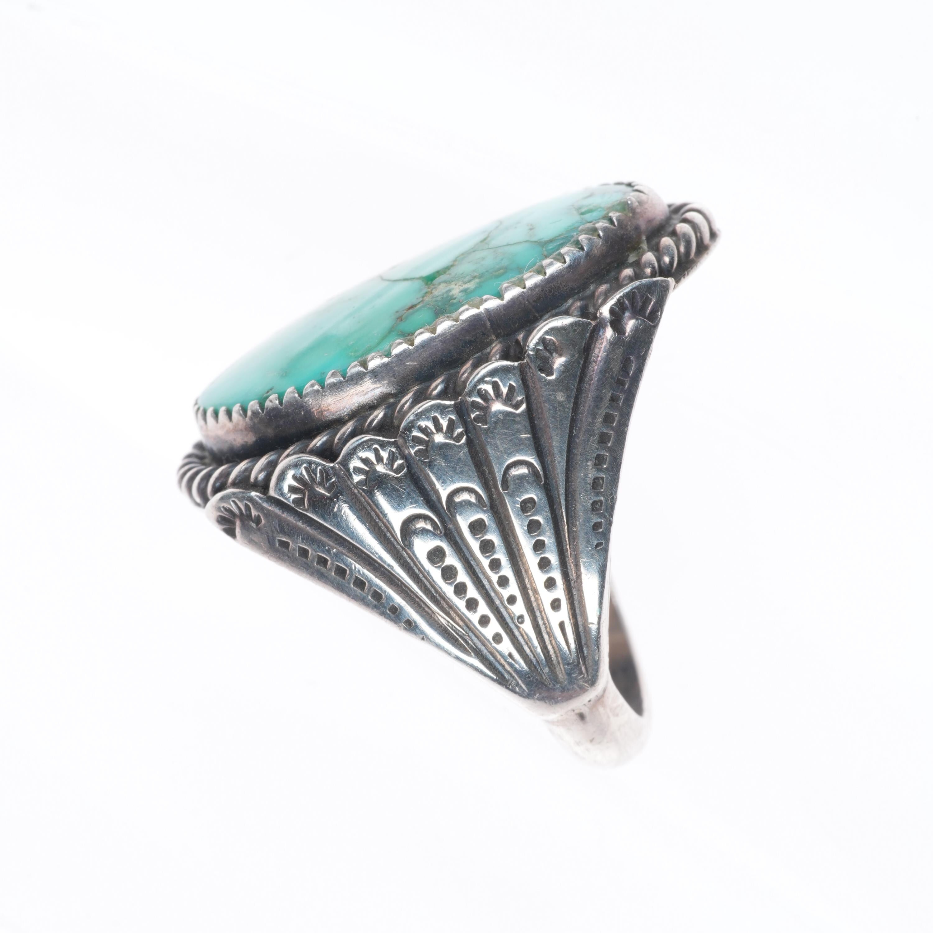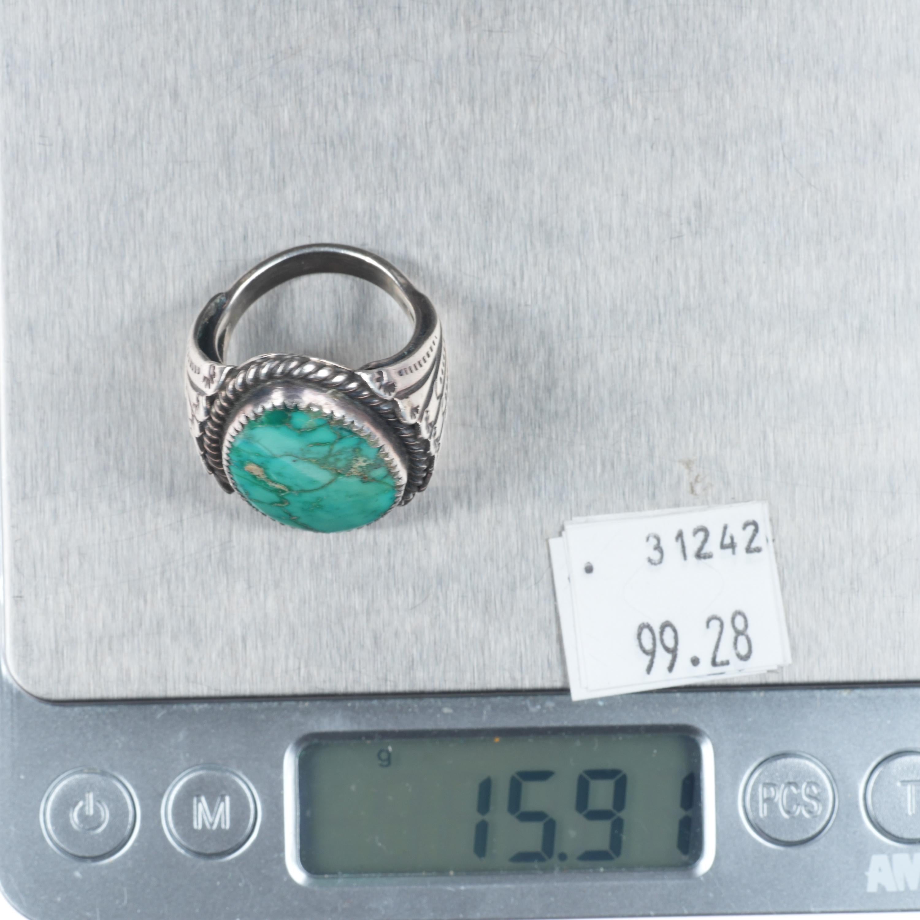 sz9.5 Vintage Native American LT Sterling men's ring with nice turquoise