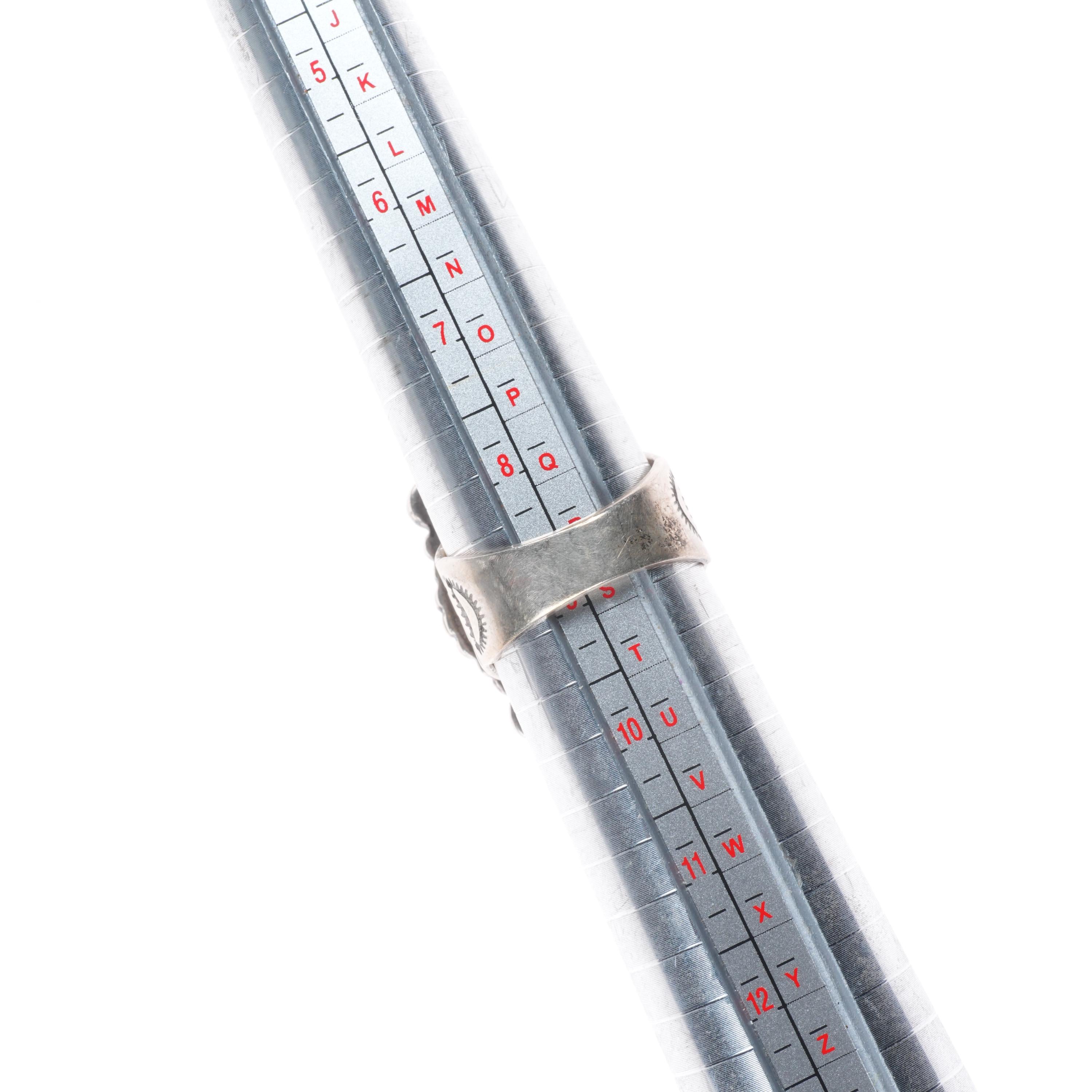 Benny Armijo (1937-2022). Benny was a renowned master Navajo silversmith who specialized in this complex inlay and "corn row" type cobblestone inlay using high quality stones. His jewelry was featured on the Oprah Winfrey show and was collected by many high-profile artists from James Taylor, Charlie Daniels, to Hank Williams Jr. His pieces can be seen on many album covers of top music groups and are highly collectable today. His incredible sense of humor was as well-known as his jewelry. He was simply the most generous man that one could ever imagine, always helping complete strangers he encountered along the way. He was active from the early 70‘s until the late 20th century.. His older mark from the 1970‘s looks like a tadpole and has been misattributed to "Edward Zuni", but I‘m 100% sure this is Benny Armijo‘s work and hallmark, it‘s been confirmed by his living relatives. Benny was born in Santa Fe, New Mexico Benito M Armijo Jr The older stamp he first used was to represent the letter C and letter M which stood for Chief Marcos. Many years later maybe around 1989 he stamped his jewelry with Benny Armijo. He lived in California for many years and returned to New Mexico and passed away January 2022. He was known for his stone inlay on what he called a Hopi wedding band in which all the stones were inlaid inside the ring or bracelet. Giving the thought that the beauty between the couple is in the eye of the beholder and the couple would choose the different color of stones and their meanings to be inlaid on their wedding bands.
