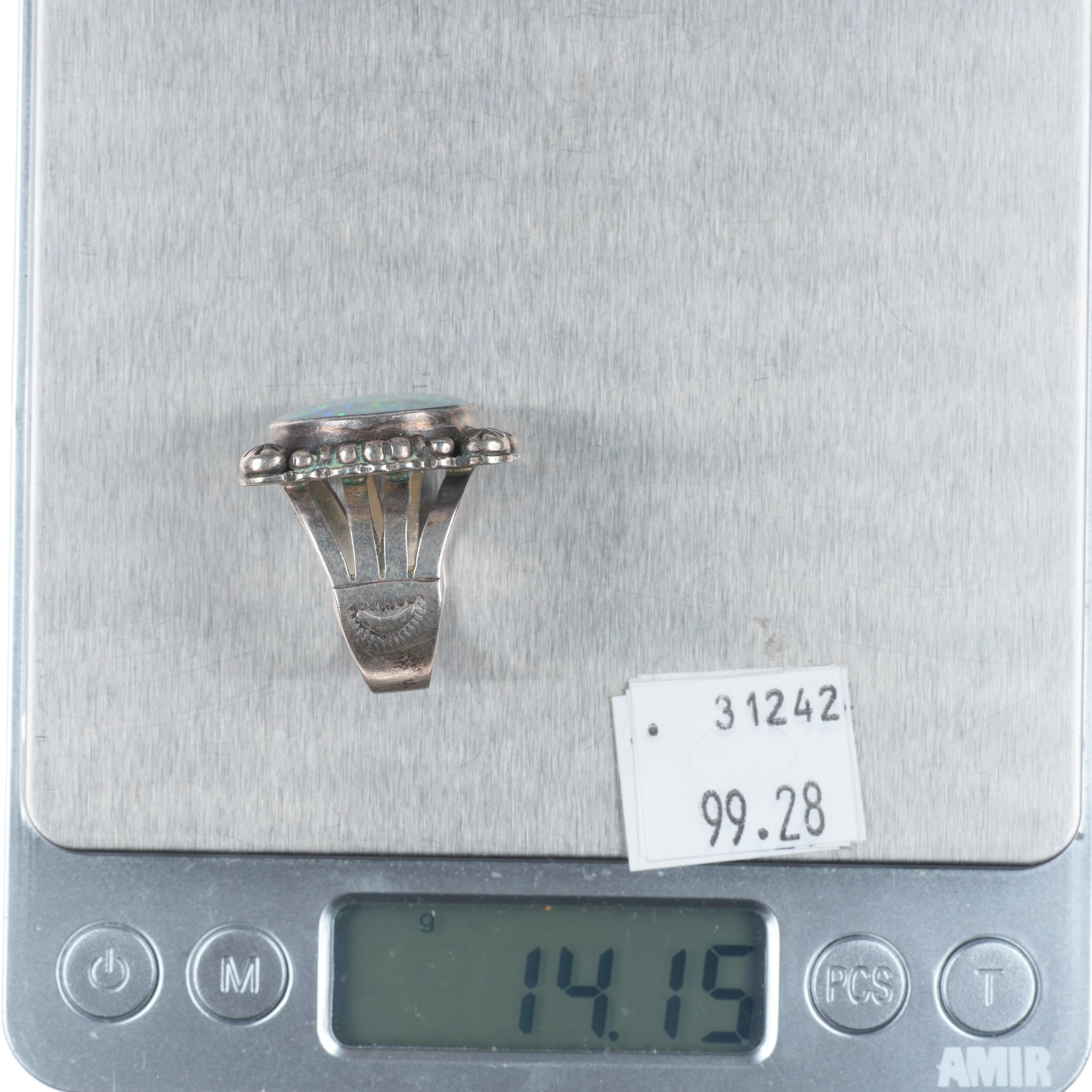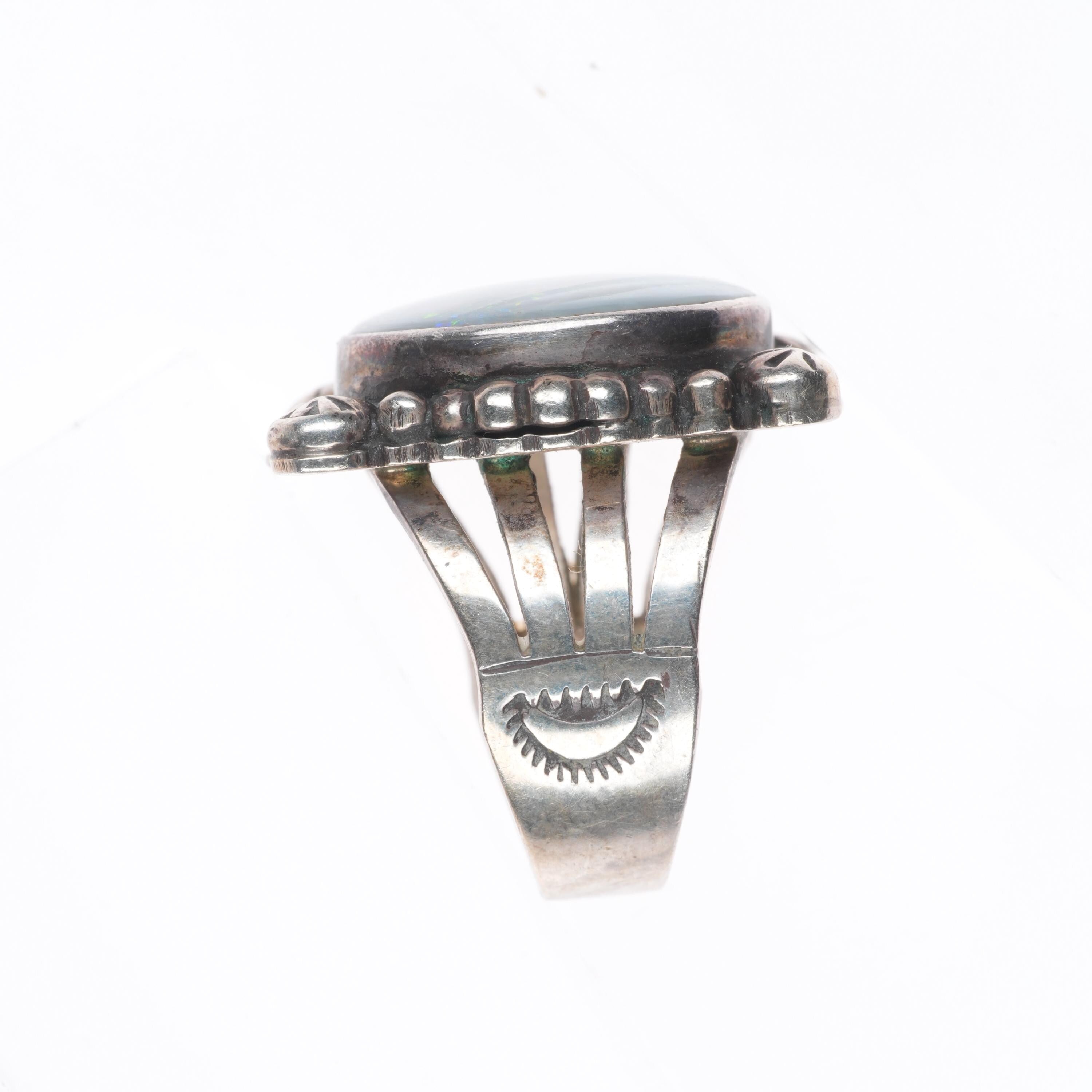sz9 Benny Armijo (1937-2022) Navajo Opal ring in sterling silver. Tested and guaranteed solid sterling silver. Nice ring from the last quarter of the 20th century. Some expected wear, weight and measurements in pictures. I believe this to be a natural Opal as Benny was very well respected and made this later in his career. He always used really high grade materials even earlier in his career.