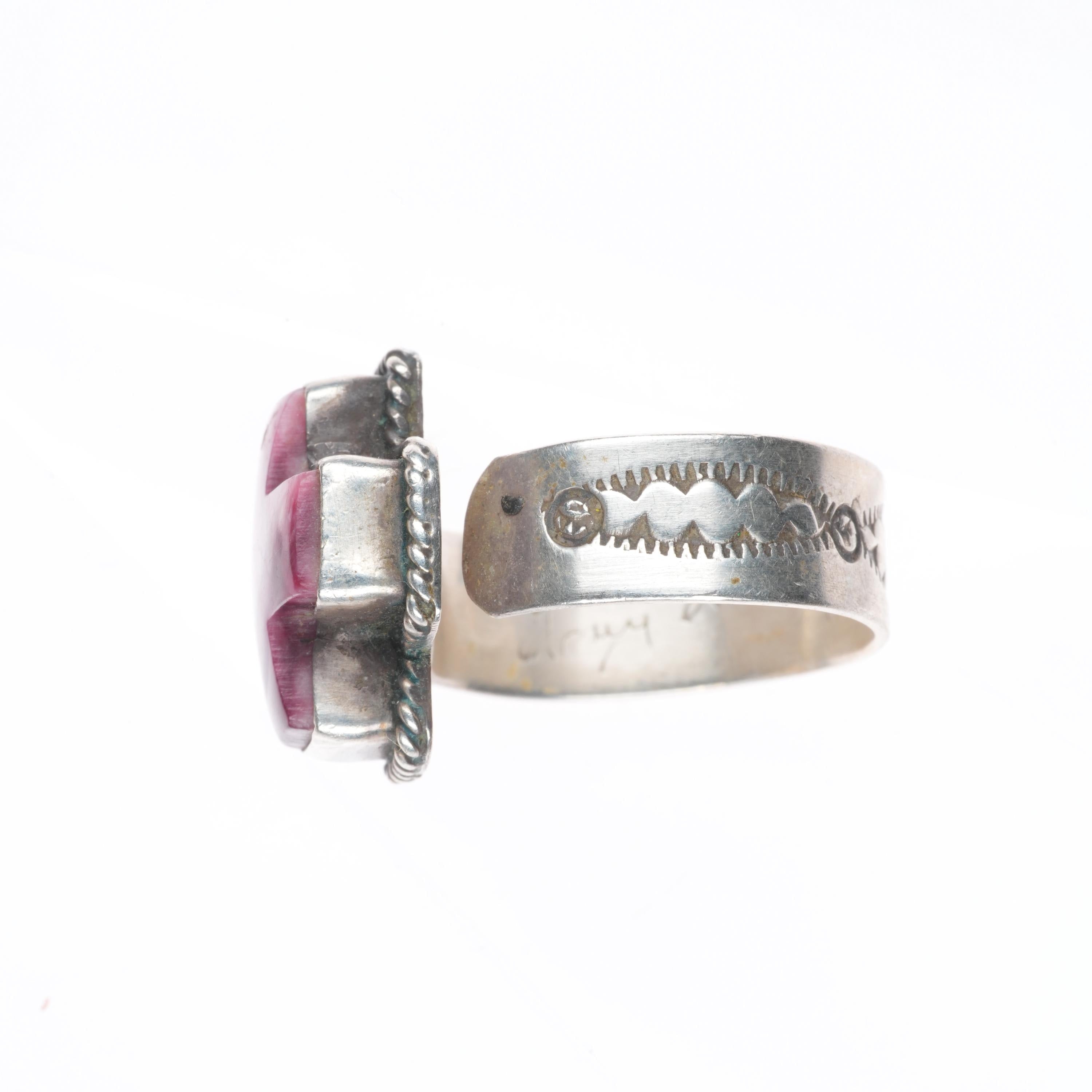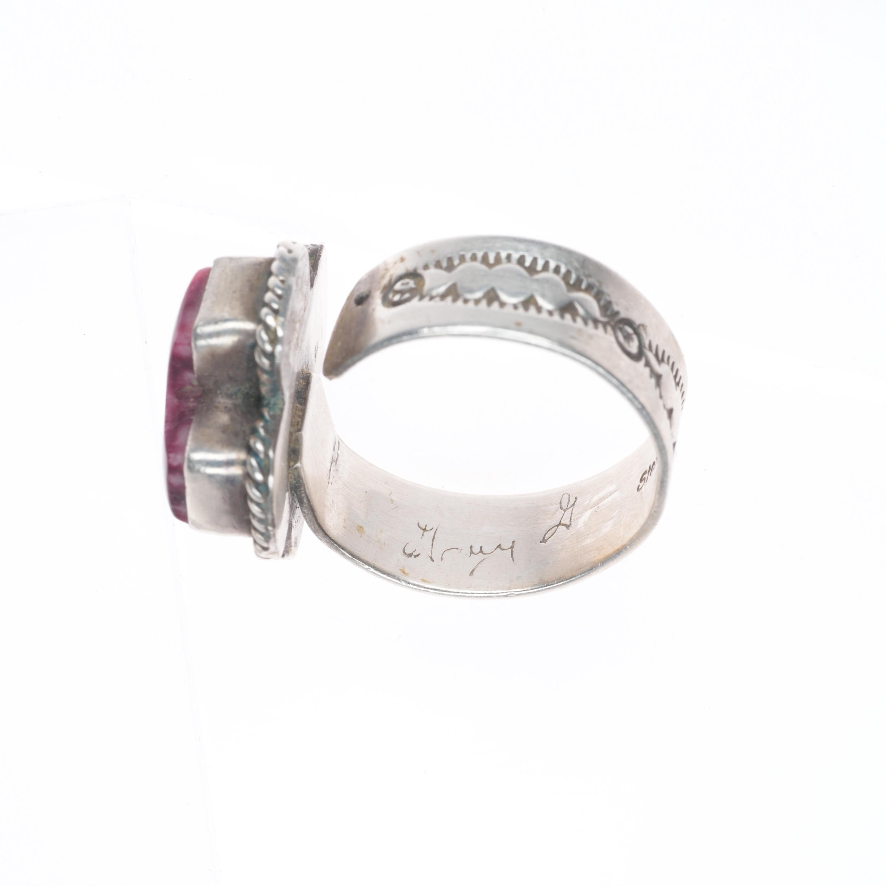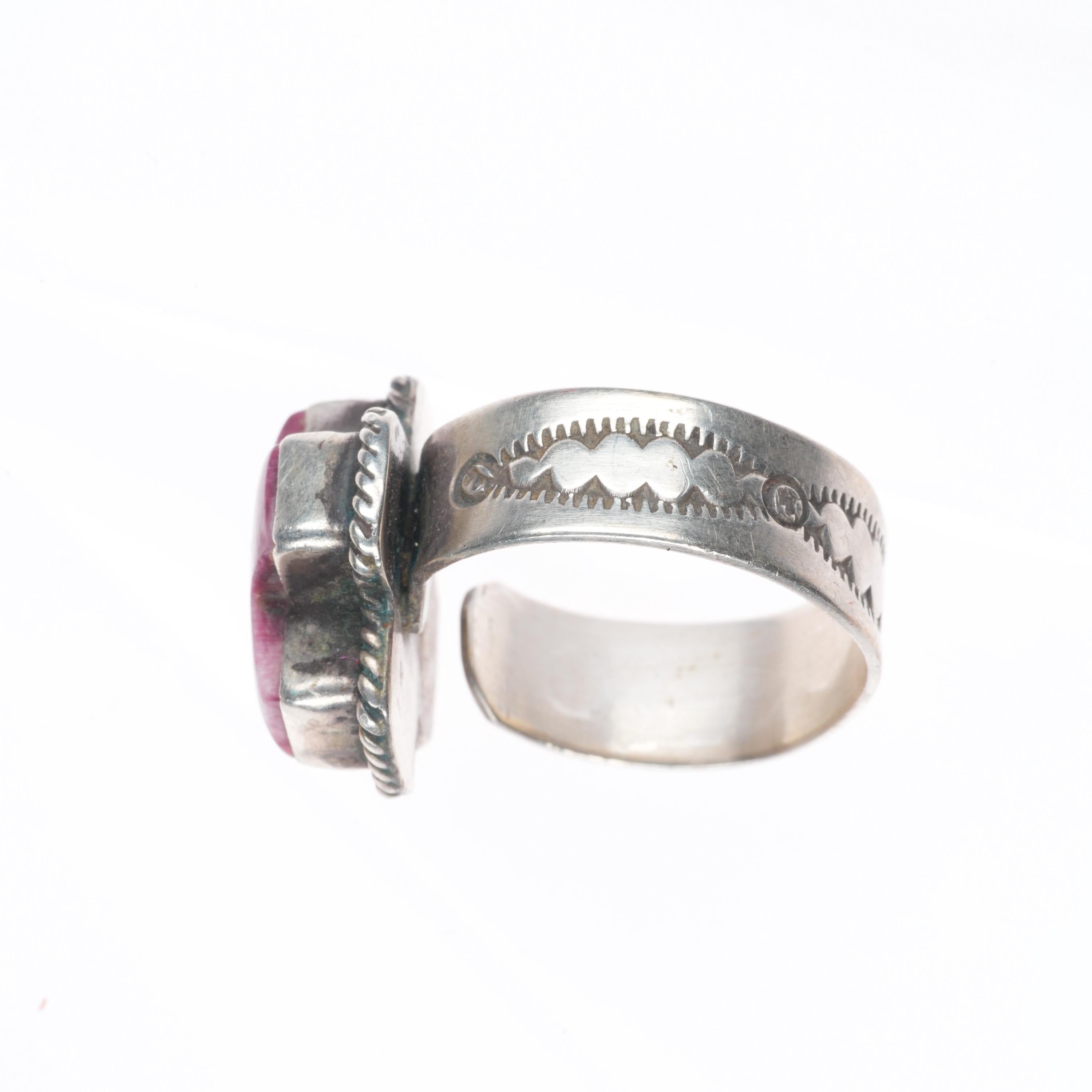 sz9 Gary G Navajo adjustable sterling silver spiny oyster cross ring