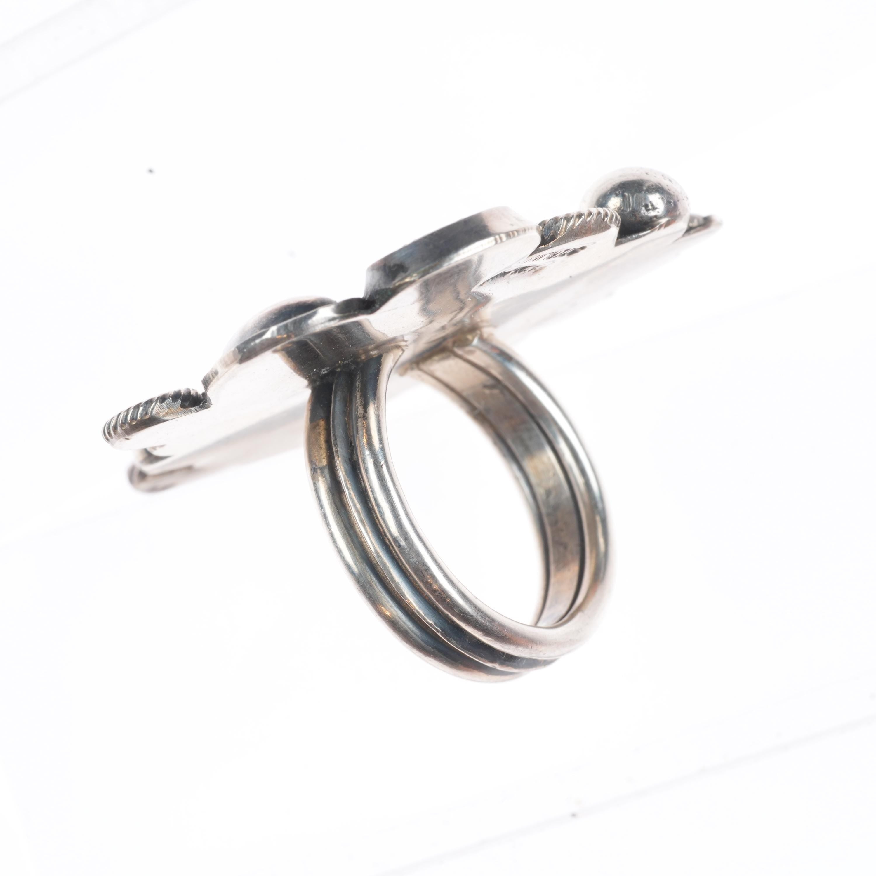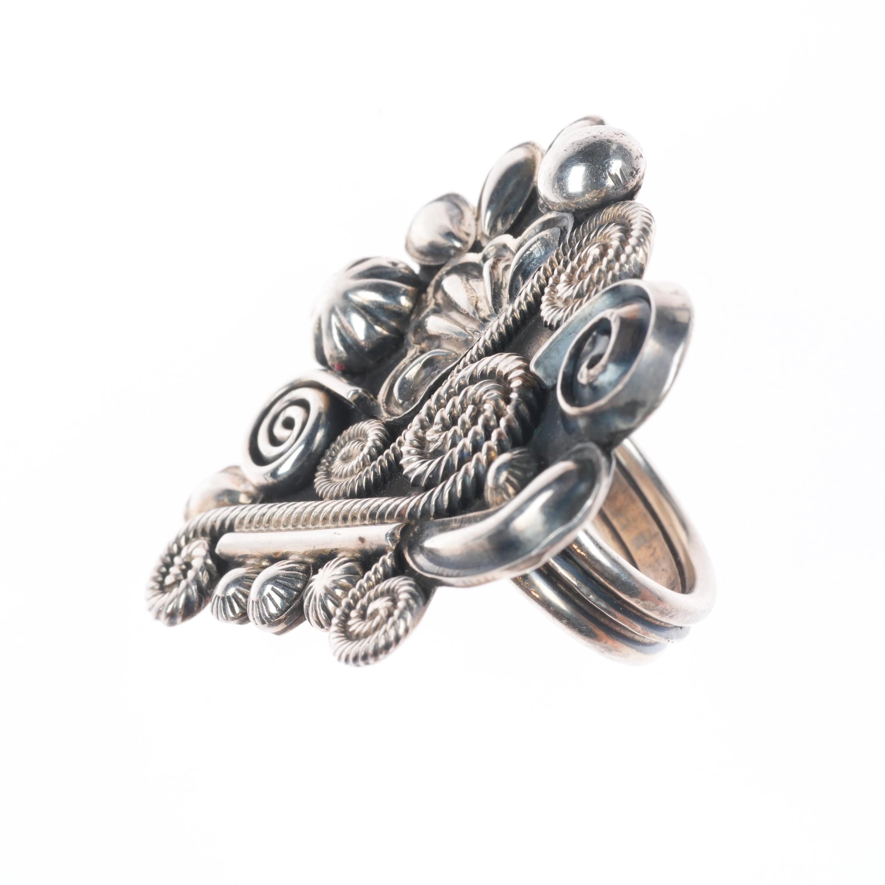 sz9 Leon Martinez Navajo sterling silver ornate twisted wire/deep stamped ring. Nice ring from the early 21st century.