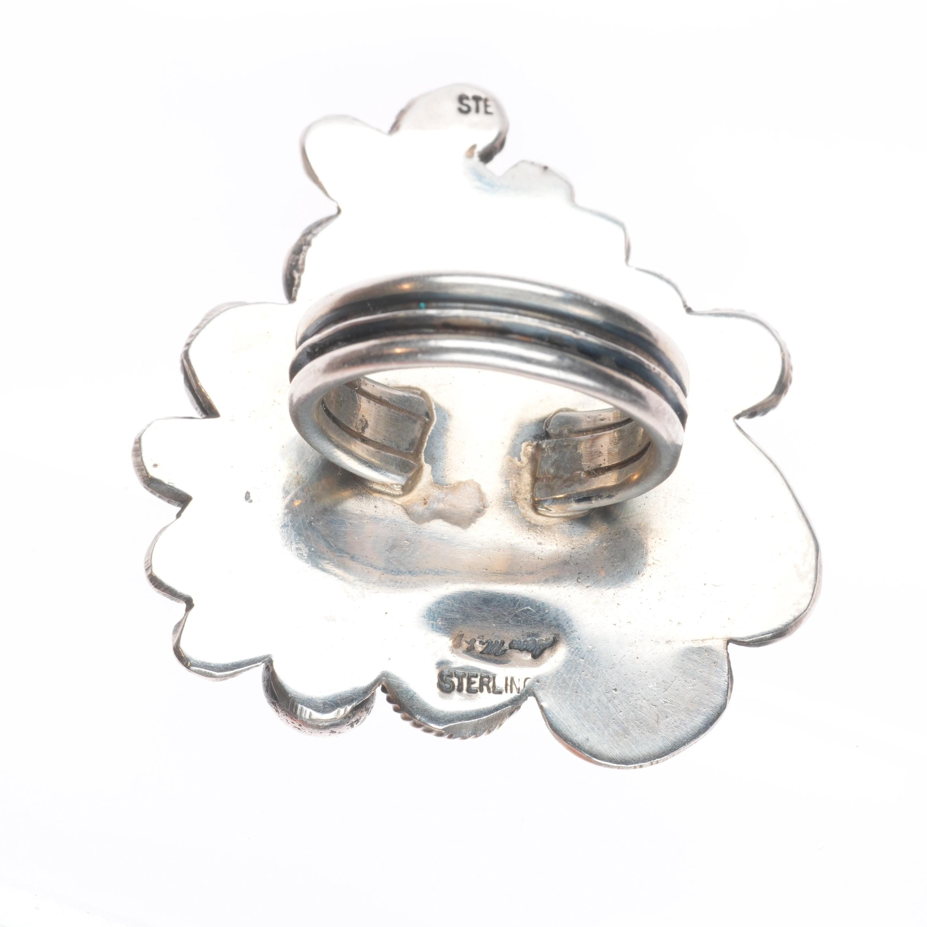Navajo artist Leon Martinez began his jewelry career in the early 1970’s and is considered one of the most celebrated Native American jewelry artists, winning first place awards several times at the Navajo Nation Fair and Gallup Intertribal Ceremonial. Influenced by his jewelry-making parents, Leo and Edith Martinez, Leon began at the young age of nine assisting with buffering, soldering and setting stones. He also helped his parents make squash blossom necklaces, rings, and bracelets during the high demand for Indian Jewelry in the 1970s. Soon, making jewelry became a passion for Leon and his talent grew enormously. A hard-working self-starter, Leon uses nature as inspiration. From plants, to flowers, to rocks, to landscapes, he looks at everything in his environment for his design ideas.