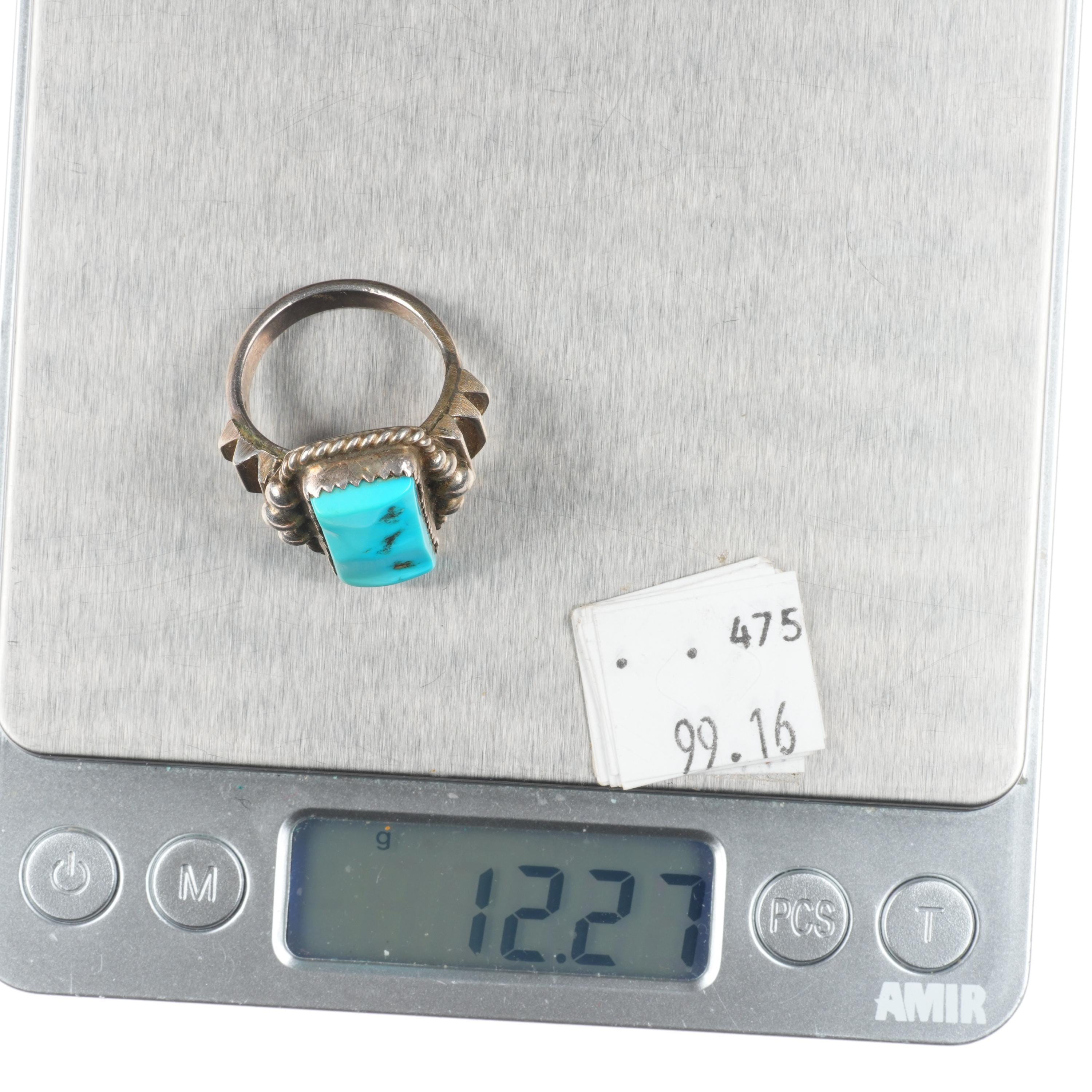 sz9 vintage Justin Morrin Navajo sterling silver Kingman turquoise ring