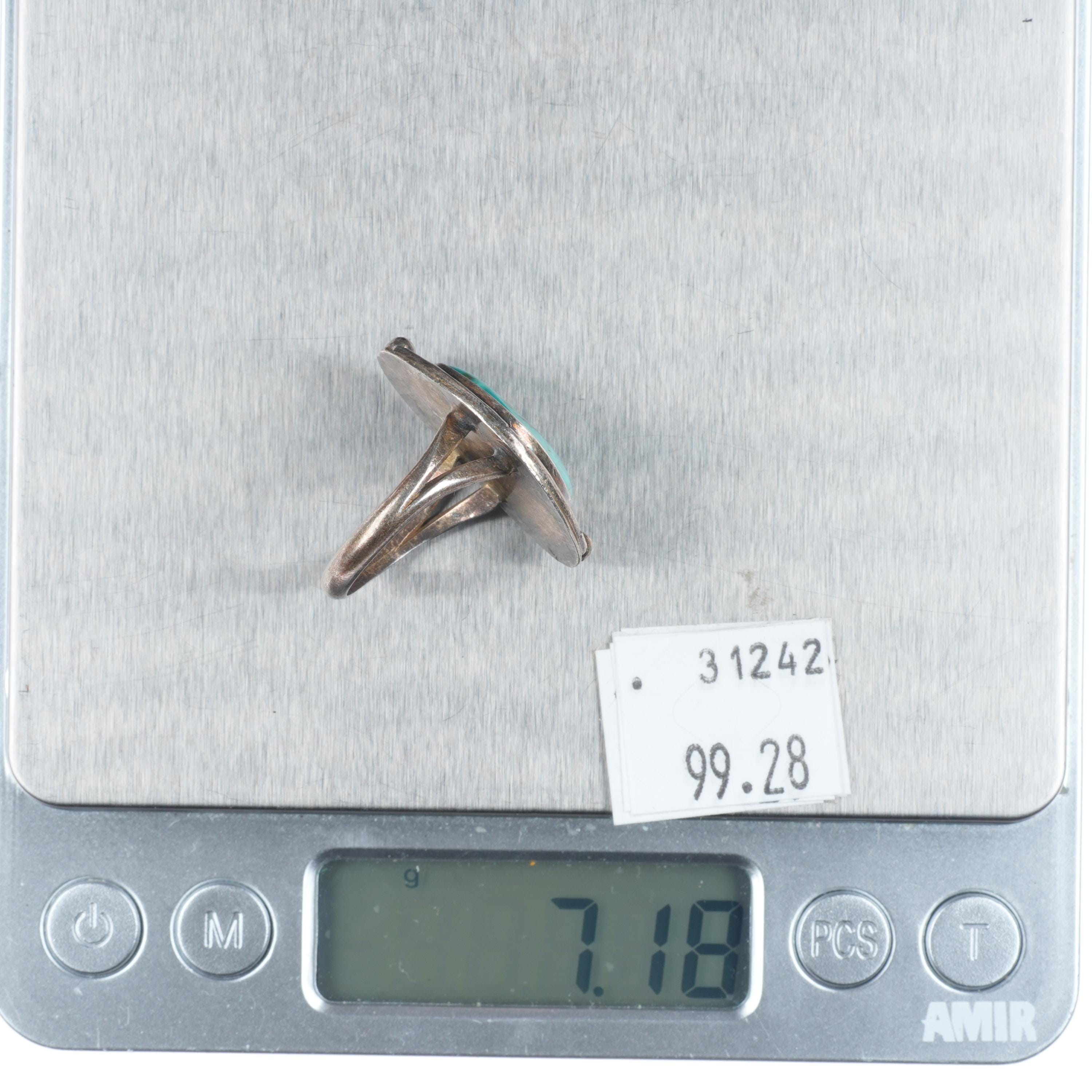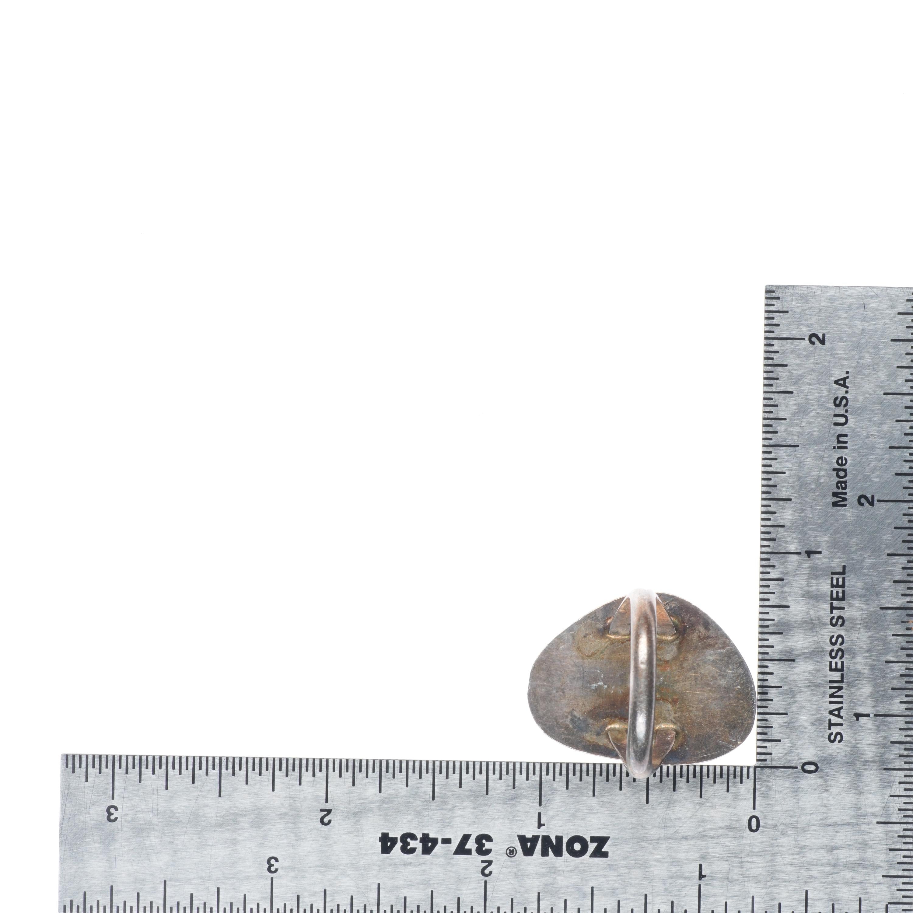 sz9 Vintage Navajo sterling silver ring with gorgeous large turquoise. Tested and guaranteed solid sterling silver. Nice ring from the third quarter of the 20th century. Some expected wear, weight and measurements in pictures. Great looking mixed color stone.
