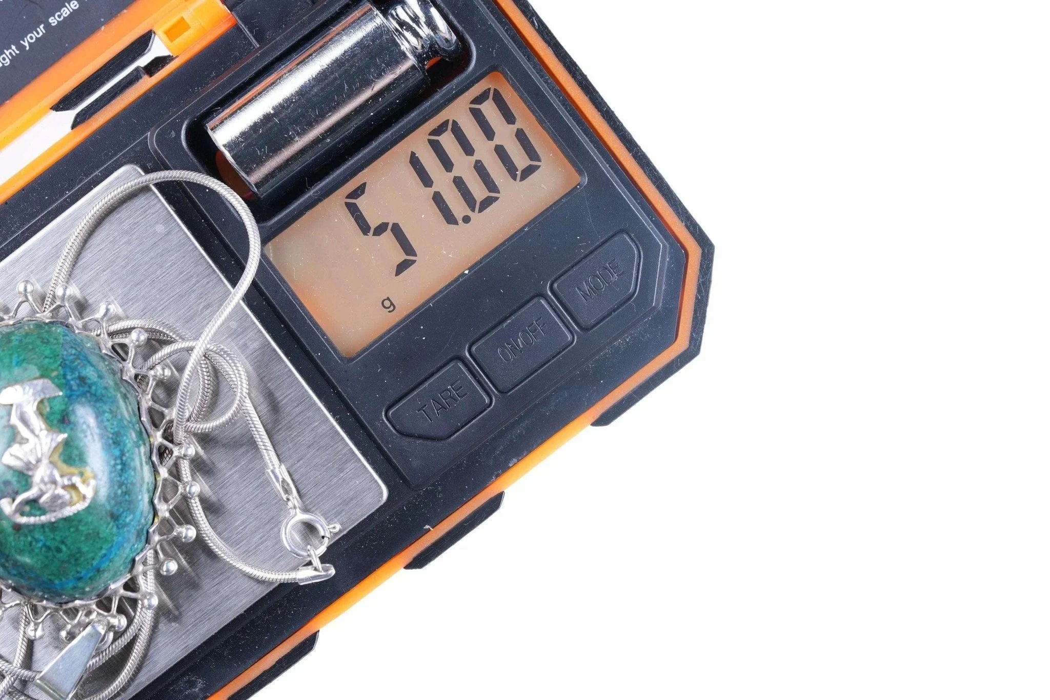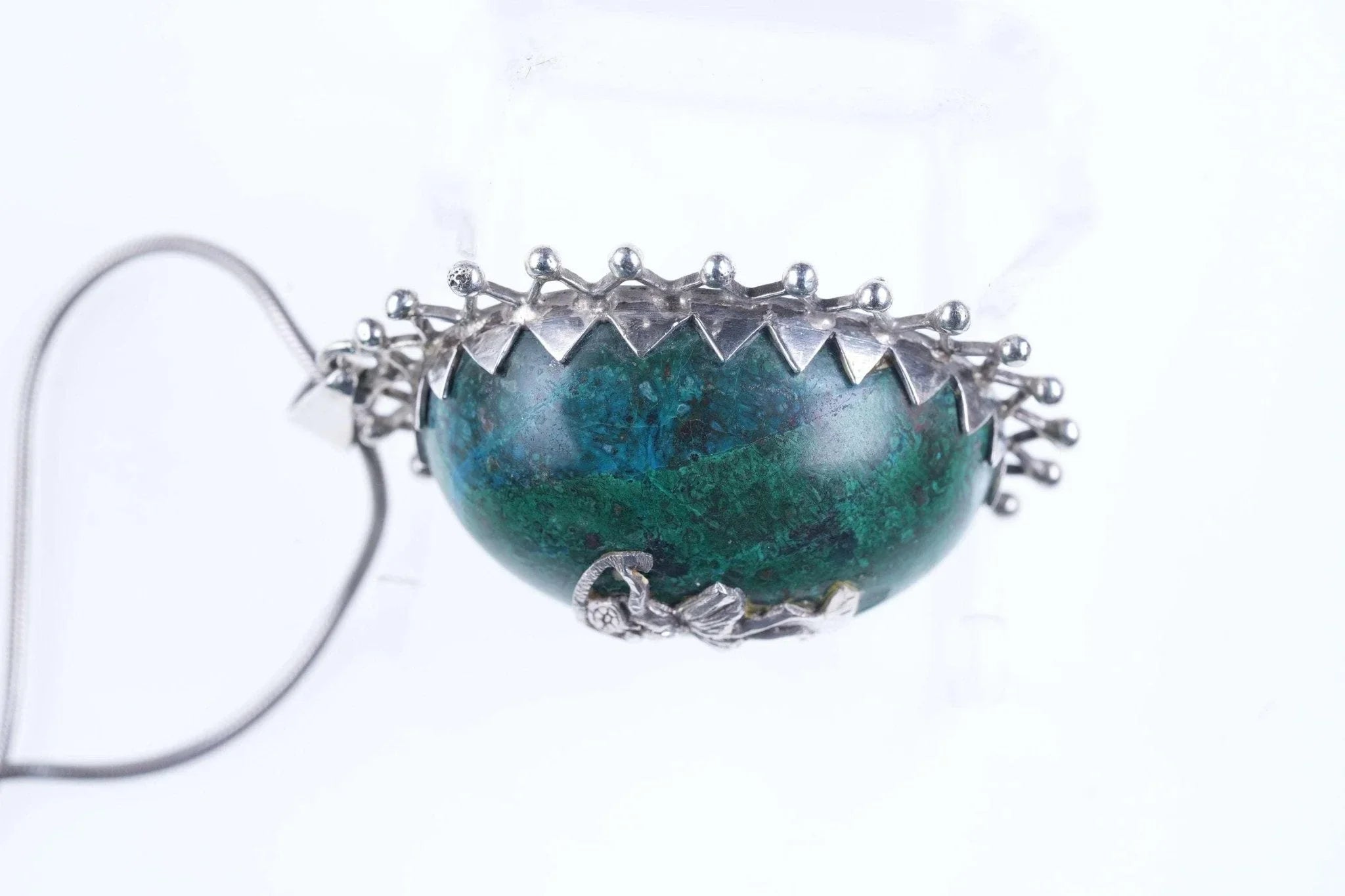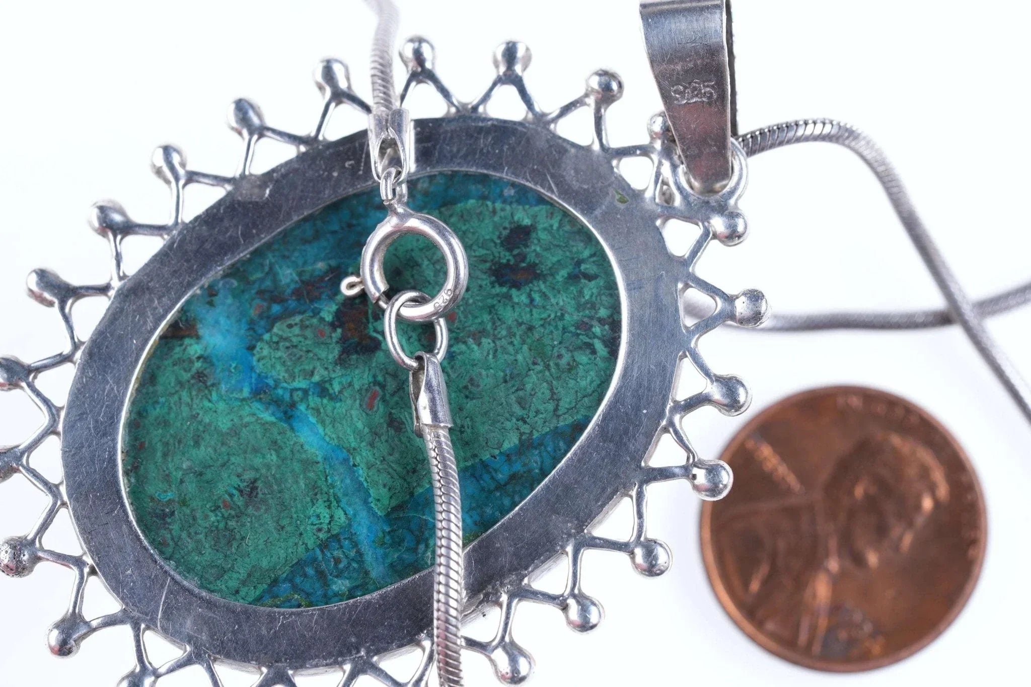 Vintage 26" sterling Chrysocolla necklace/pendant