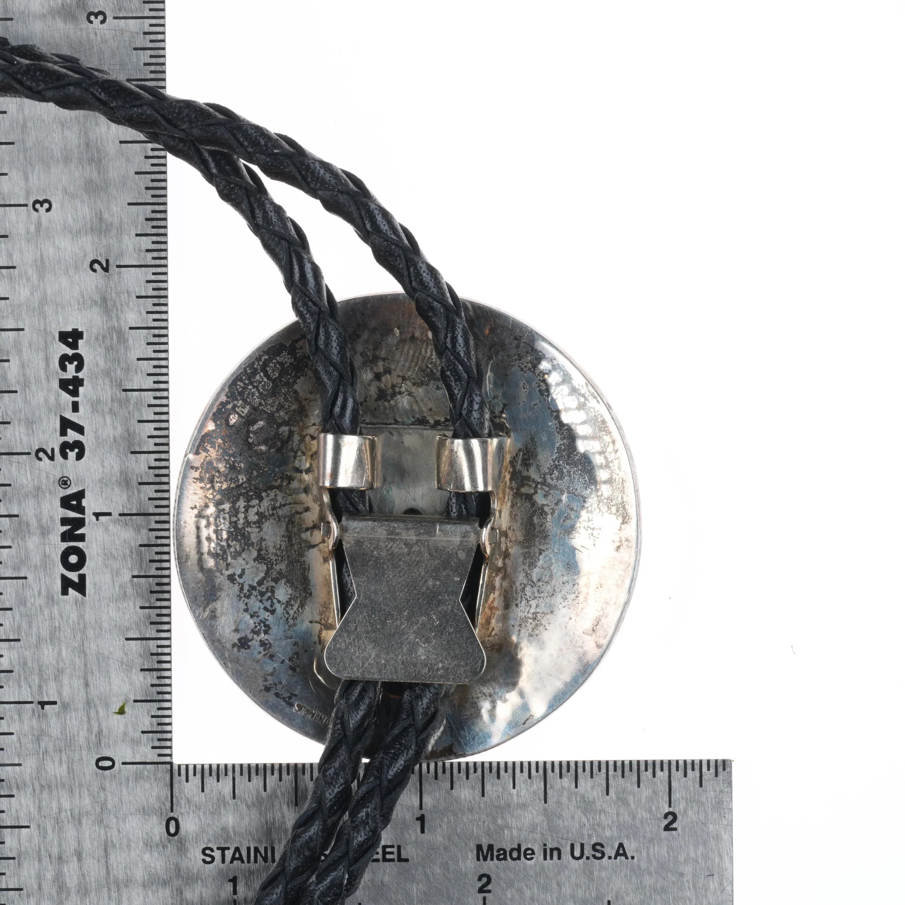 Vintage Clement Honie Hopi Overlay turquoise Kokopelli bolo tie sterling silver