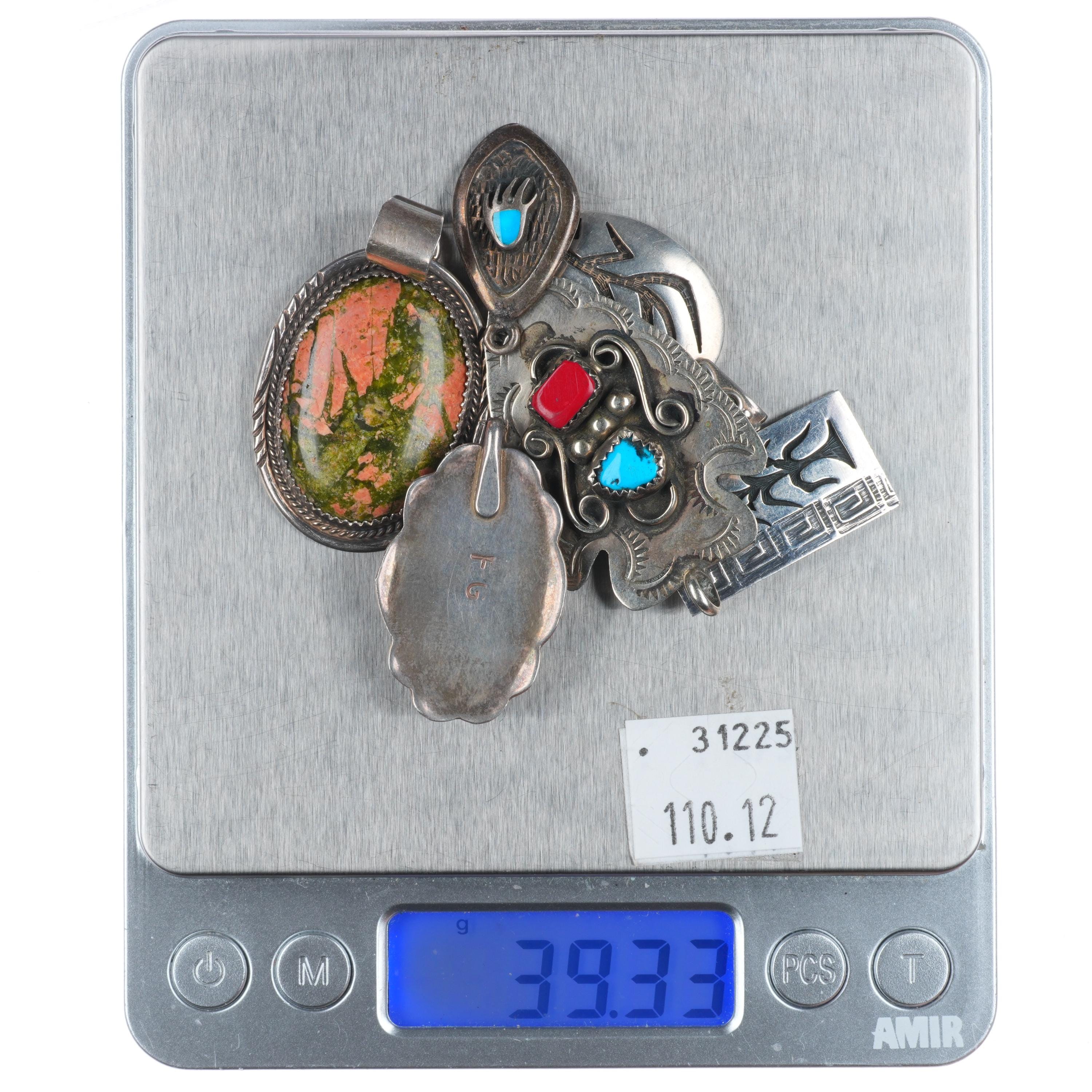 Vintage Navajo/Hopi sterling silver turquoise/jasper pendant lot/collection. Solid sterling silver tested and guaranteed with weight and measurements in the pictures. Circa last quarter of the 20th century. . No significant issues Selling the lot shown in the pics.